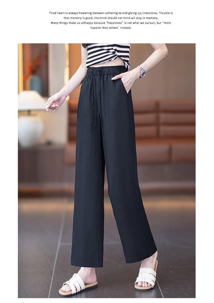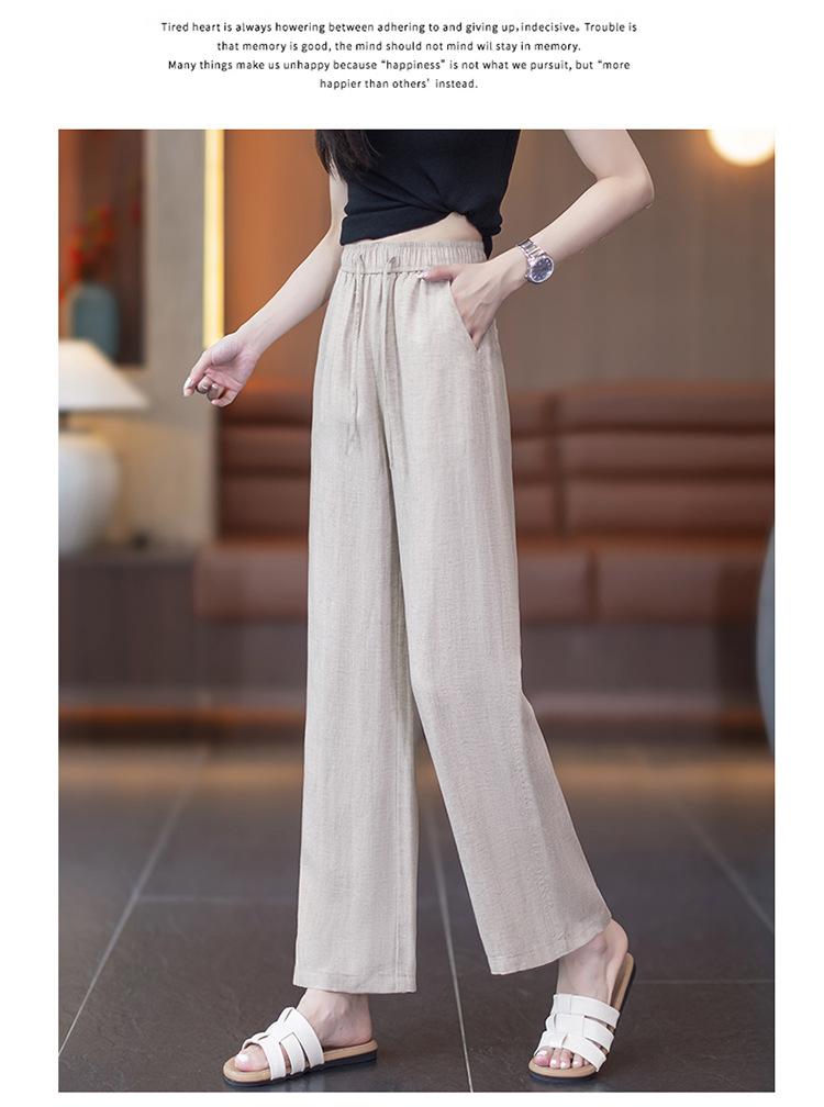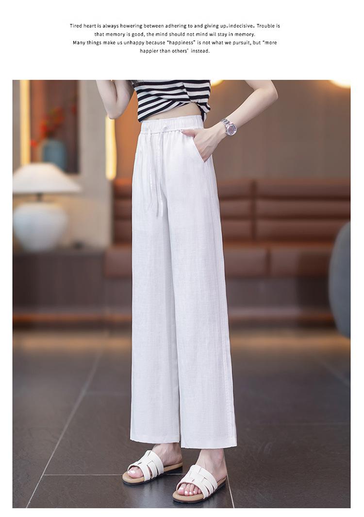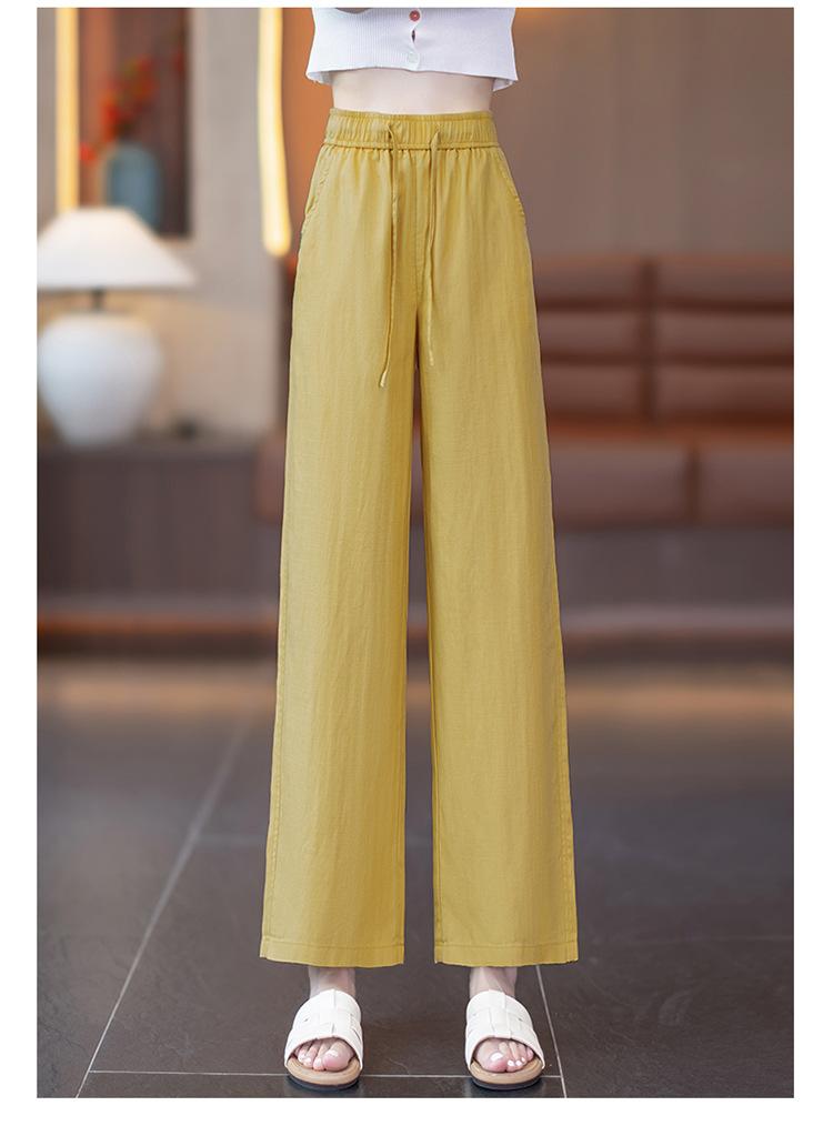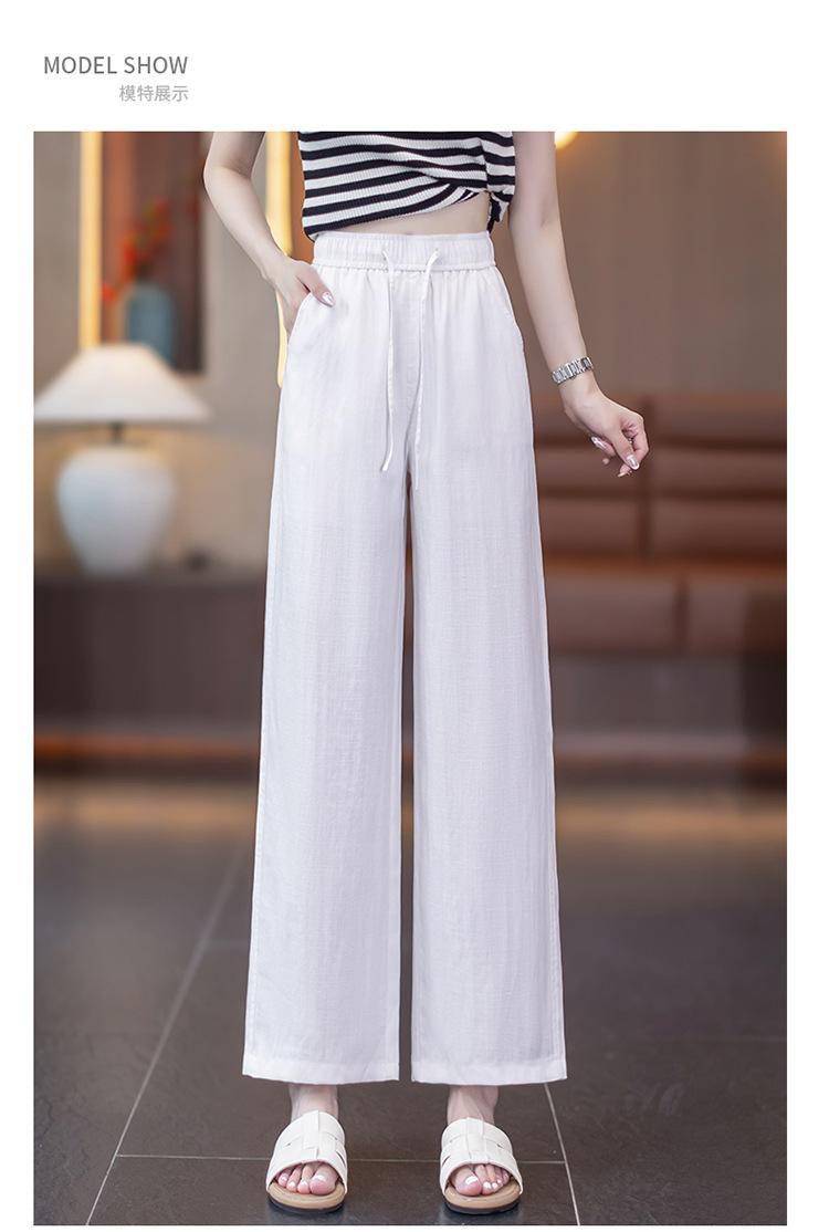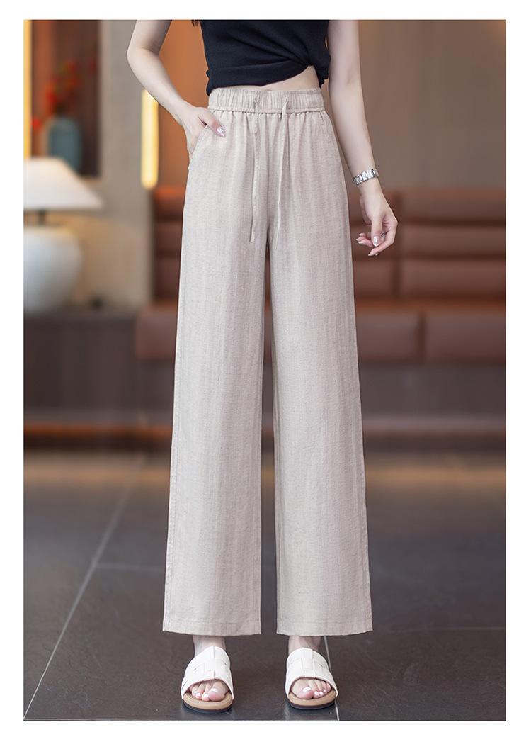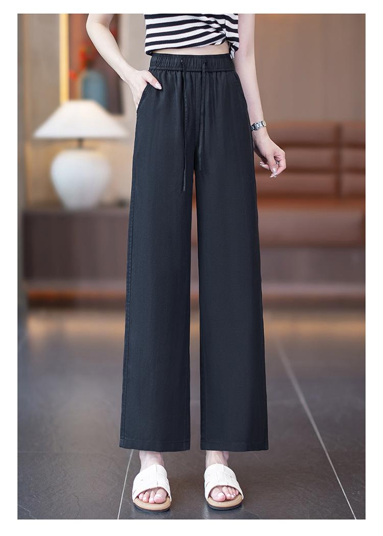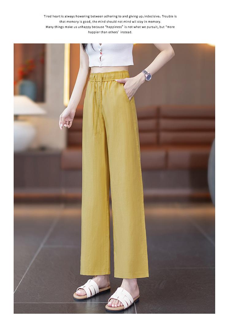 Compra Pantalones de Pierna Ancha de Lino Tencel para Mujer 2025 Verano Delgados Cintura Elástica Estilo Cordón Sueltos Casuales Rectos al por mayor en Joom.pro