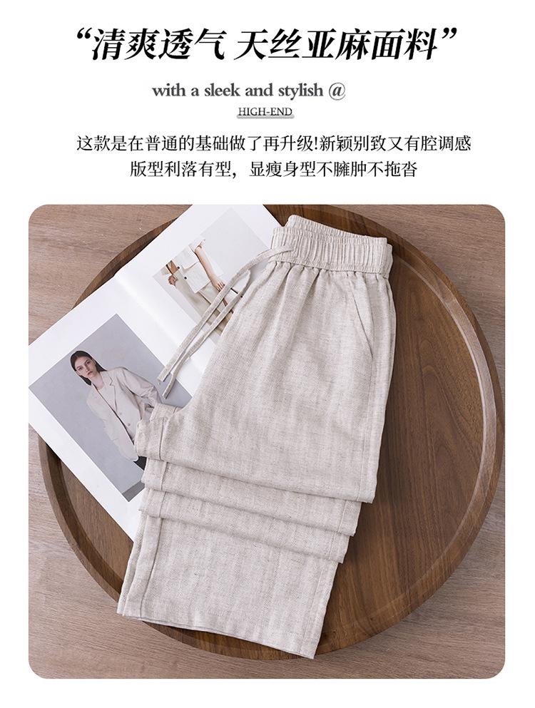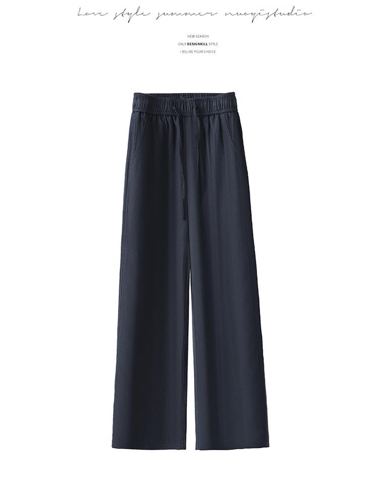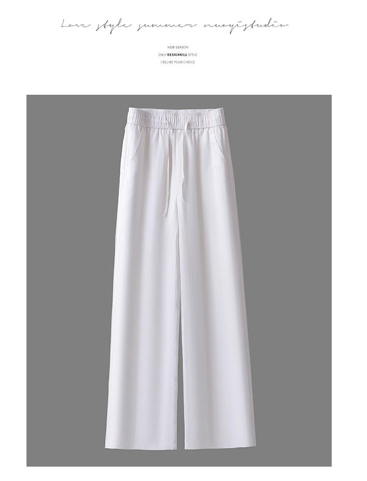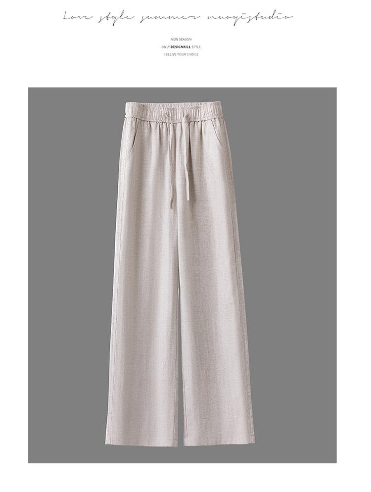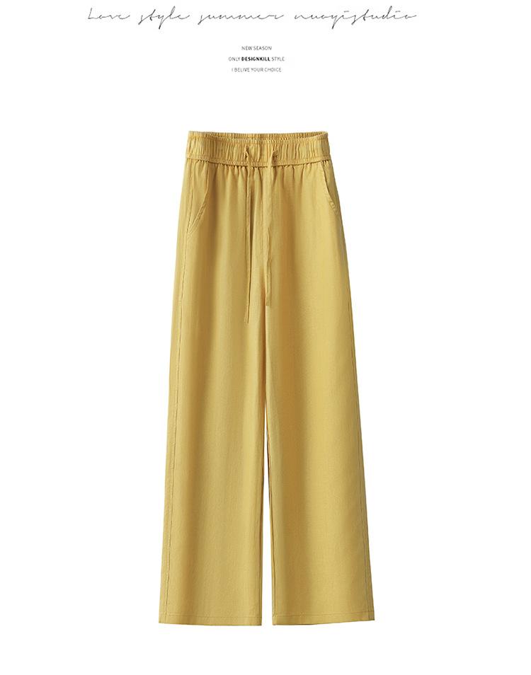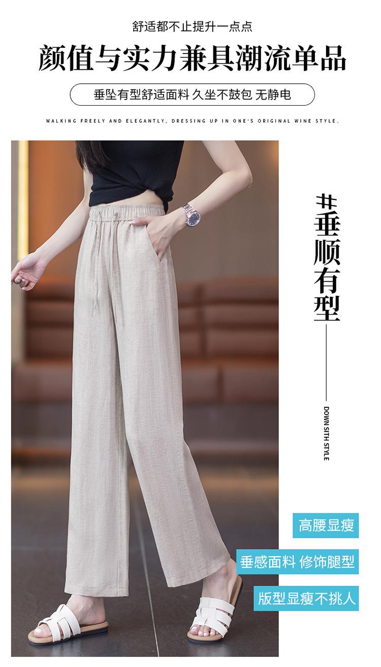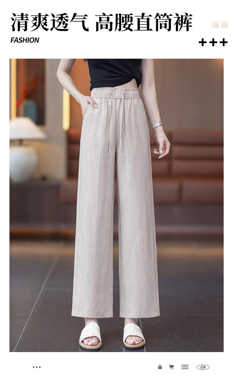 Compra Pantalones de Pierna Ancha de Lino Tencel para Mujer 2025 Verano Delgados Cintura Elástica Estilo Cordón Sueltos Casuales Rectos al por mayor en Joom.pro
