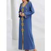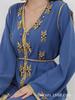 Vestido con cinturón y bajo con abertura con pedrería delantera