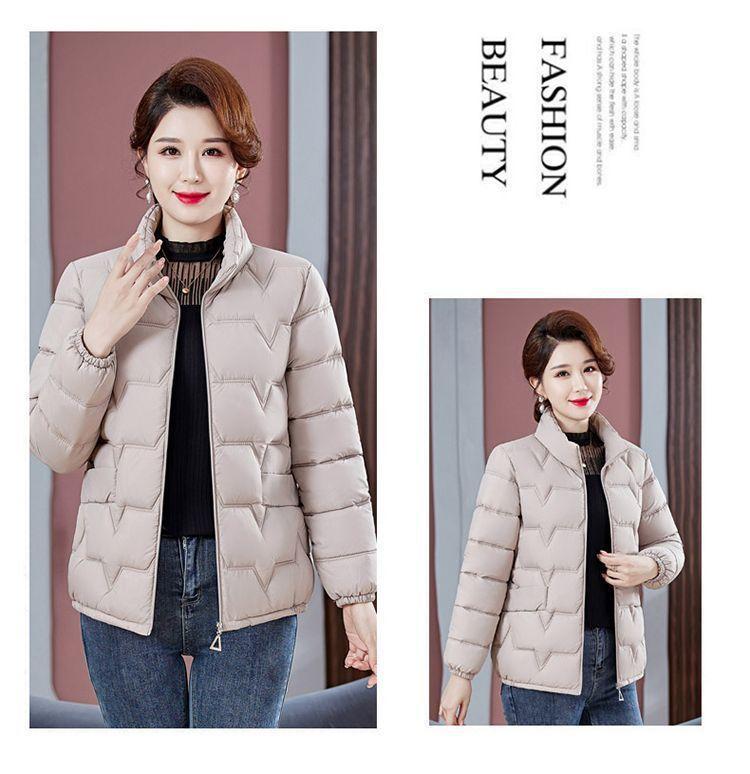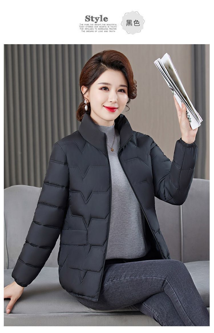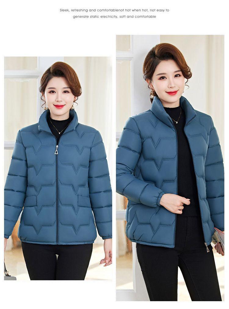 Abrigo de Algodón Grueso de Invierno para Mujer de Mediana Edad con Cuello Mao Corto, Chaqueta de Invierno para Mujer Moderna y Elegante que Reduce la Edad