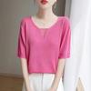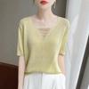 Verano Nuevo Manga Corta Estilo Coreano Tejido Temperamento Color Sólido Cuello en V Diseño de Borlas Sentido de la Moda Versátil Influencer Top Tejido