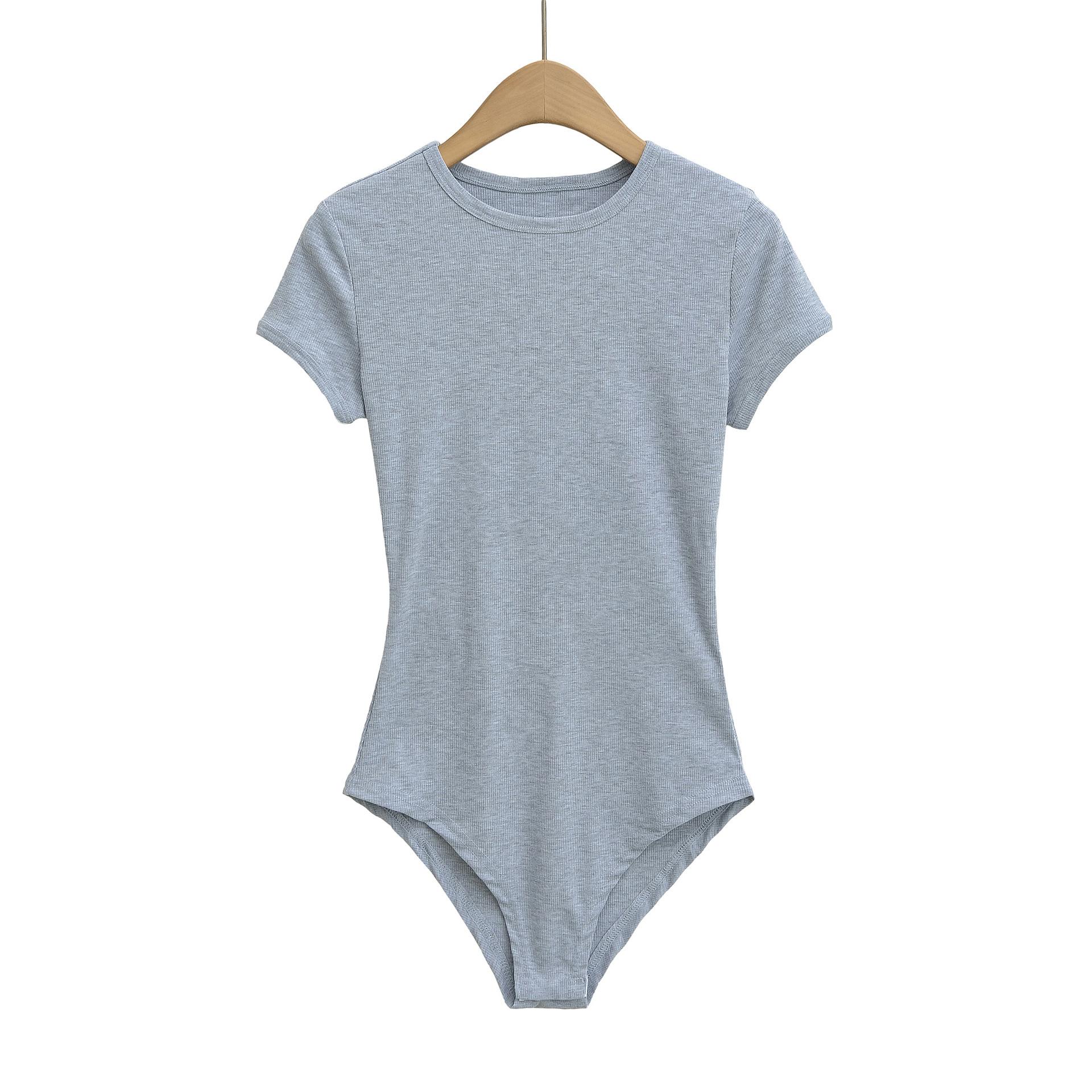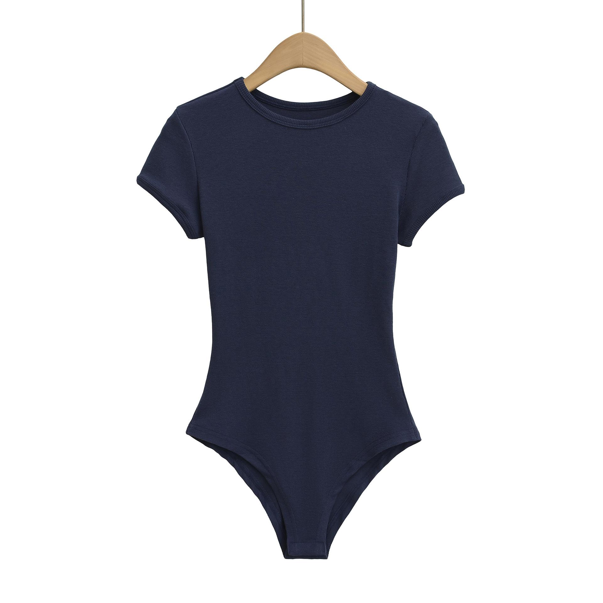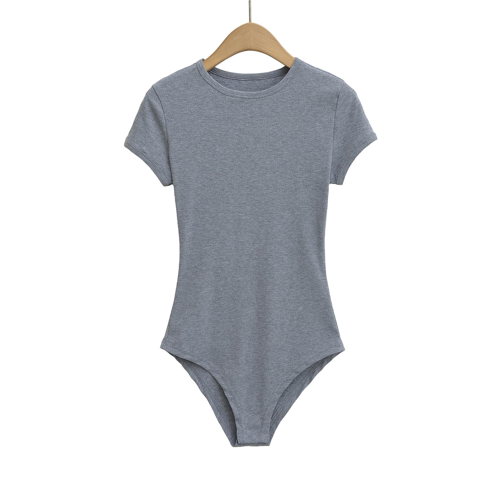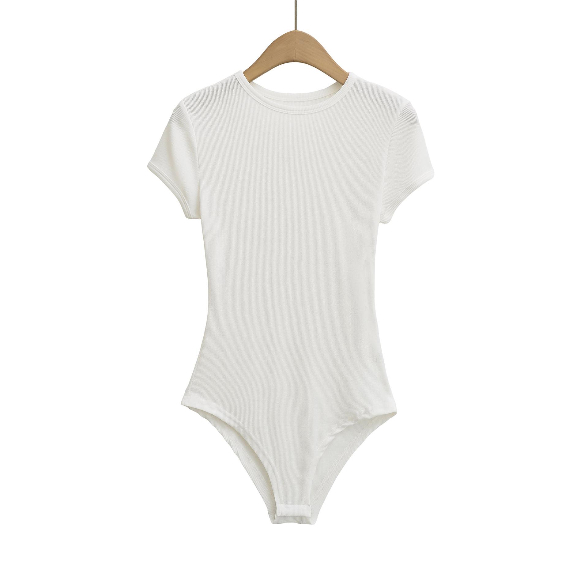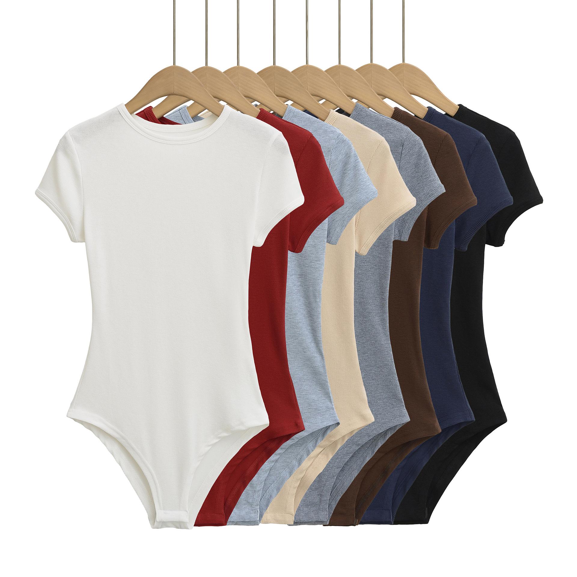 4258-Mono ajustado de estilo europeo y americano para mujer 2025 Nuevo Sexy Sexy Camiseta básica de manga corta y cuello redondo