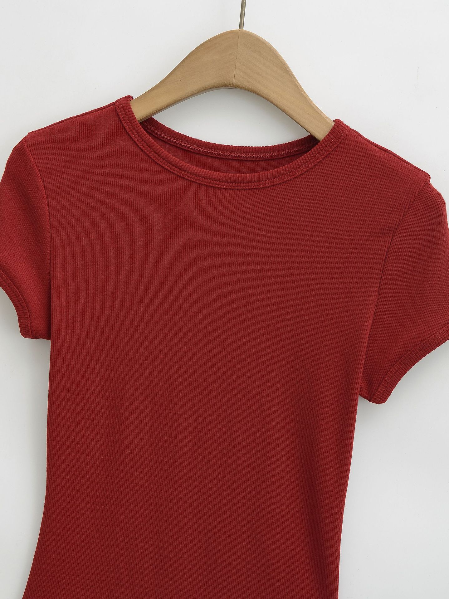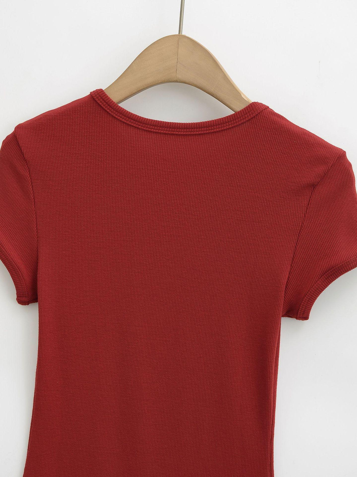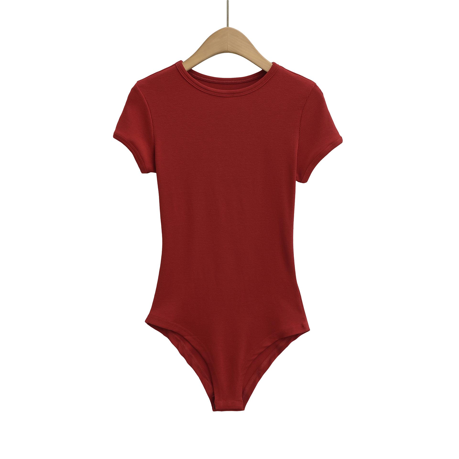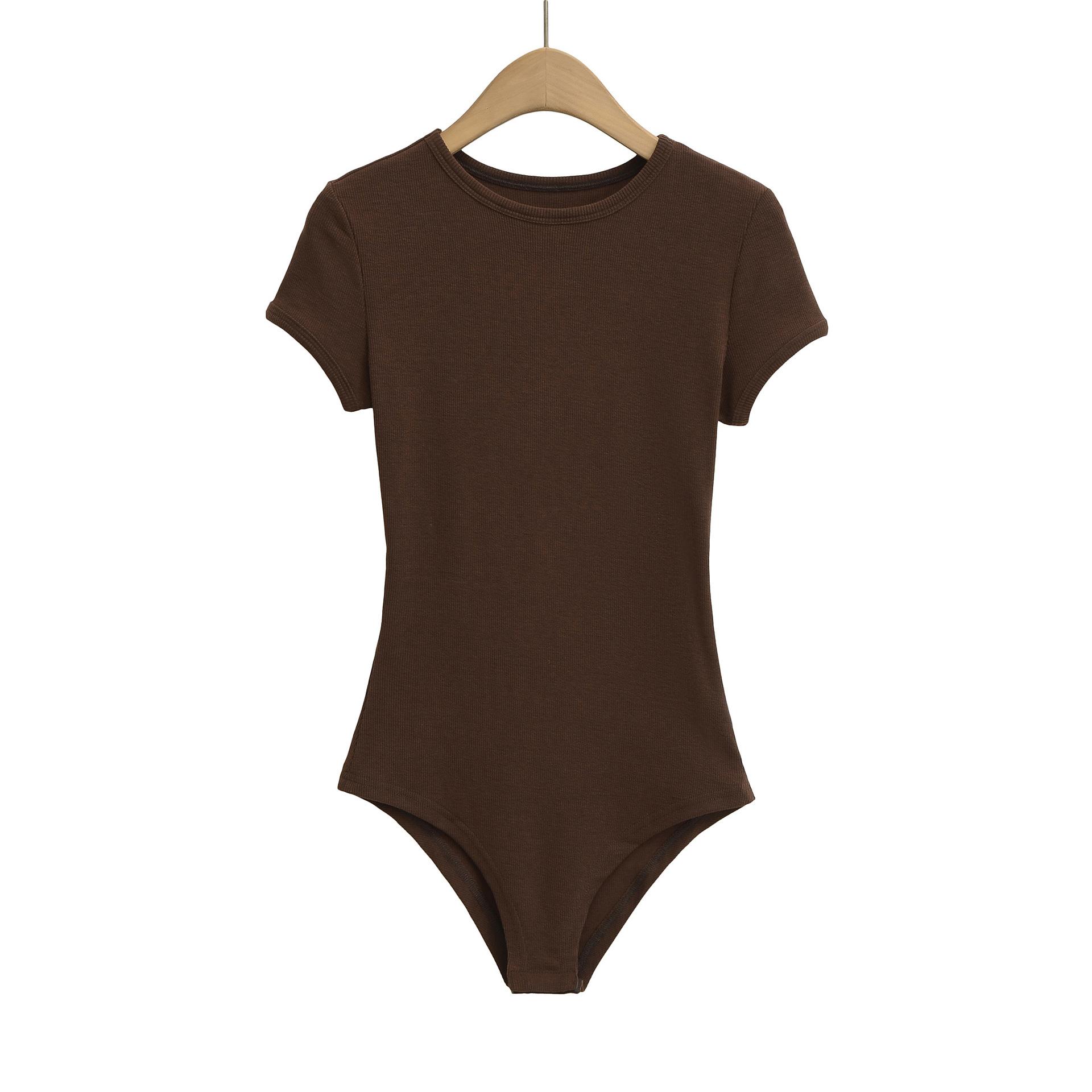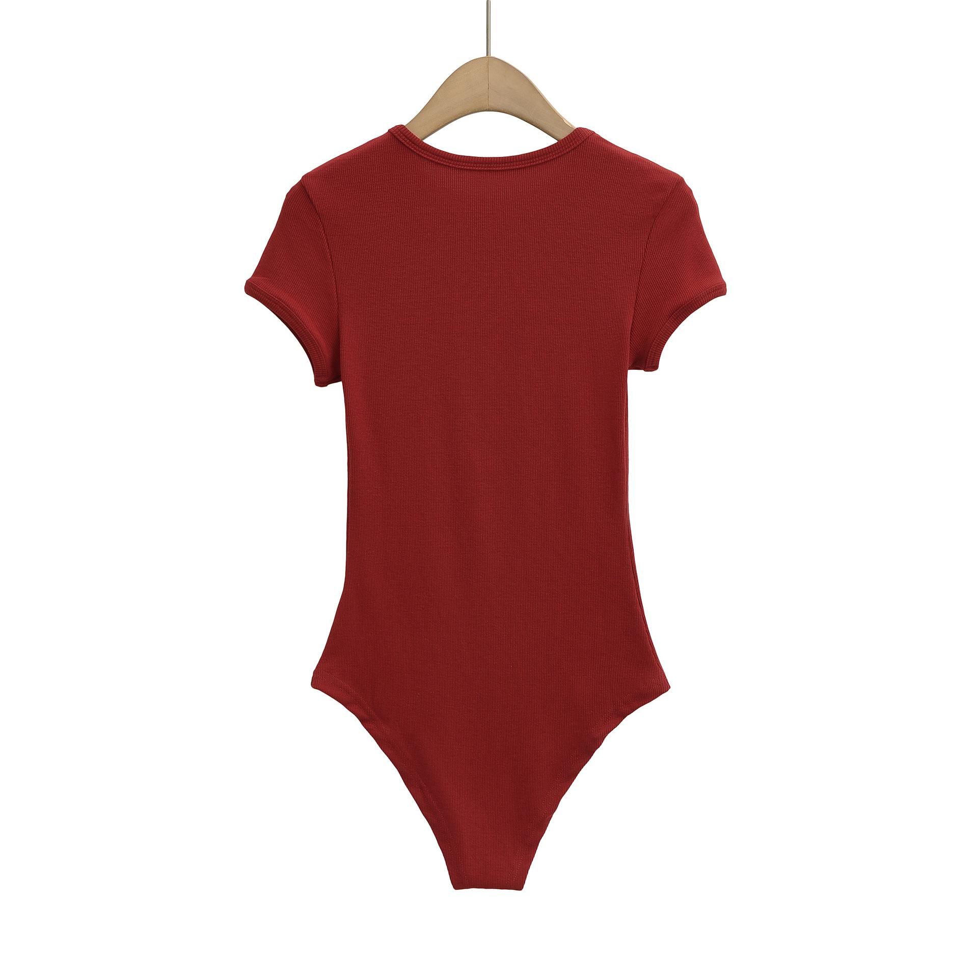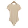 4258-Mono ajustado de estilo europeo y americano para mujer 2025 Nuevo Sexy Sexy Camiseta básica de manga corta y cuello redondo