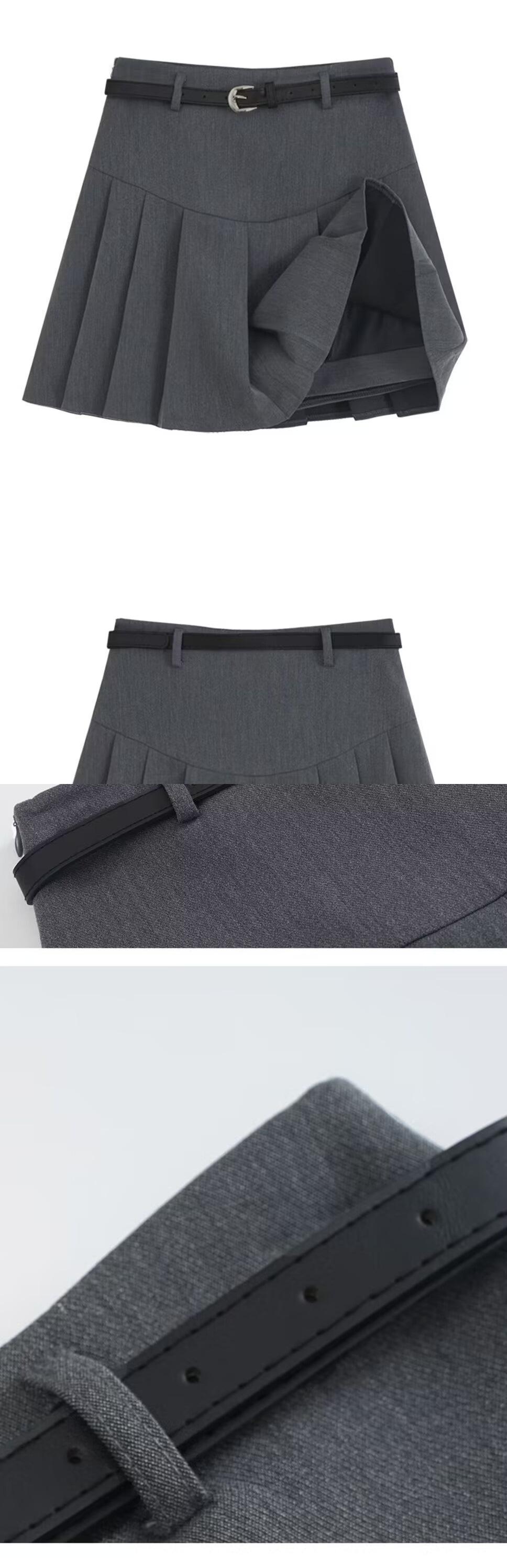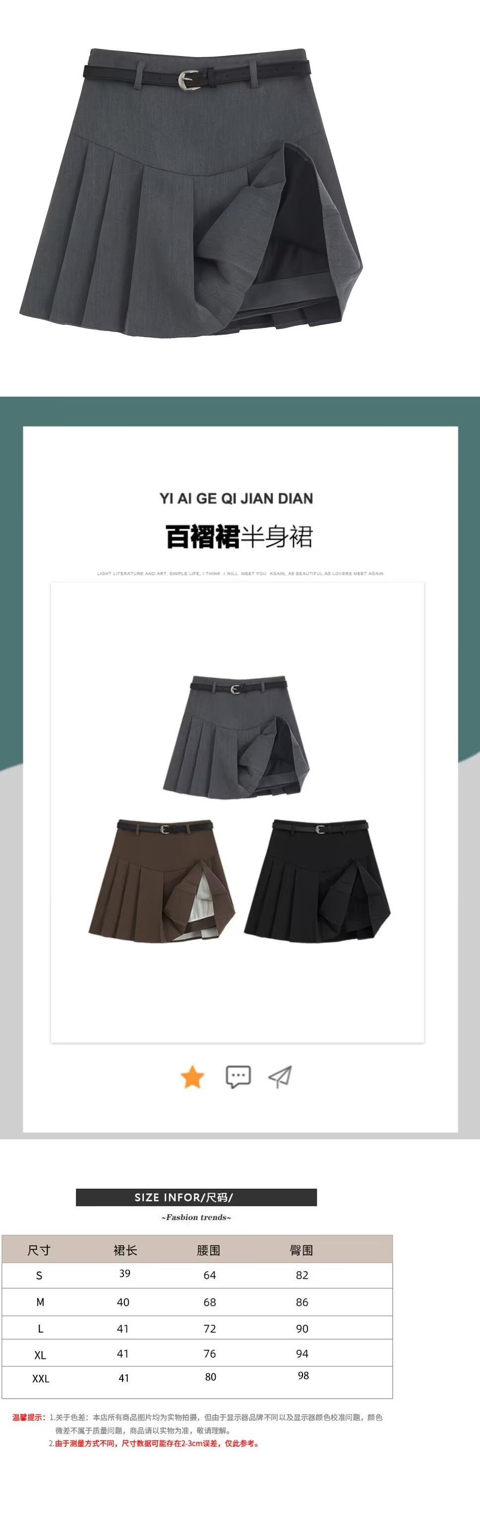 Falda Plisada Gris Falda Corta para Mujer 2025 Nuevo Primavera y Verano Estilo Coreano Cintura Alta Pequeña Look Adelgazante Falda Línea A