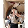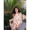 Verano 2025 Nueva Camisa de Gasa de Hada para Mujer Estilo Francés Suave Estampada Camisa Corta con Mangas Farol y Tirantes