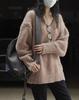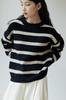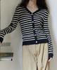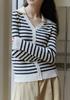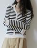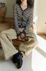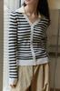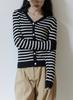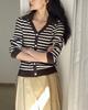 Suéter de Lana de Cuello Polo Retro Francés Nuevo de Otoño "Estilo Privado" Rayado de Color en Contraste Top Ajustado para Mujer