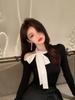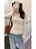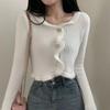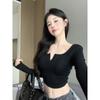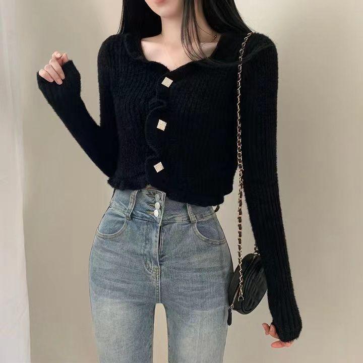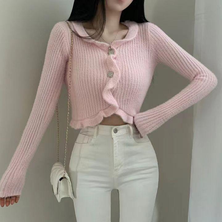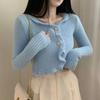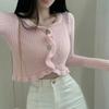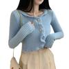 Chicas Calientes Deseo Puro Sexy Camiseta de Cuello en V con Volantes Estilo Coreano Ajustada Adelgazante Nicho Moda Cárdigan Tejido Top para Mujer