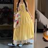Verano 2025 Nuevo Estilo Verano Hermoso Look Adelgazante Falda Larga Estilo Francés Delicado Vestido Chaleco Amarillo Sin Mangas para Mujer