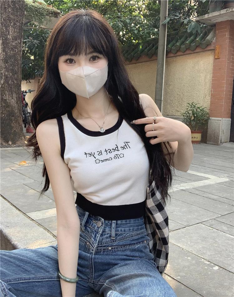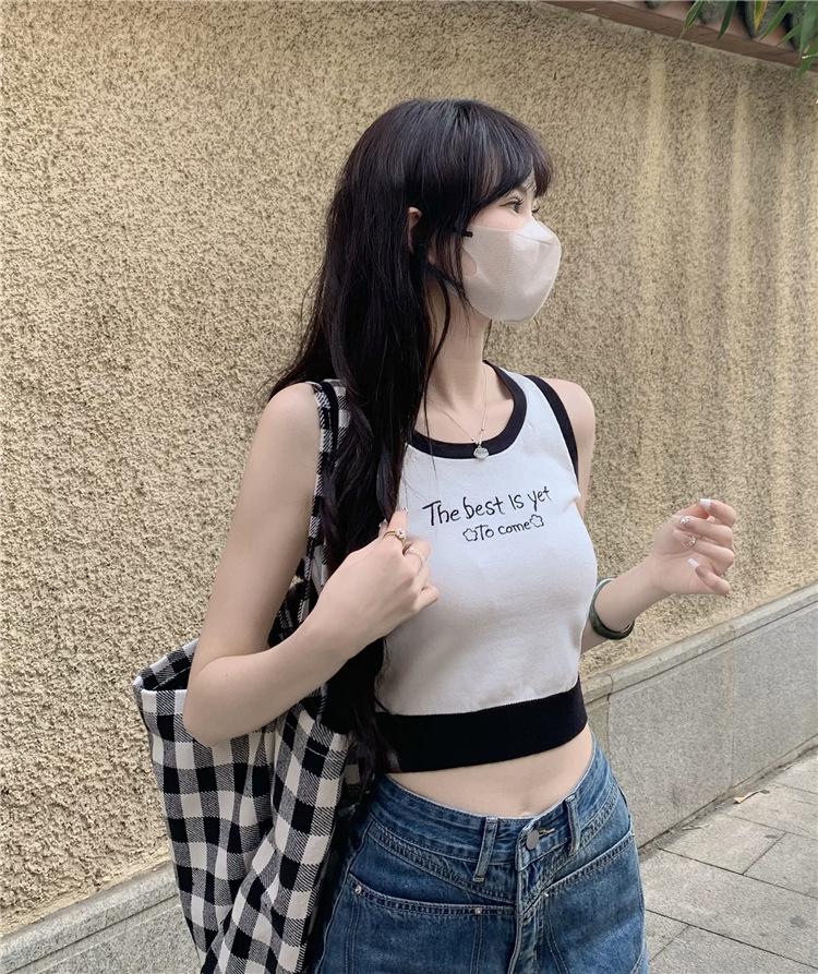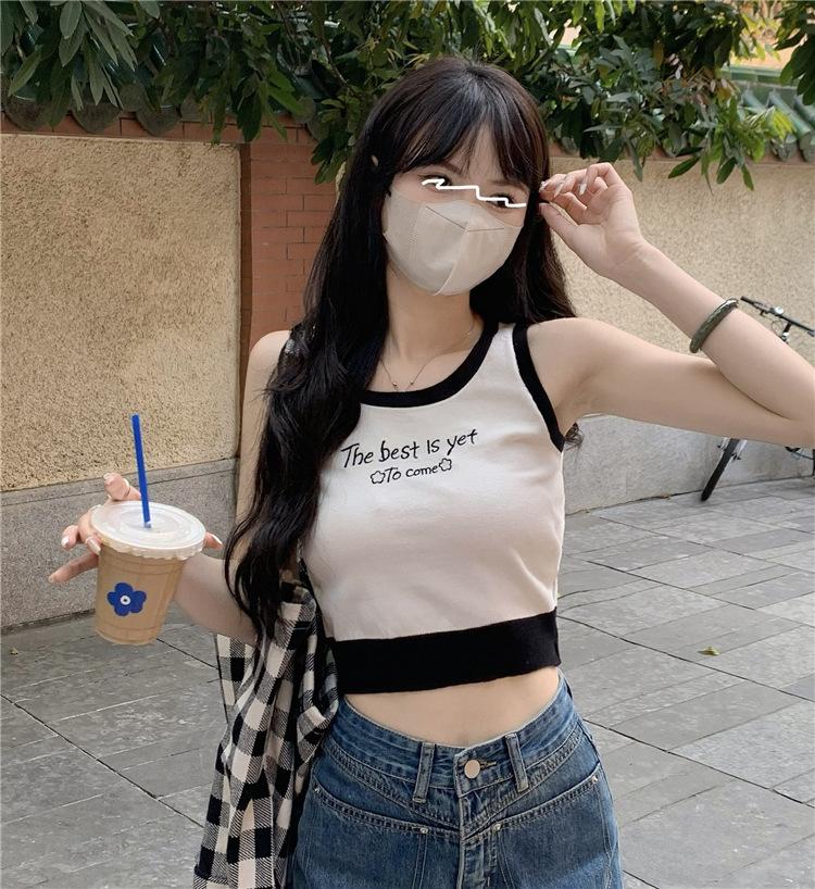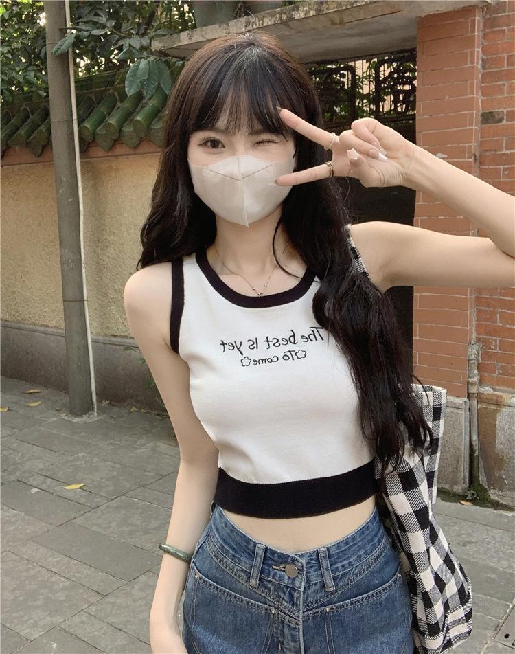 Camisola Pequeña para Mujer Interior de Punto de Lana Verano Puro para Fondo Nuevo Bm Corta sin Mangas Top Deportivo Exterior