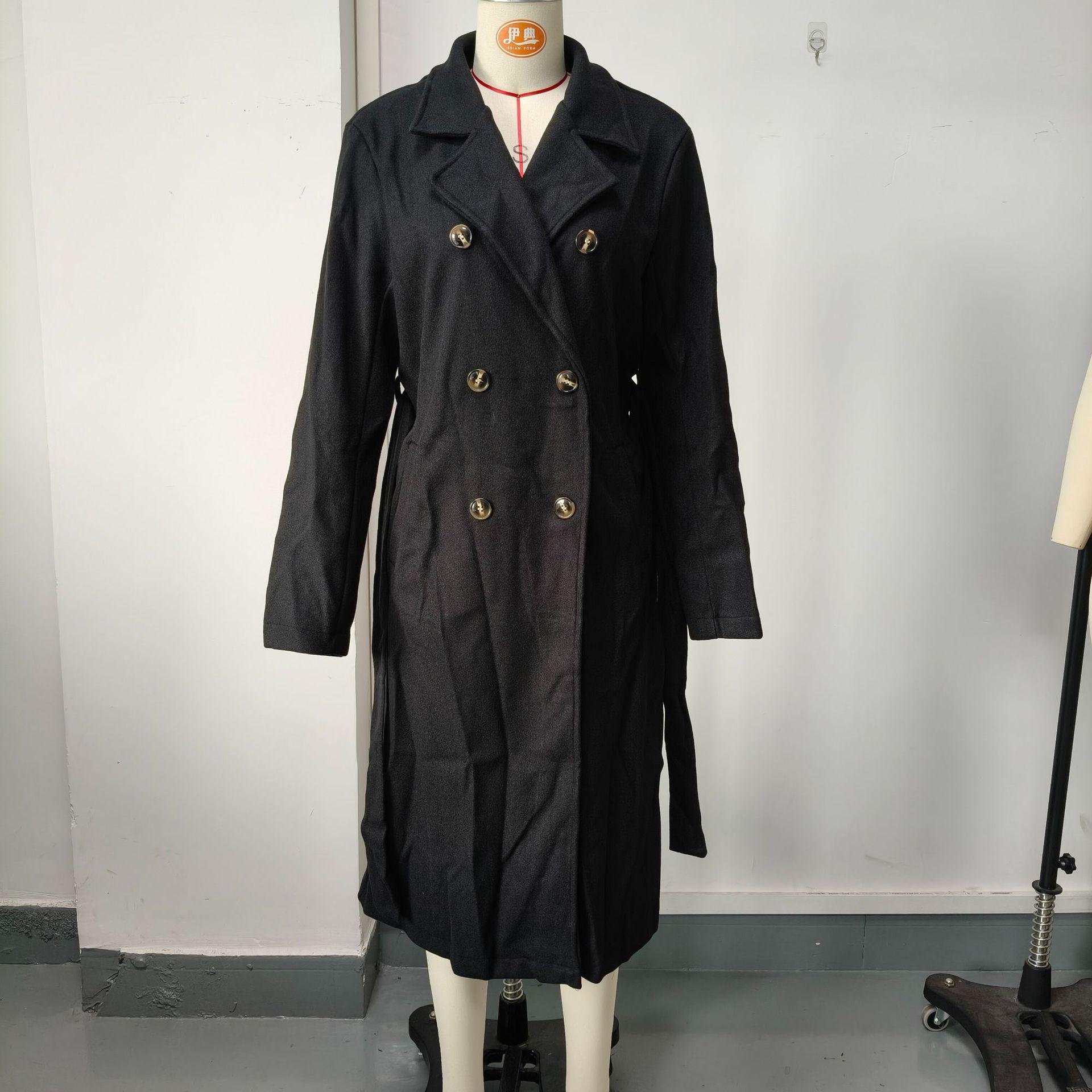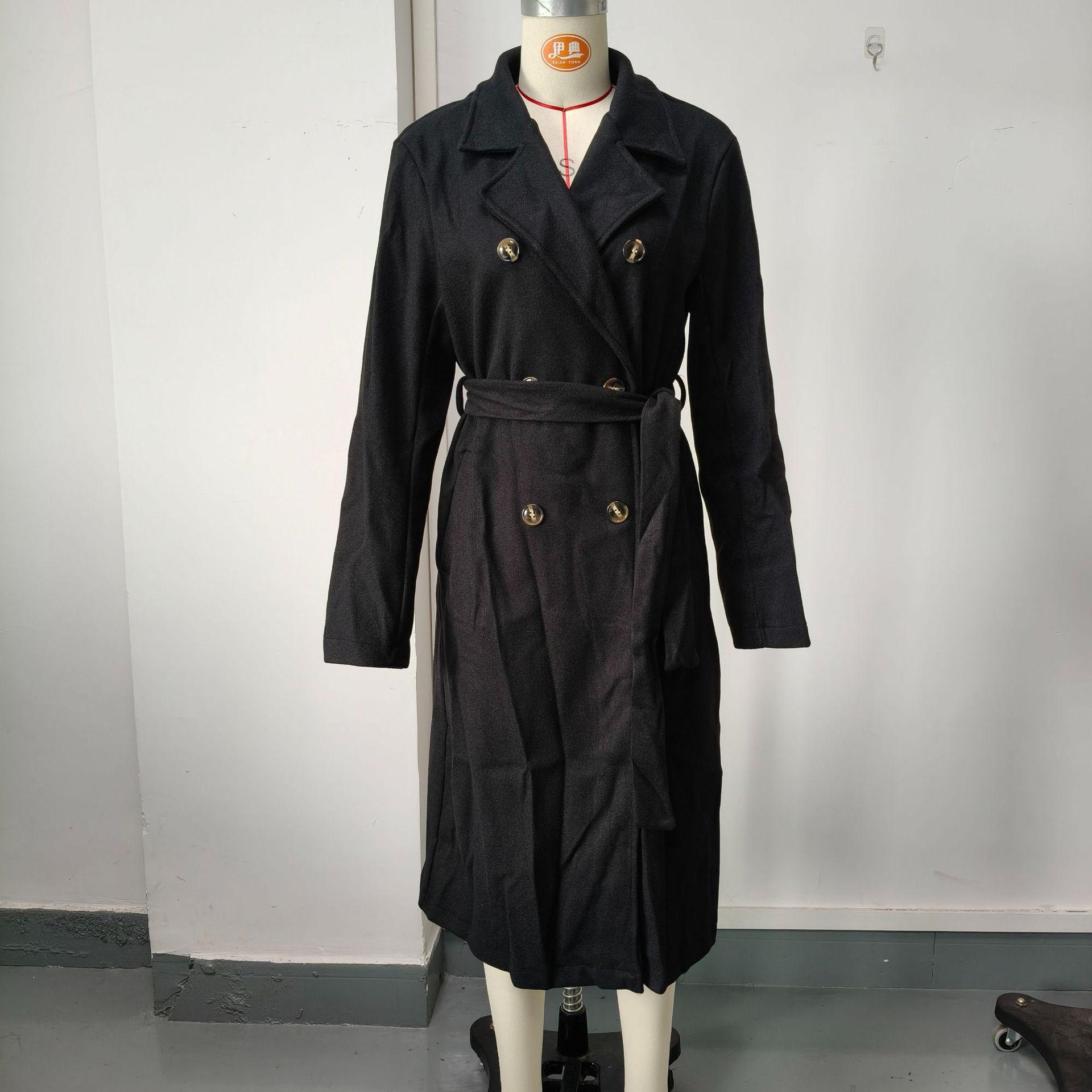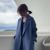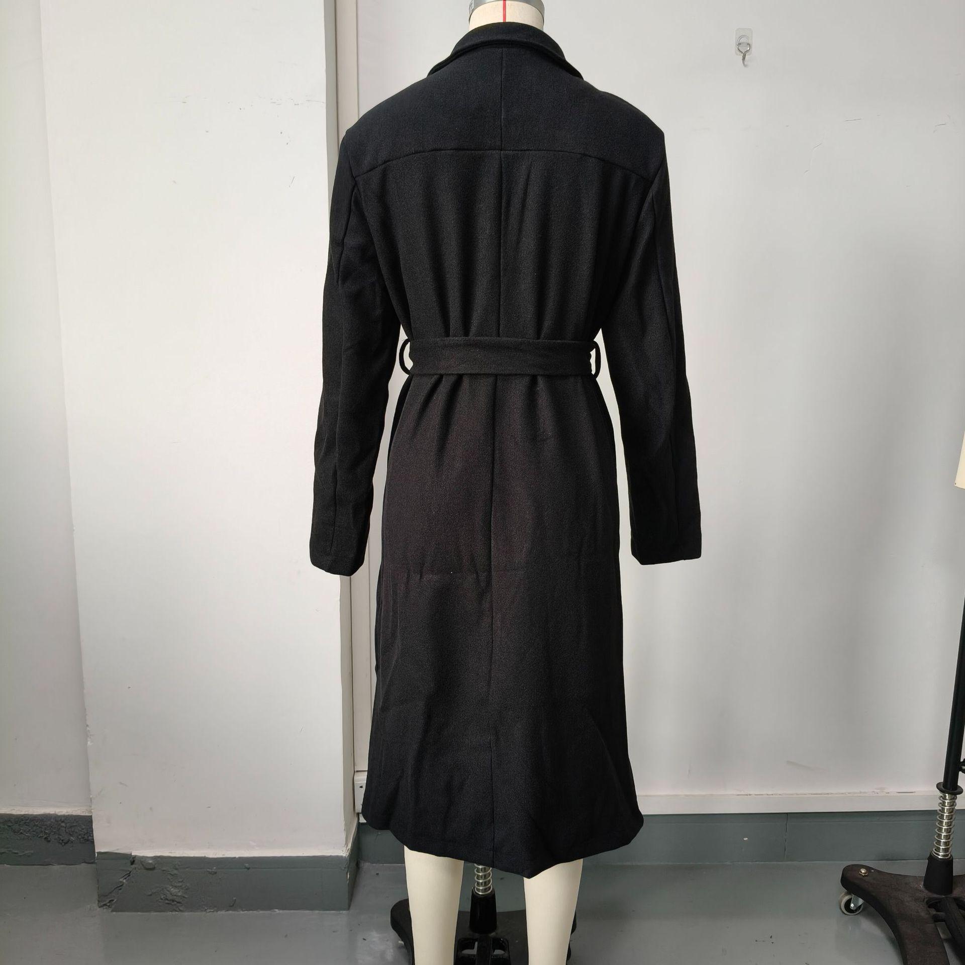 Otoño e invierno 2025 abrigo de lana cruzado para mujer europeo y americano nuevo abrigo de lana con solapa de traje de doble botonadura con cordones para mujer