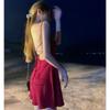 [Venta al por mayor transfronteriza] Vestido con tirantes 2025 Nuevo Verano Cintura Francés Sexy Espalda Descubierta Chic Falda Línea A para Mujer