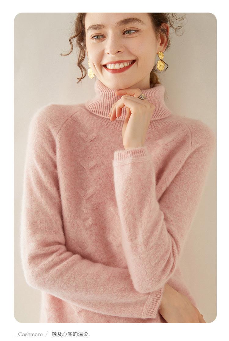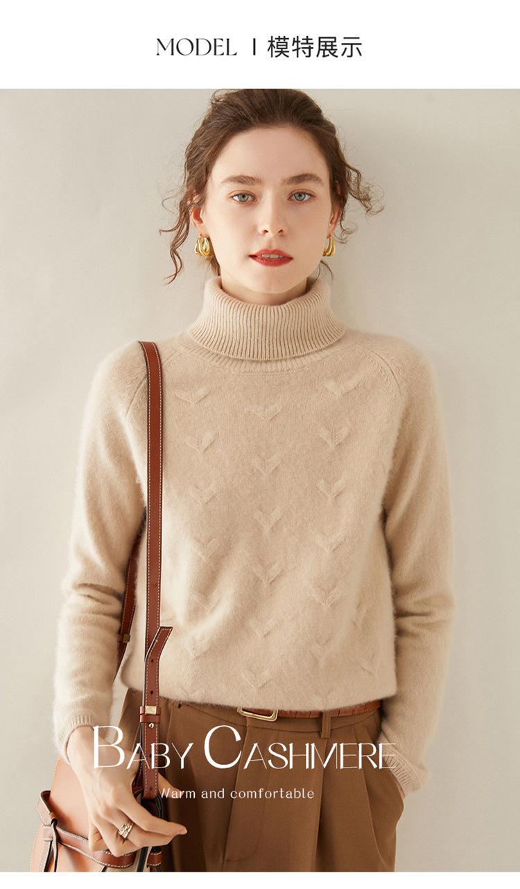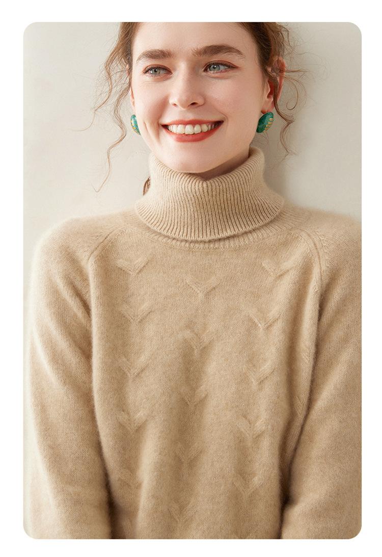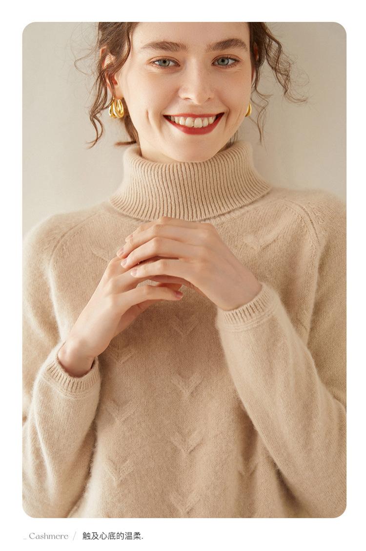 Suéter de Cachemira Nuevo de Otoño e Invierno para Mujer Suéter de Cuello Alto Jacquard Jersey de Punto Holgado para Otoño e Invierno para Mujer Venta al por Mayor