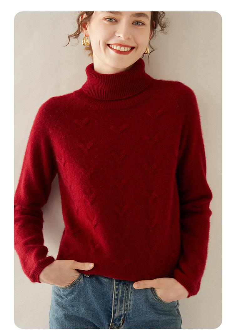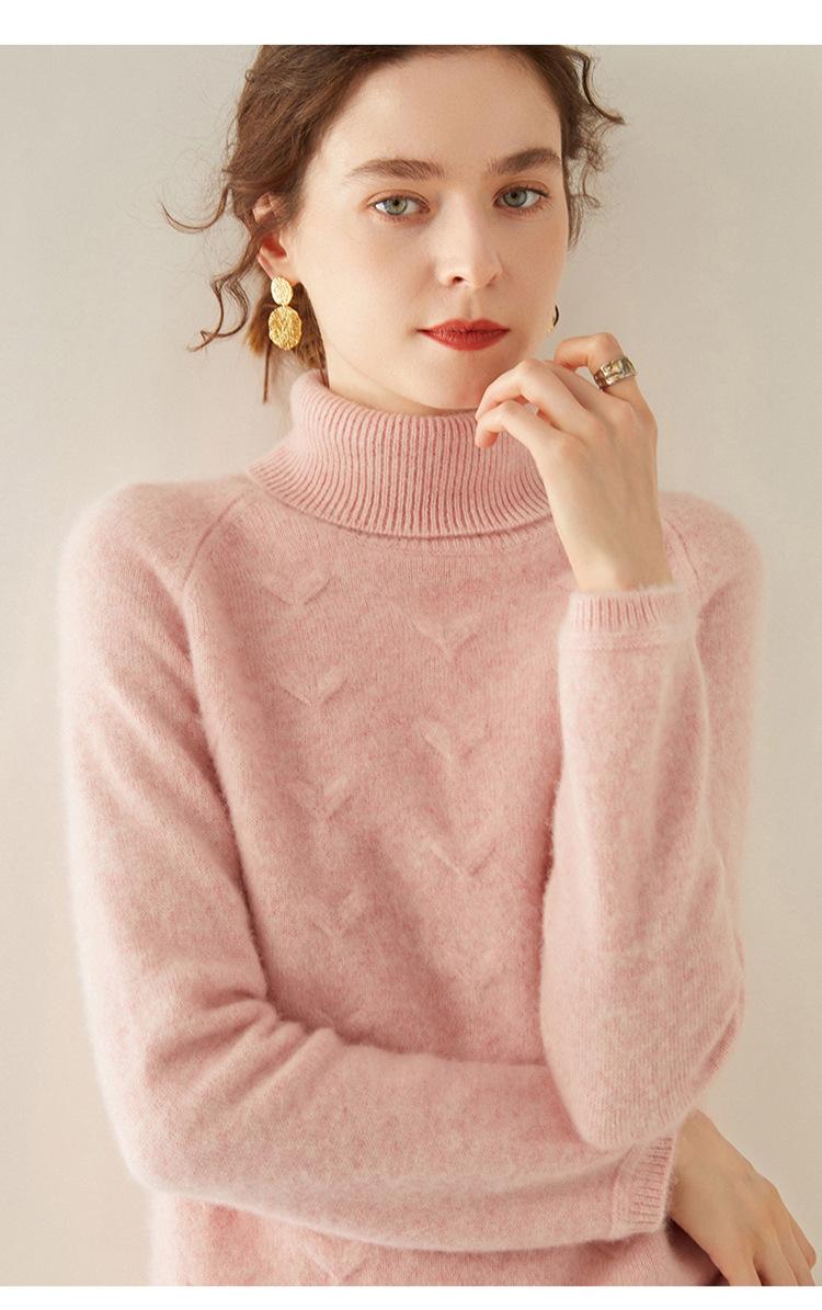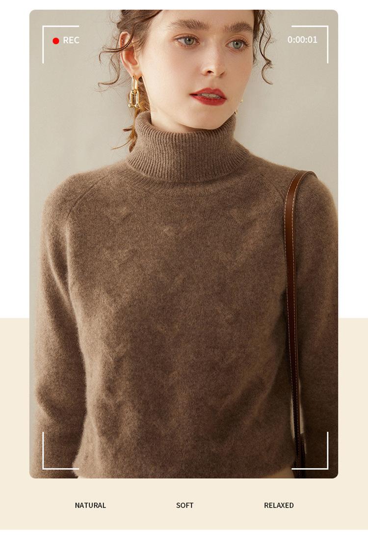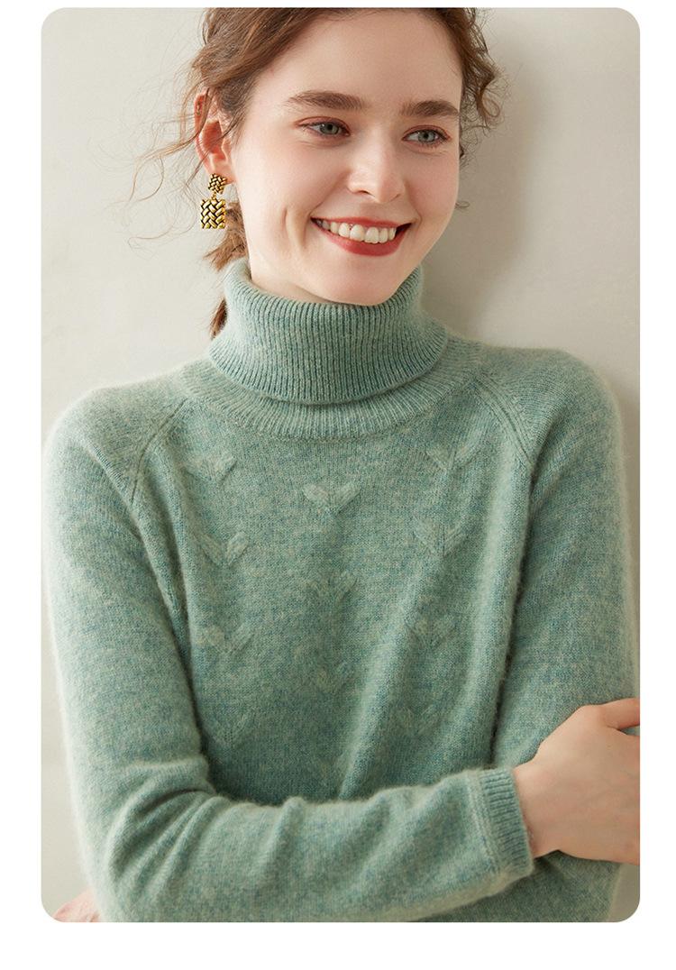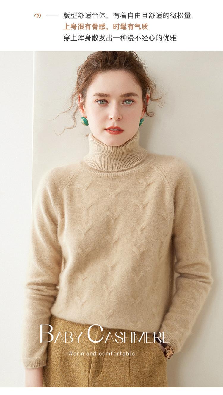 Suéter de Cachemira Nuevo de Otoño e Invierno para Mujer Suéter de Cuello Alto Jacquard Jersey de Punto Holgado para Otoño e Invierno para Mujer Venta al por Mayor