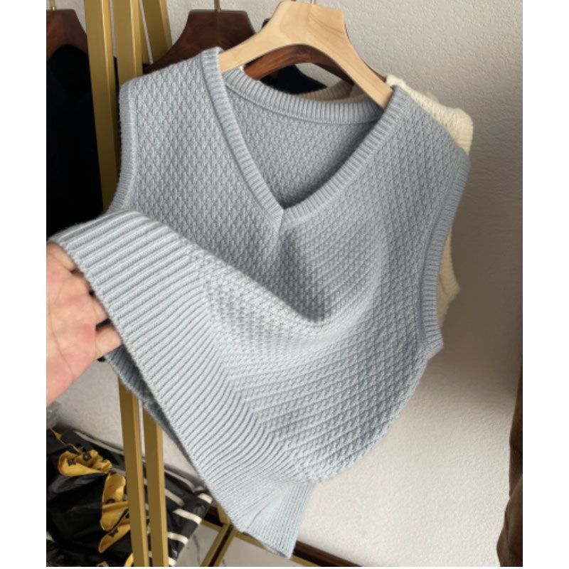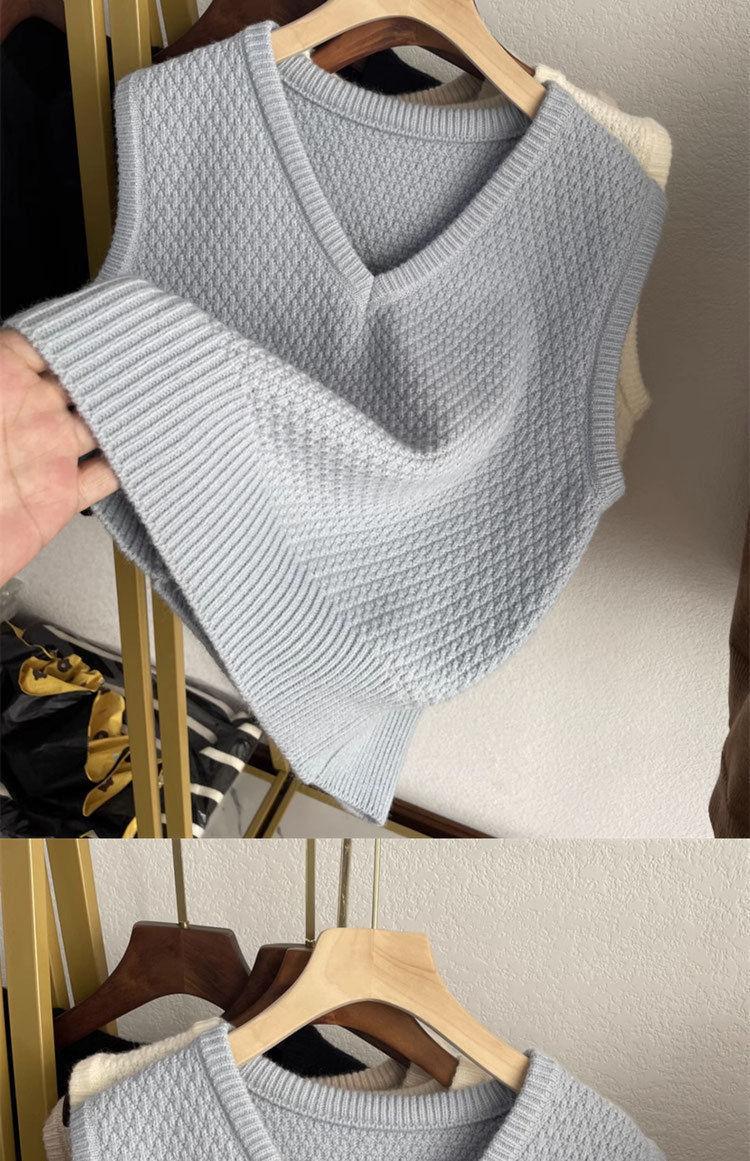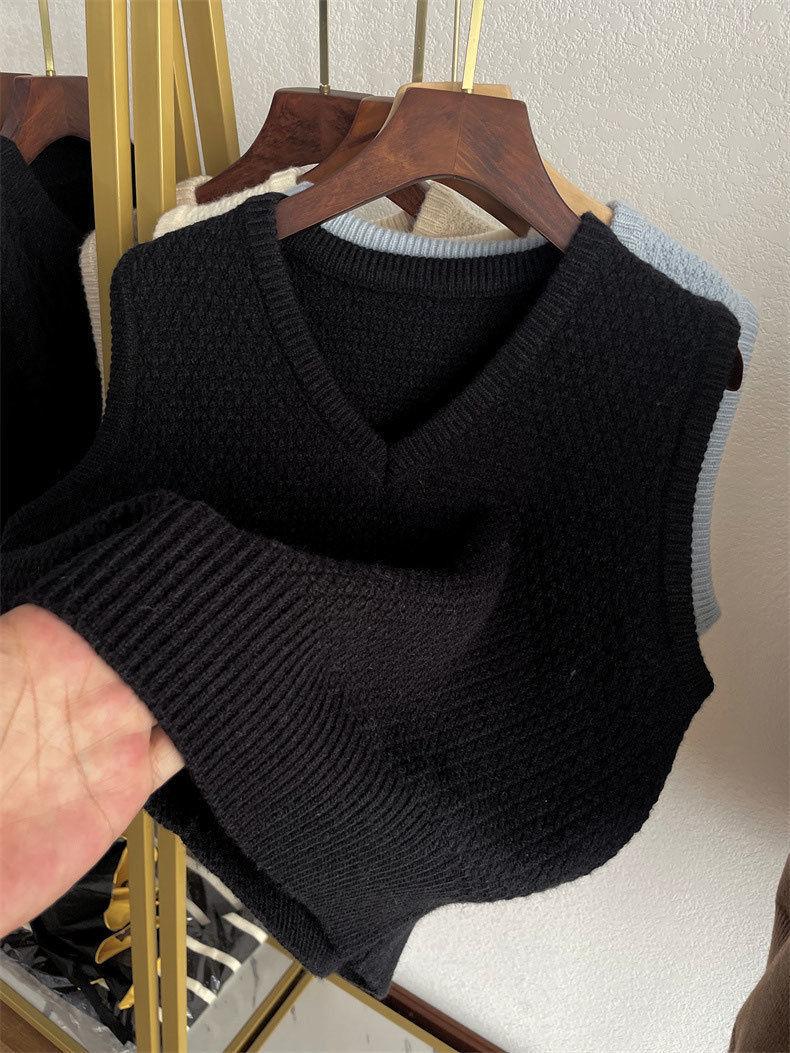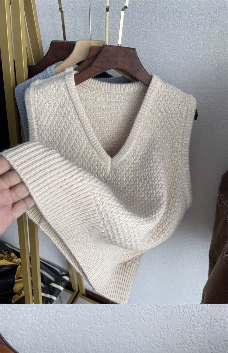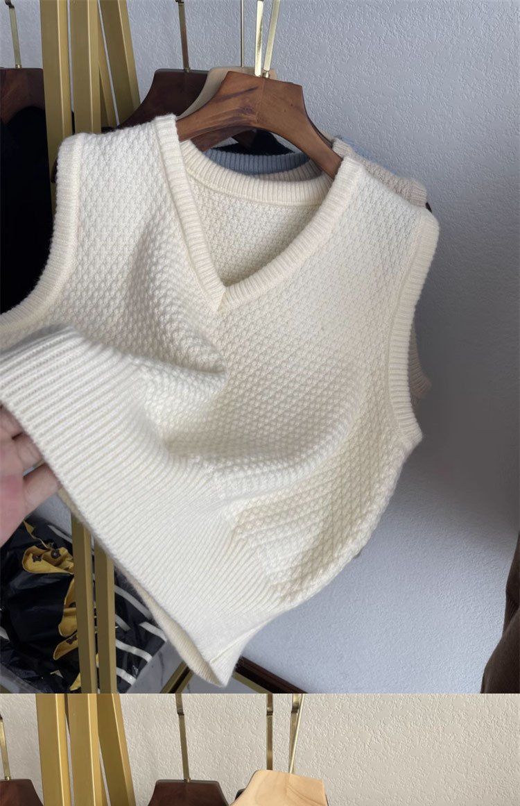 Chaleco Suéter de Punto para Mujer con Cuello en V y Color Sólido para Otoño e Invierno, Elegante y Cálido