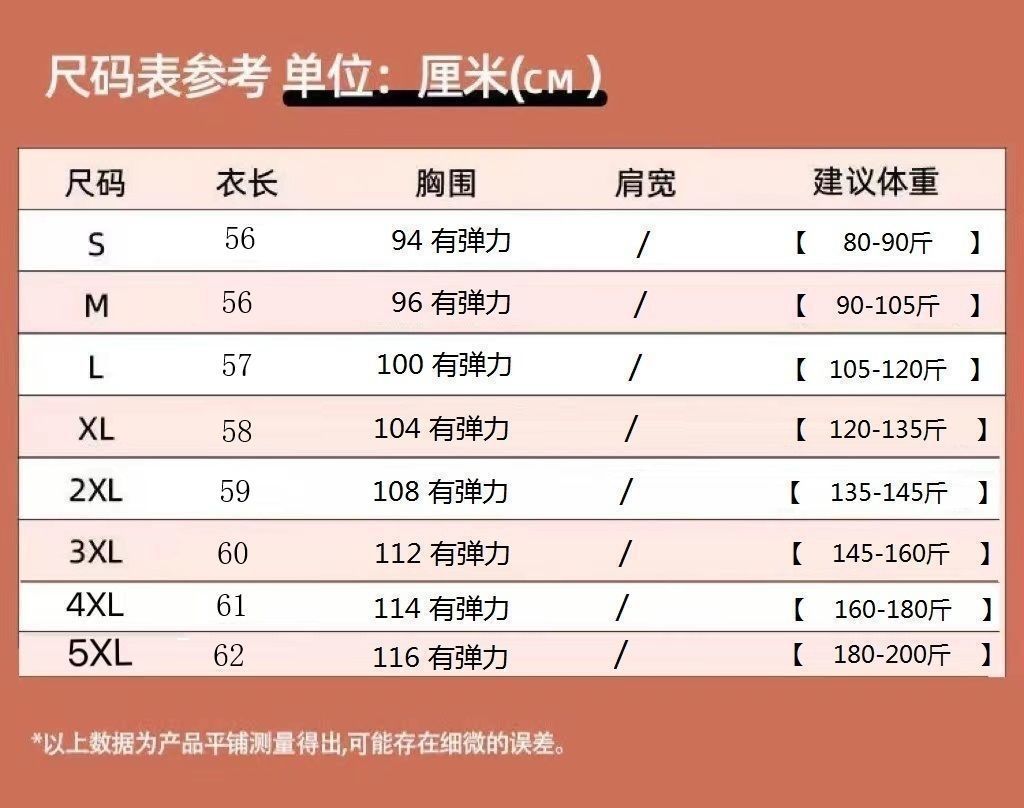 XXS, S, M, L, XL, XXL, XXXL, XXXXL, 5XL