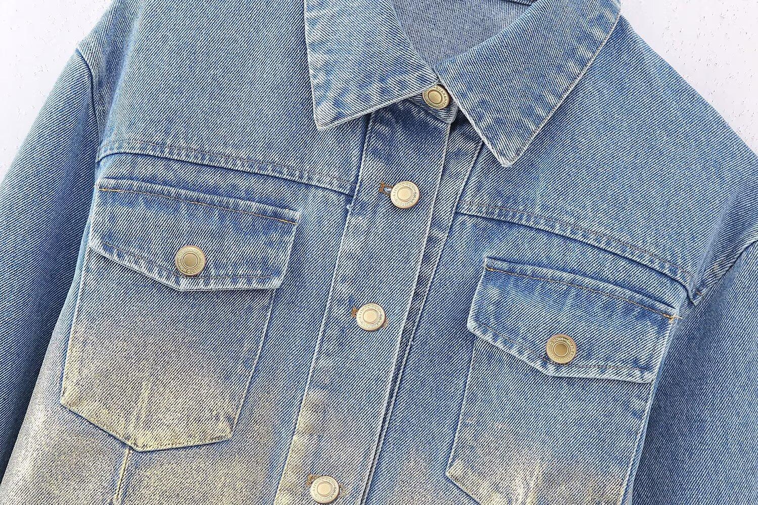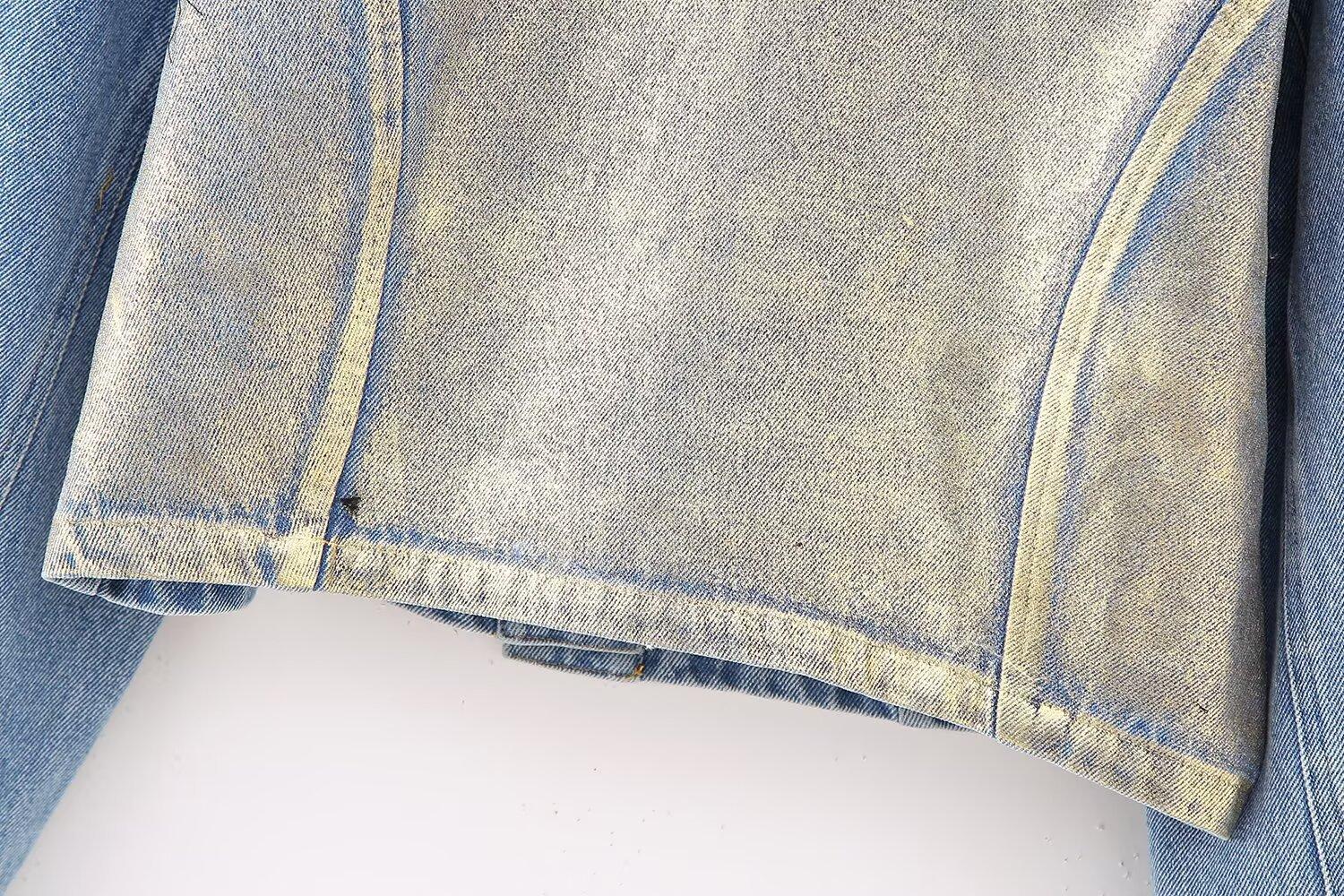 2025 Nueva Ropa de Otoño para Mujer Estilo Europeo y Americano Chaqueta Corta de Mezclilla Metálica 6164190