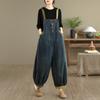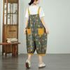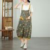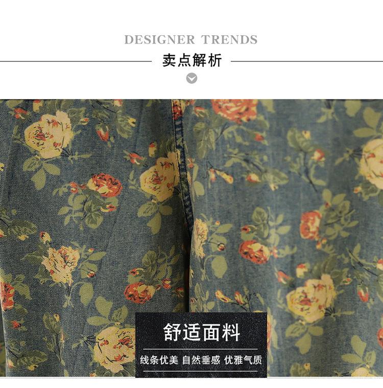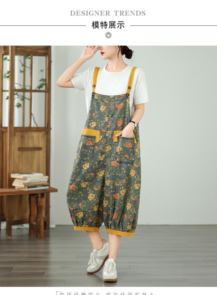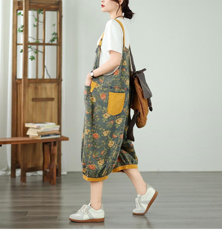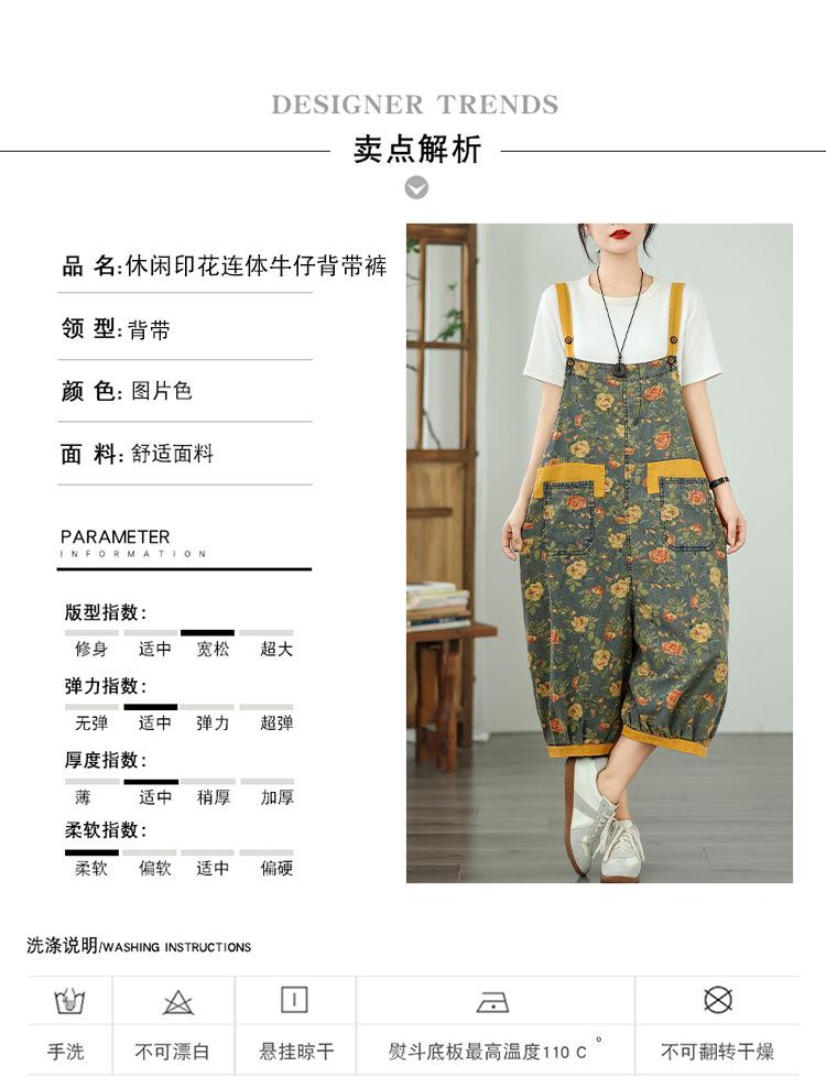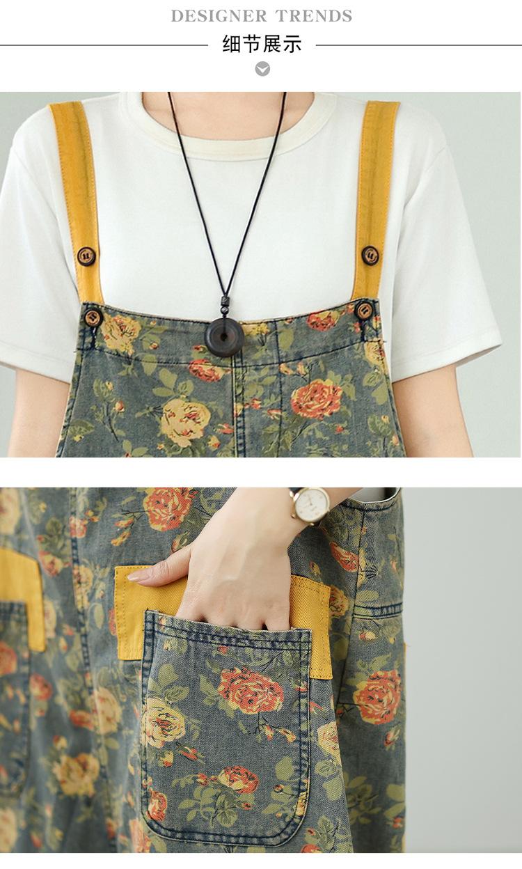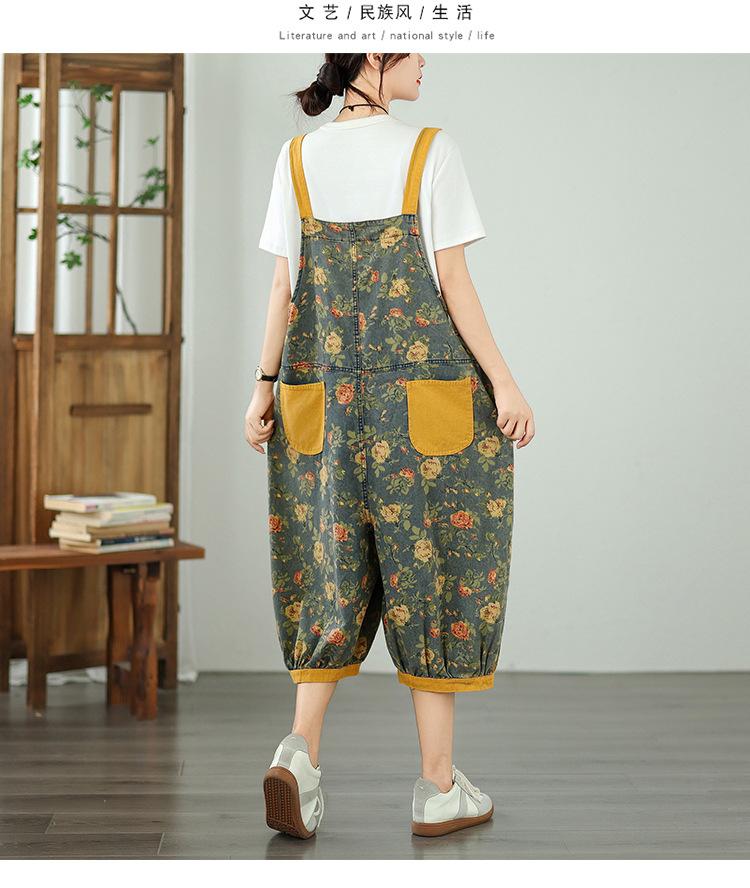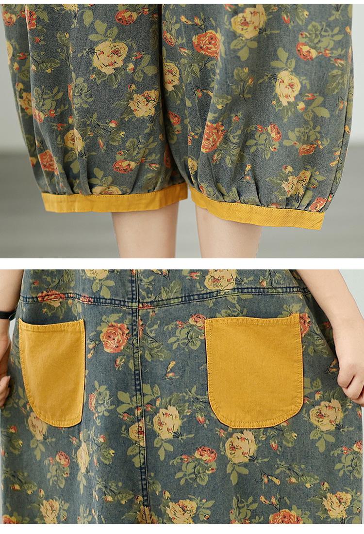 2025 Nuevo Estilo de Verano Literario Talla Grande Holgado Adelgazante Retro Estampado Peto Denim Tres Cuartos