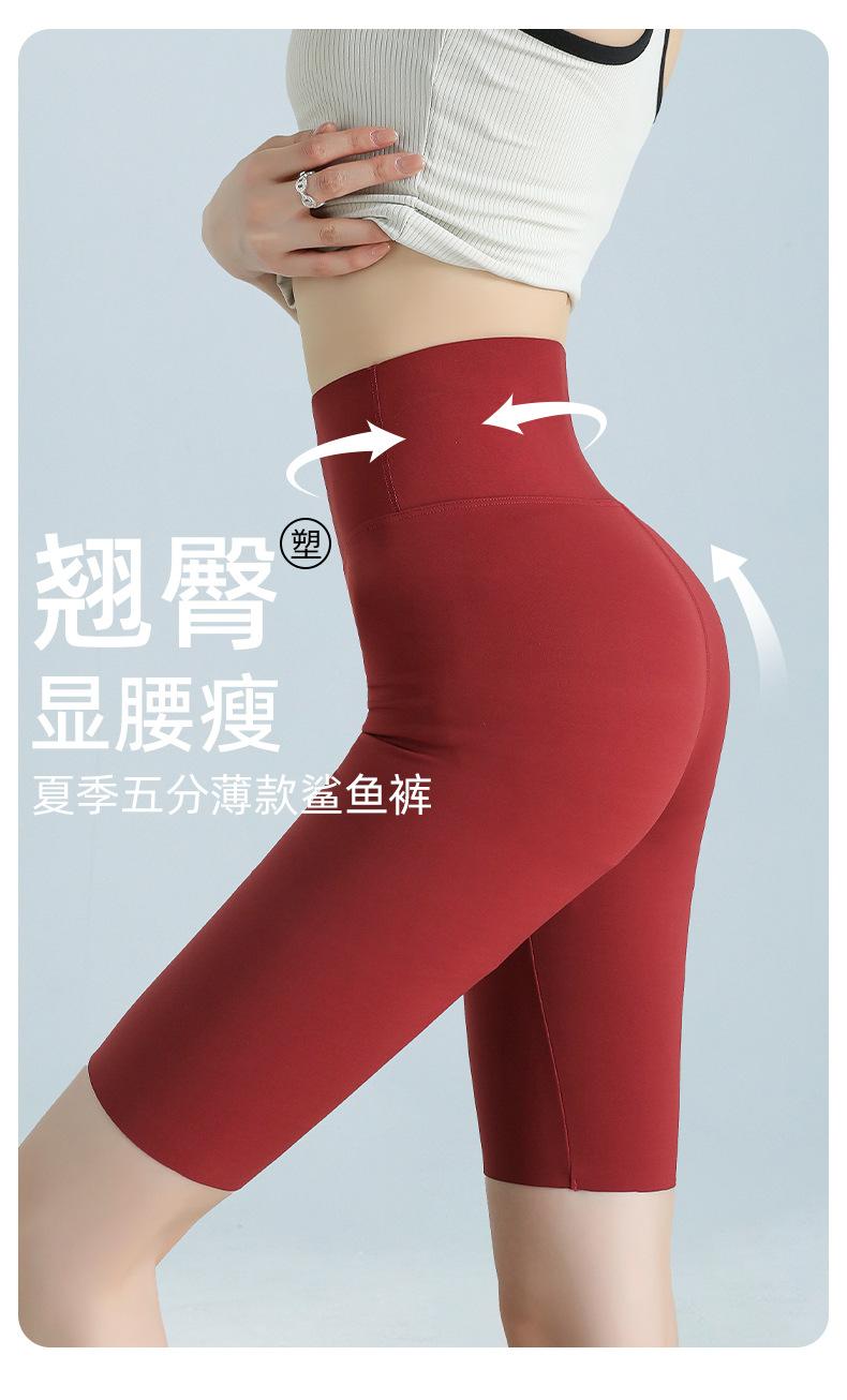 Pantalones Shark Slim-Fit Transfronterizos Verano Levanta Glúteos Control de Abdomen Leggings Adelgazantes Deportes Yoga Shorts Ciclismo de Cinco Puntos para Mujer