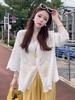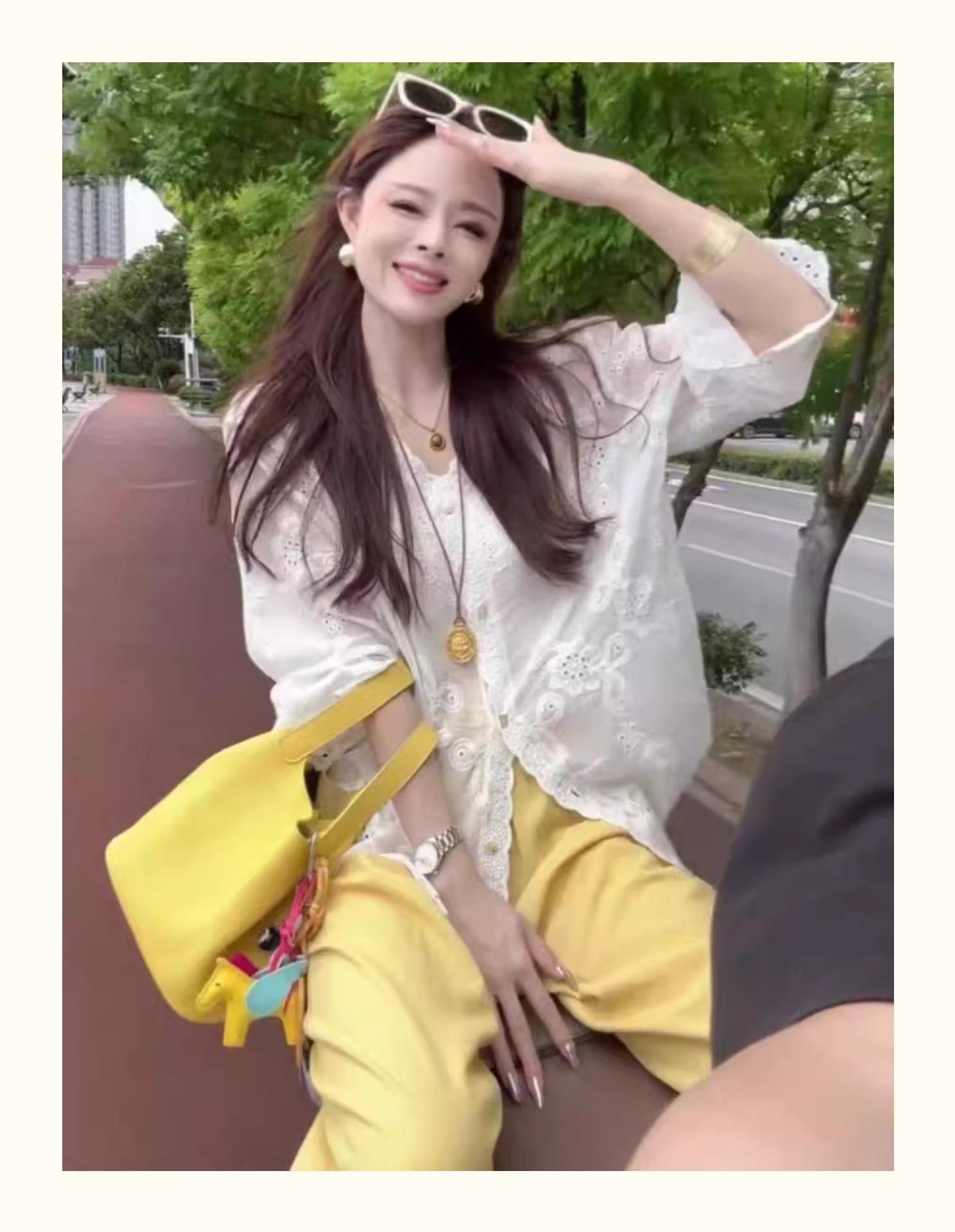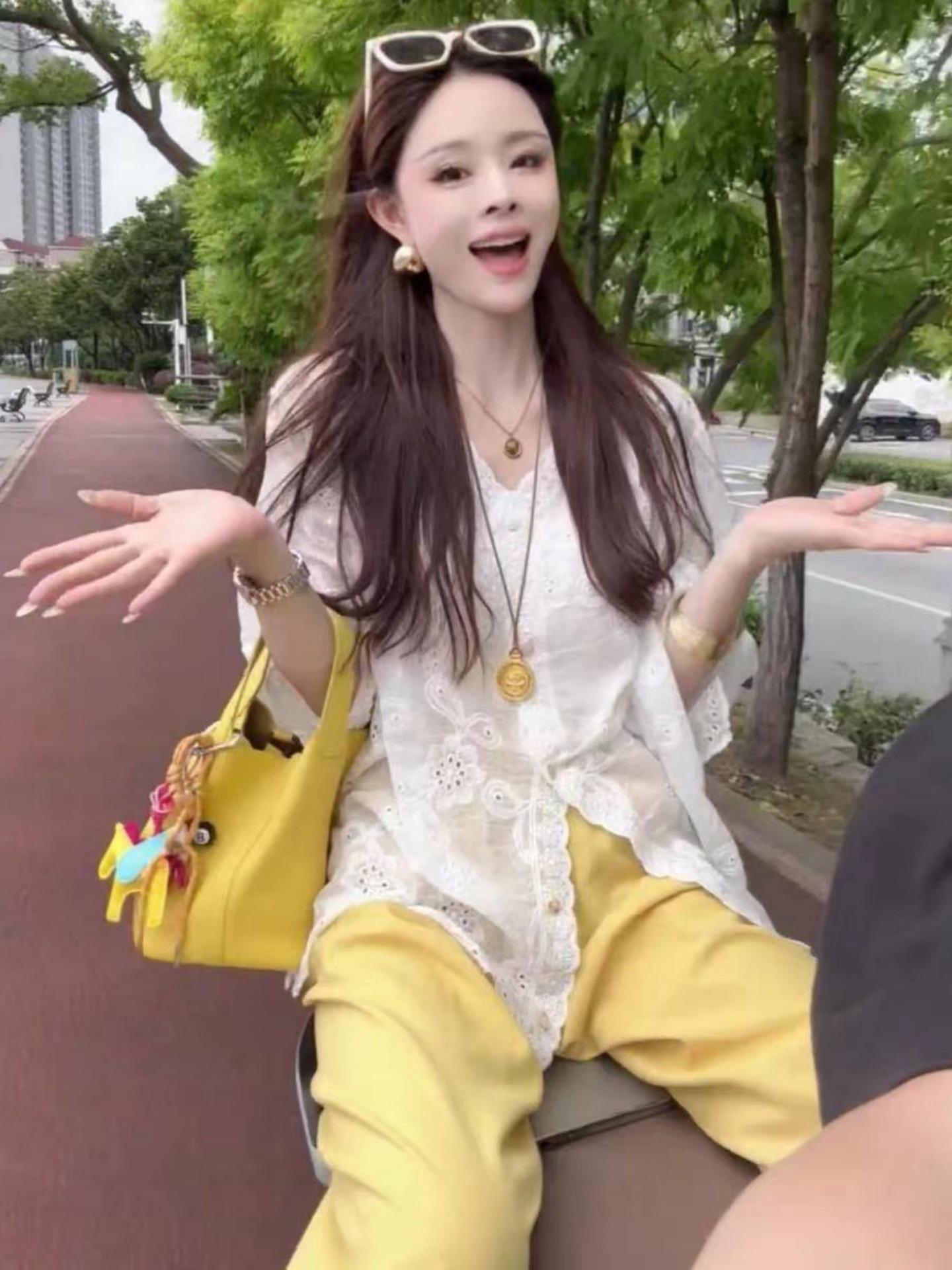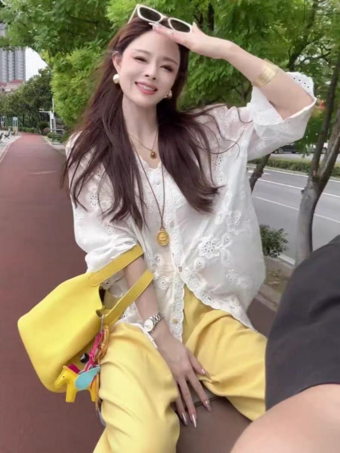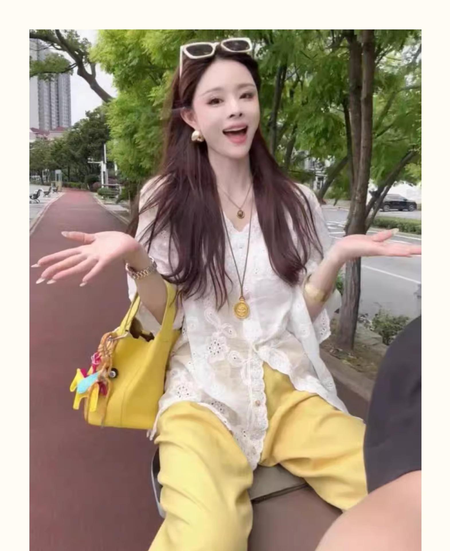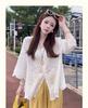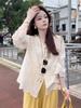 Camisa Francesa Dulce con Cuello en V Recorte Bordado para Mujer Verano Nuevo Monobotón de una Fila Cárdigan Holgado Chaqueta Top