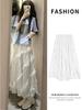 Falda de Encaje Blanca para Mujer, Nuevo Estilo Primavera/Verano 2026, Cintura Alta, Falda de Línea A Fluida, Falda Larga, Falda Irregular de Volantes