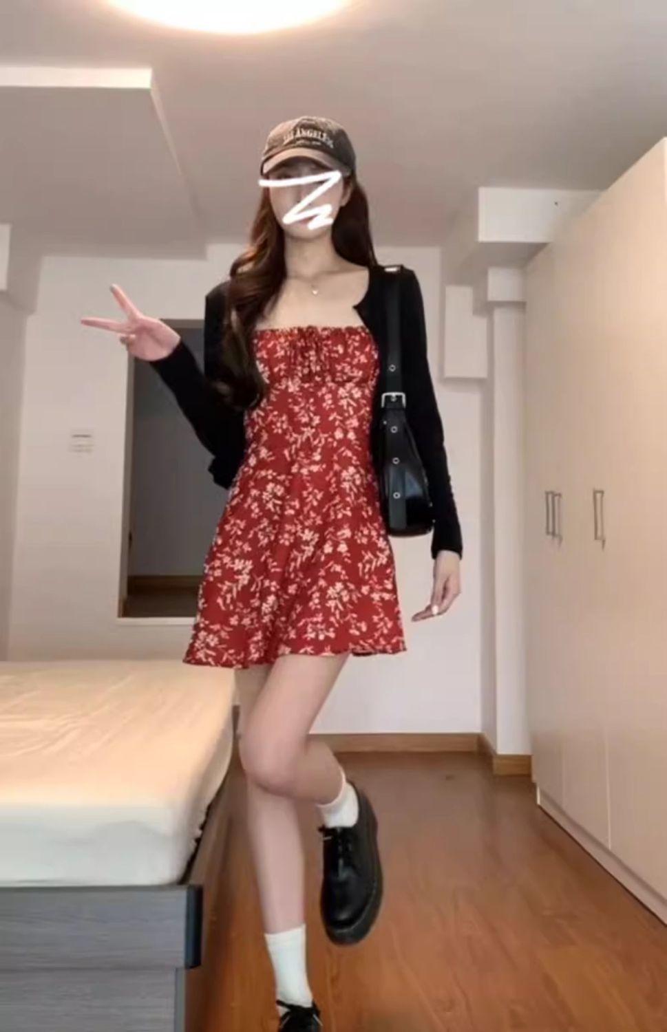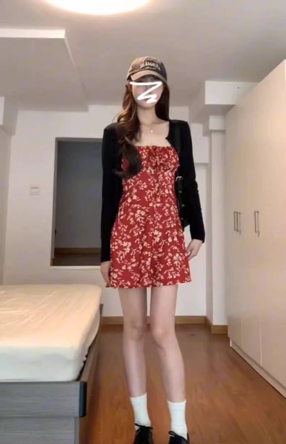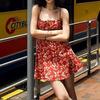 [Venta al por mayor transfronteriza] 2025 Nuevo vestido rojo floral con tirantes Vestido de playa de verano para vacaciones junto al mar