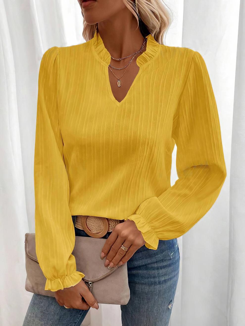 2024 Estación Independiente de Amazon Nueva Camisa de Manga Larga con Cuello en V de Moda para Mujer, Ajustada, Combinable con Todo