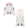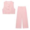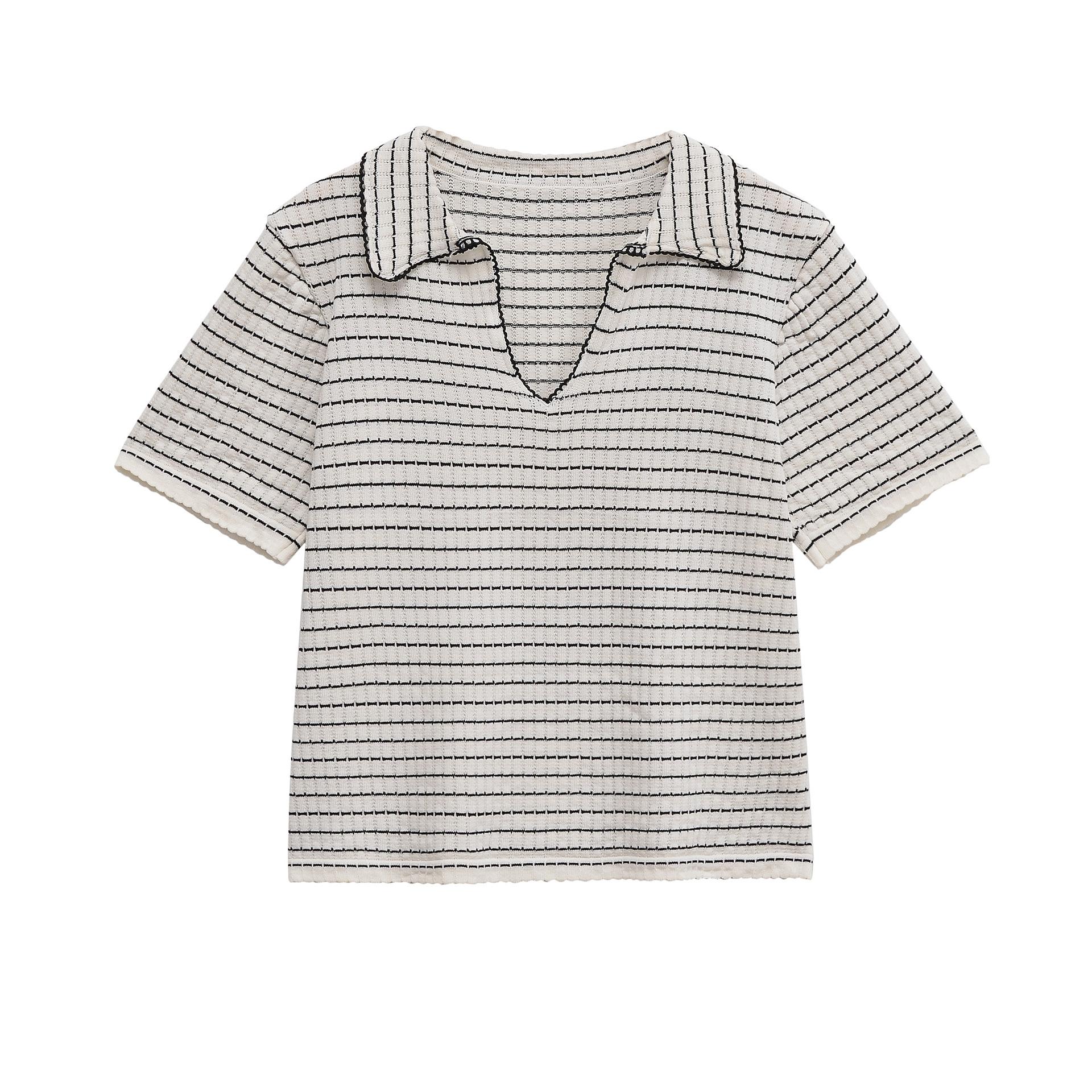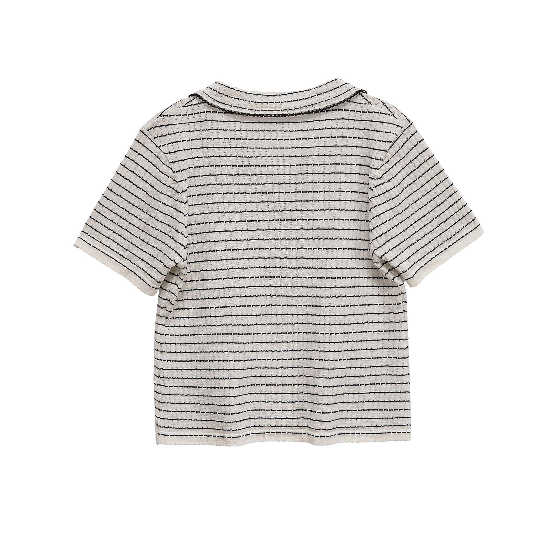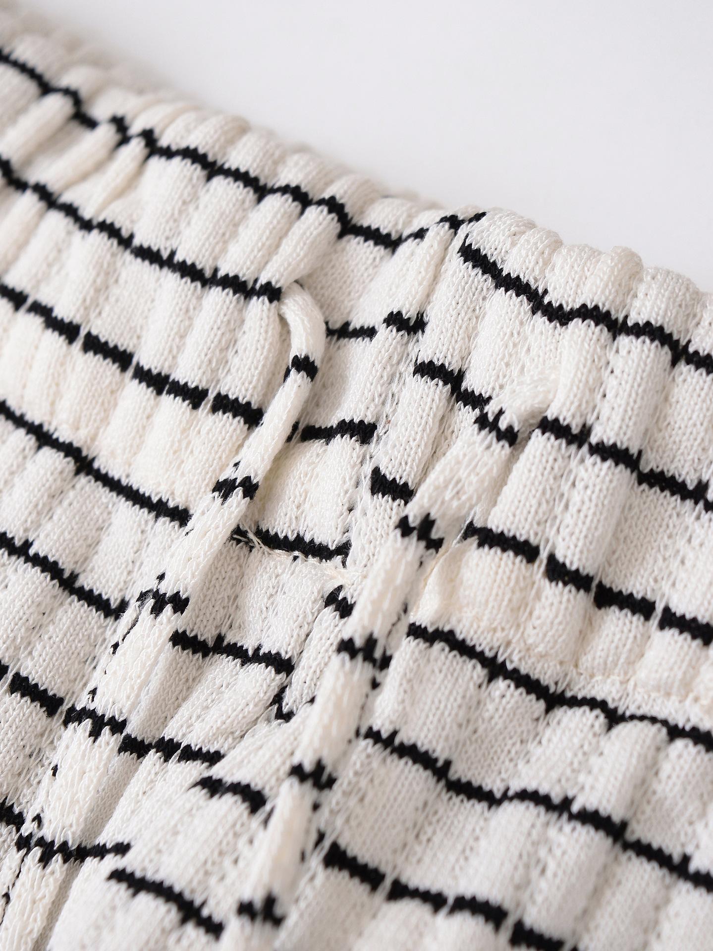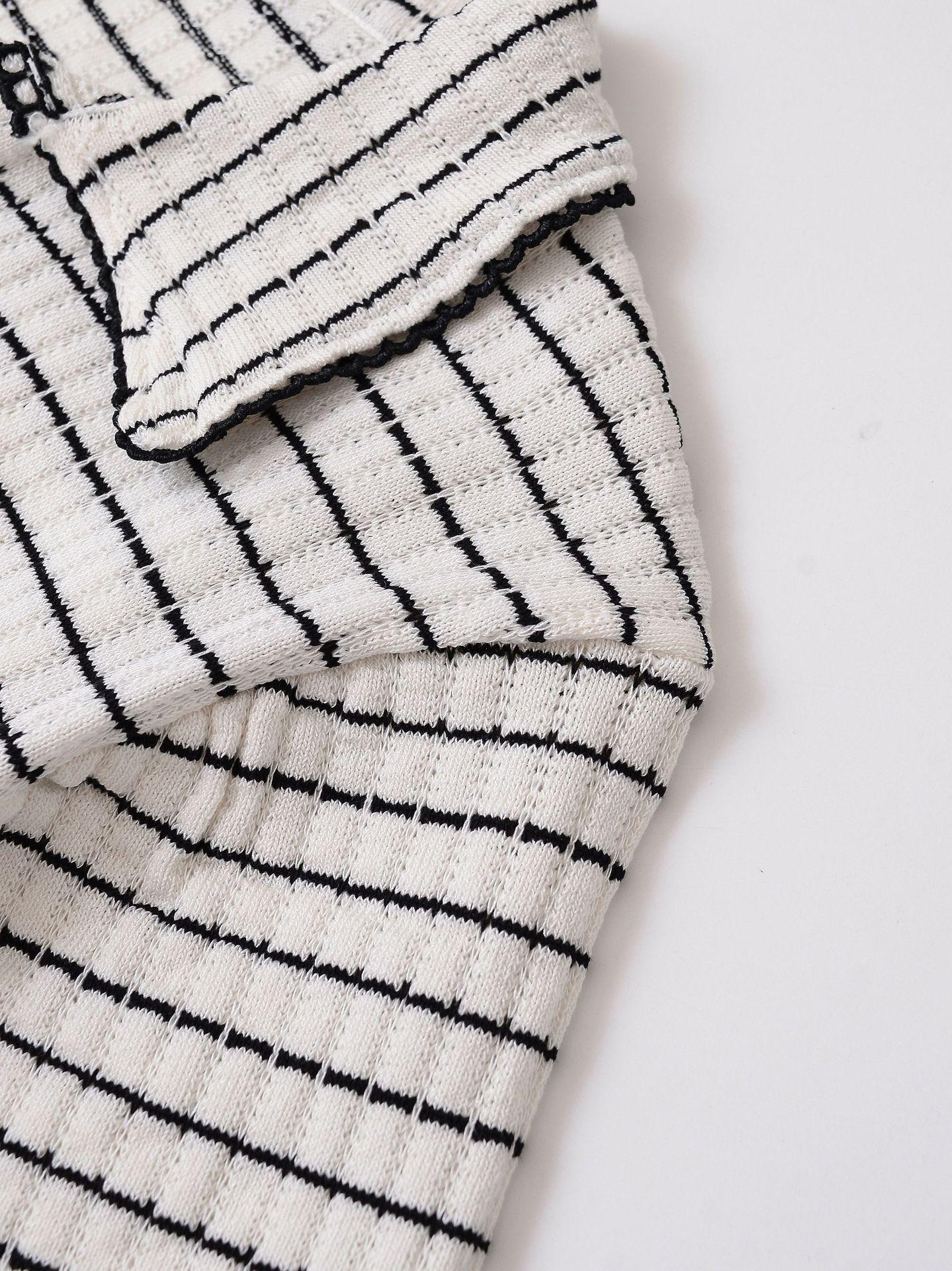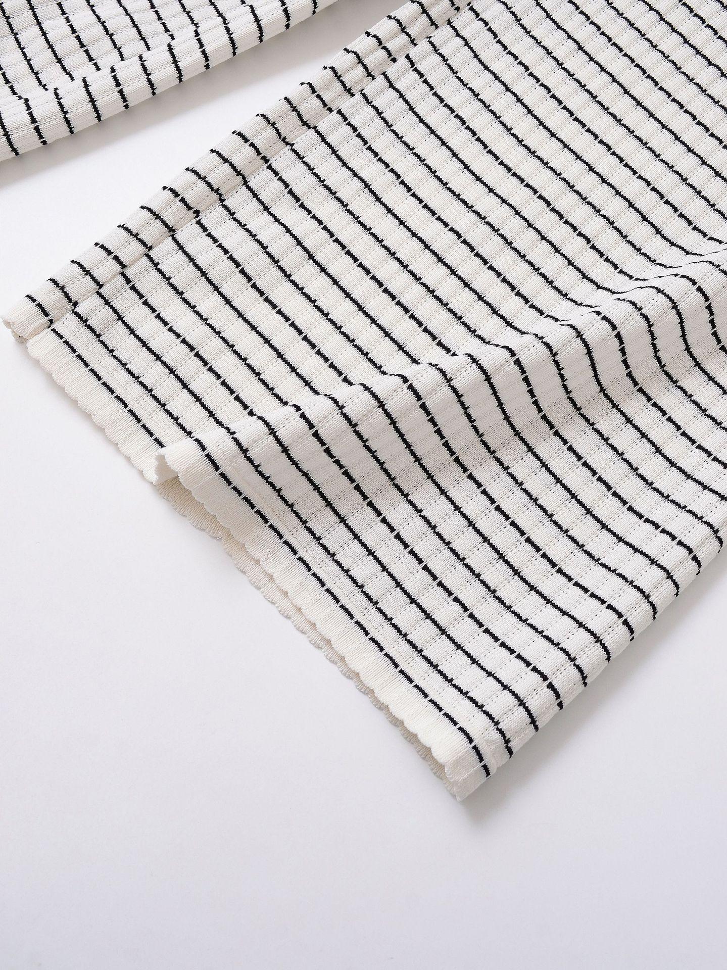 Exportación Transfronteriza Ropa de Mujer 2025 Verano Estilo Europeo y Americano Solapa Manga Corta Rayas en Contraste Top + Traje de Pantalón Casual para Mujer