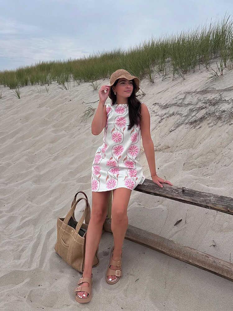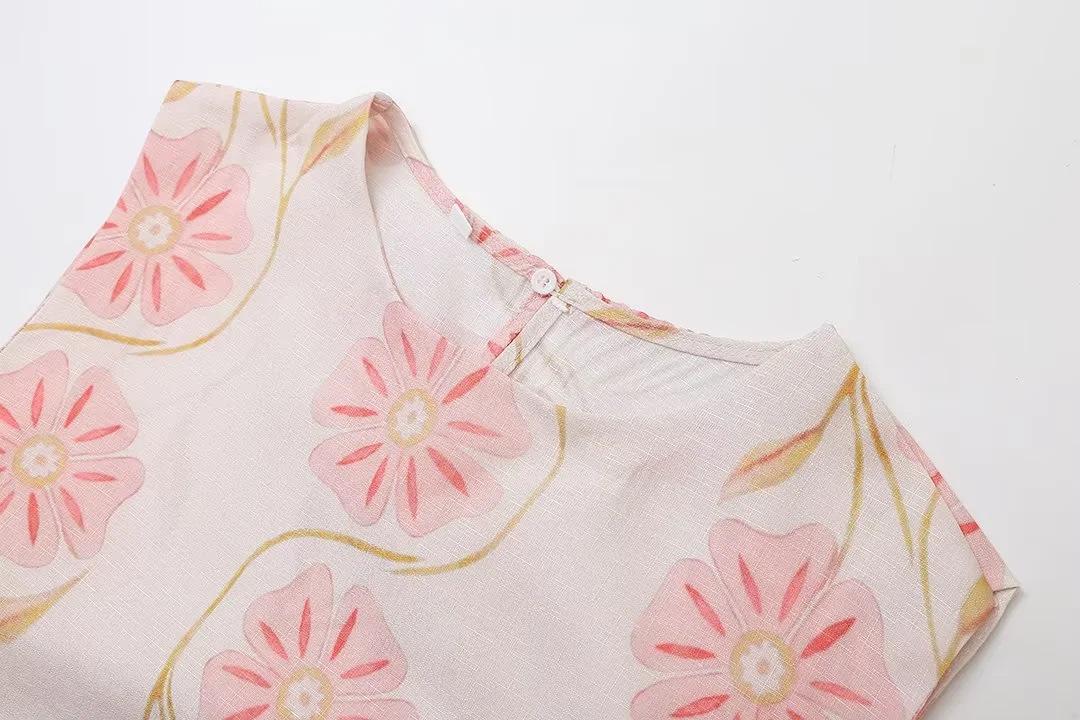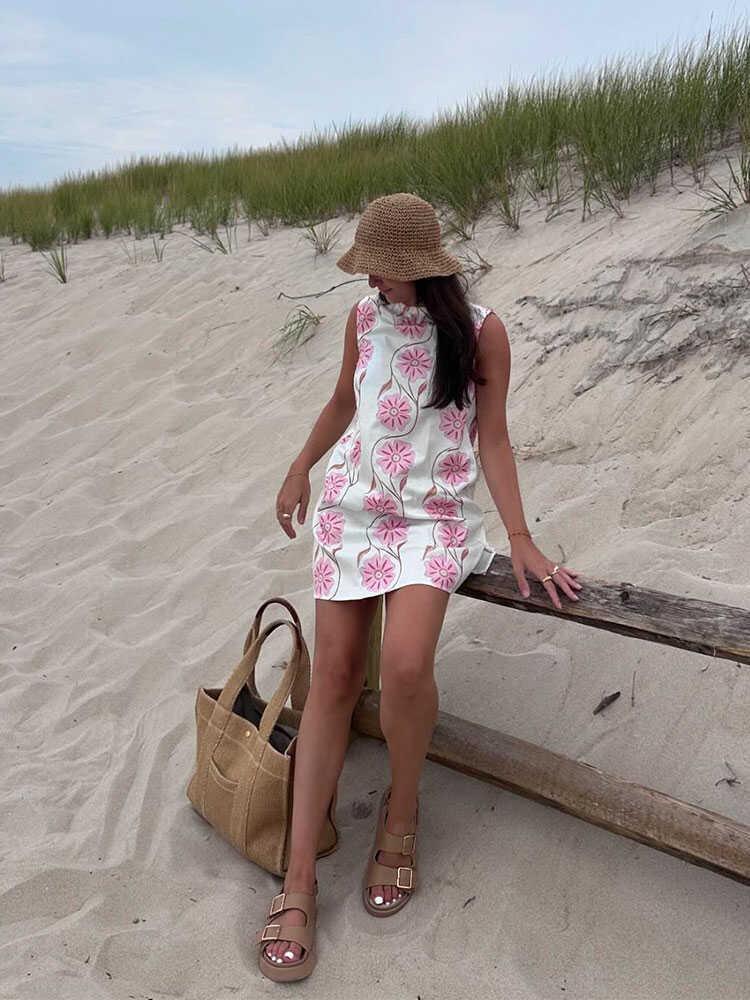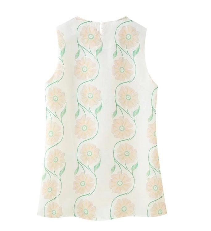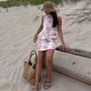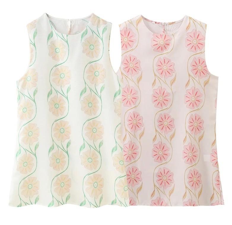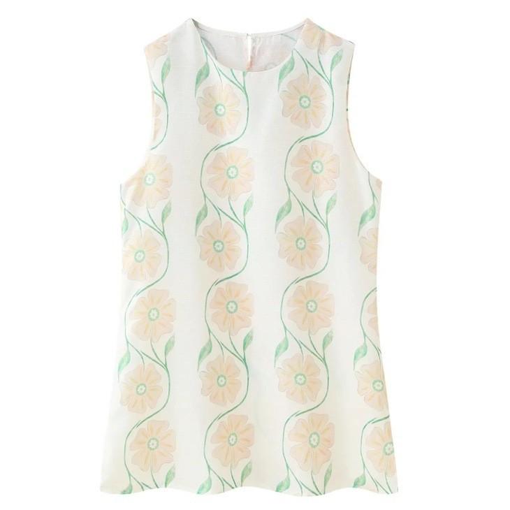 Estilo Europeo y Americano Moda Femenina Popular Transfronteriza 2 Colores 2 Estilo Dulce Versión A Vestido Estampado sin Mangas