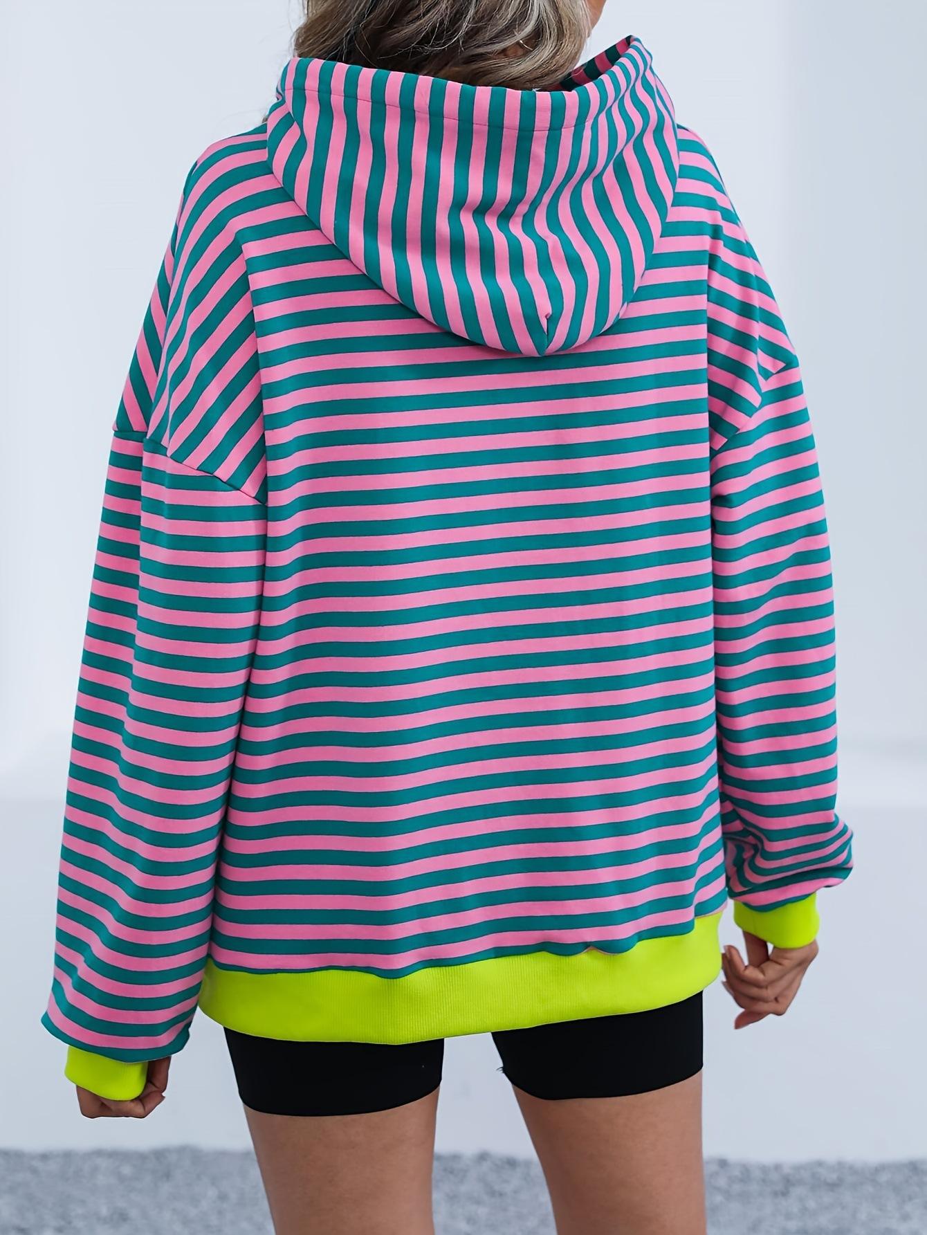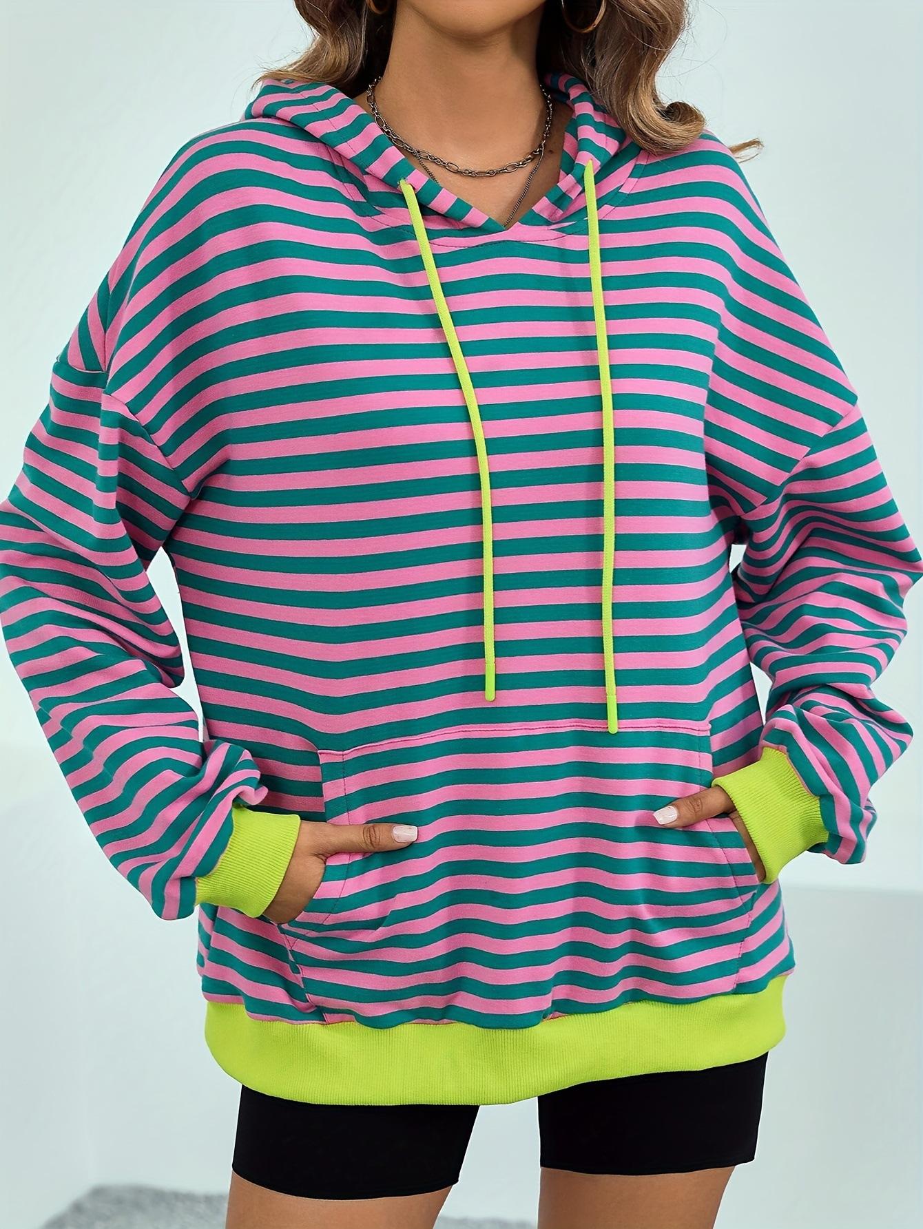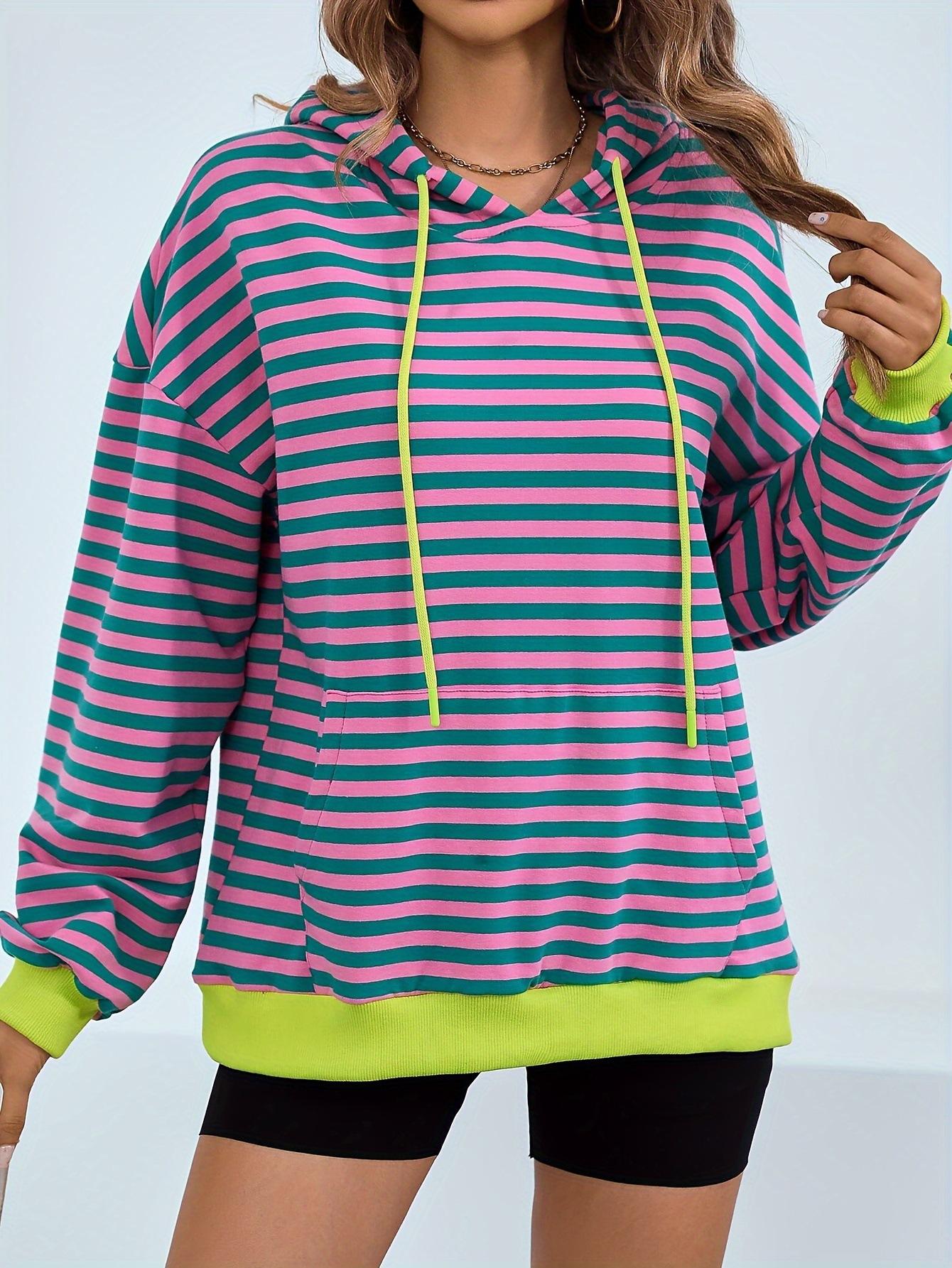 Europa y Estados Unidos transfronterizo Amazon para mujer 2024 otoño e invierno nuevo suéter holgado de manga larga con capucha a rayas en contraste de color