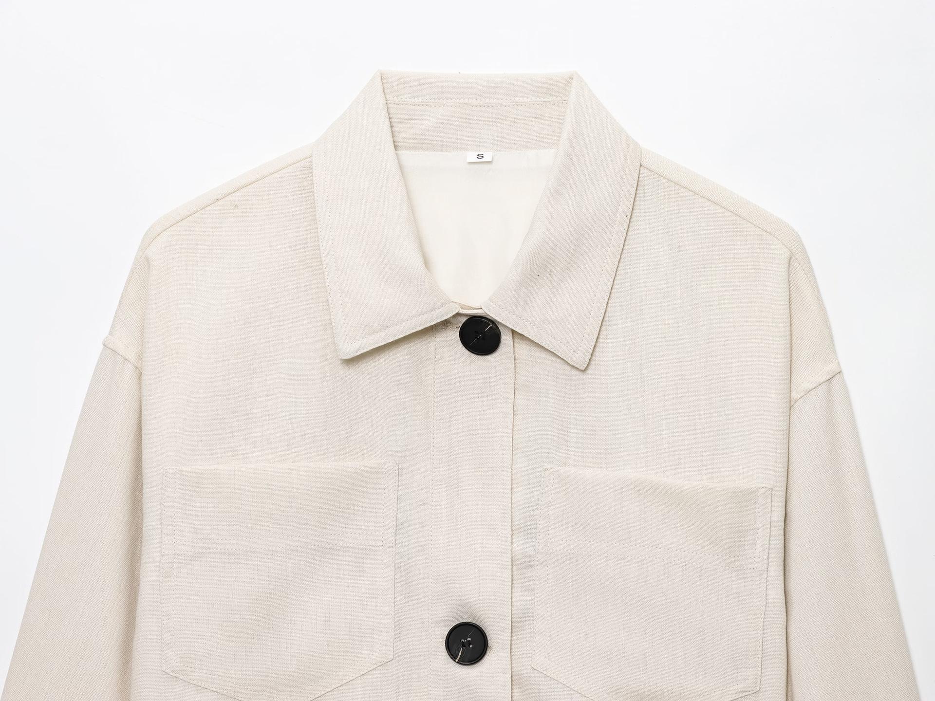 Ropa Europea y Americana Transfronteriza Chaqueta Popular de Aliexpress con Manga Patchwork de Mezcla de Lino