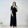 Venta al por mayor transfronteriza 2025 verano nuevo francés retro ajustado cuello en V manga corta ajustado vestido corto para la hora del té