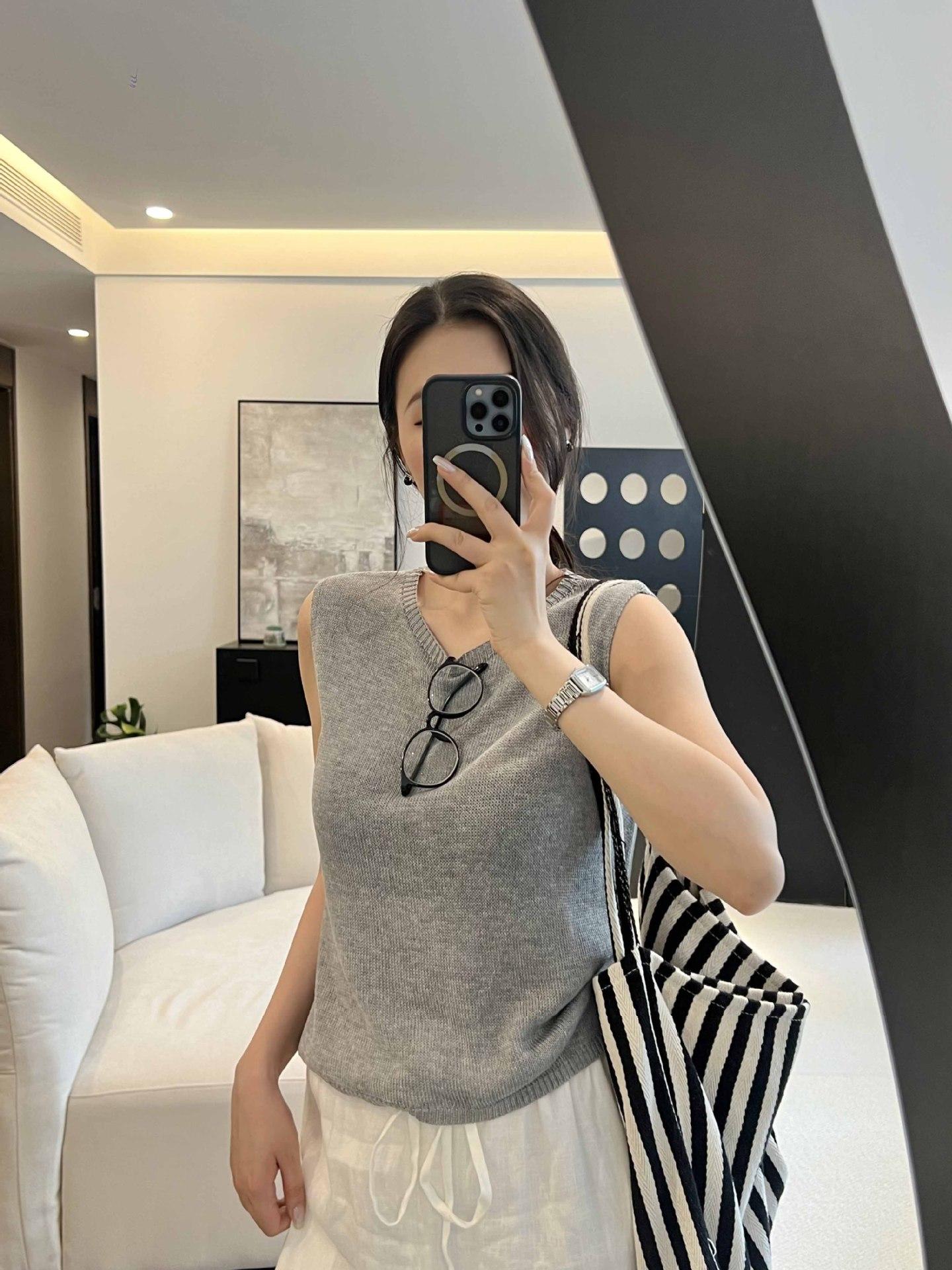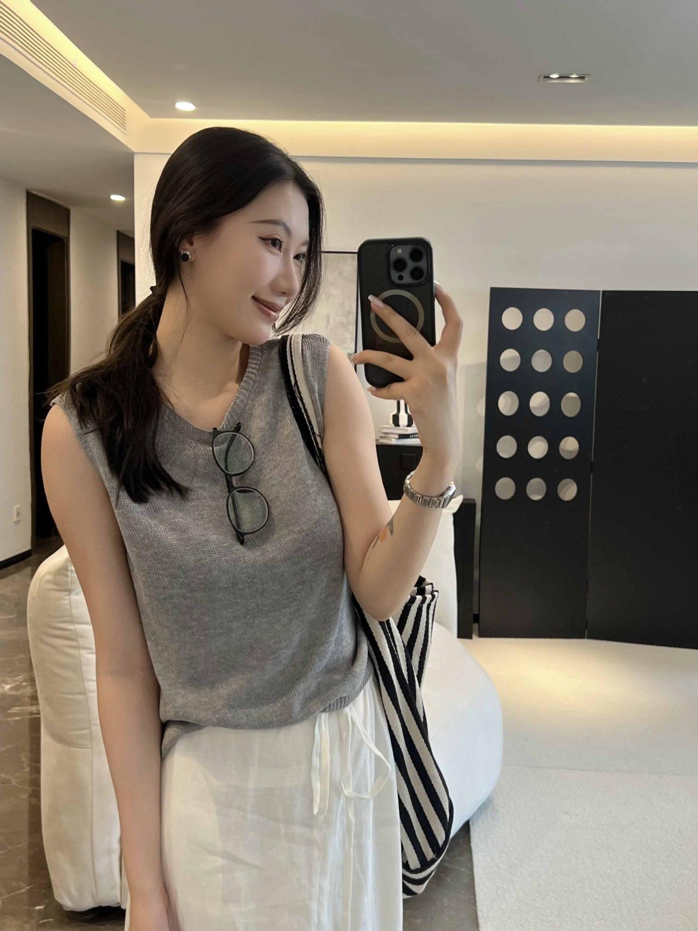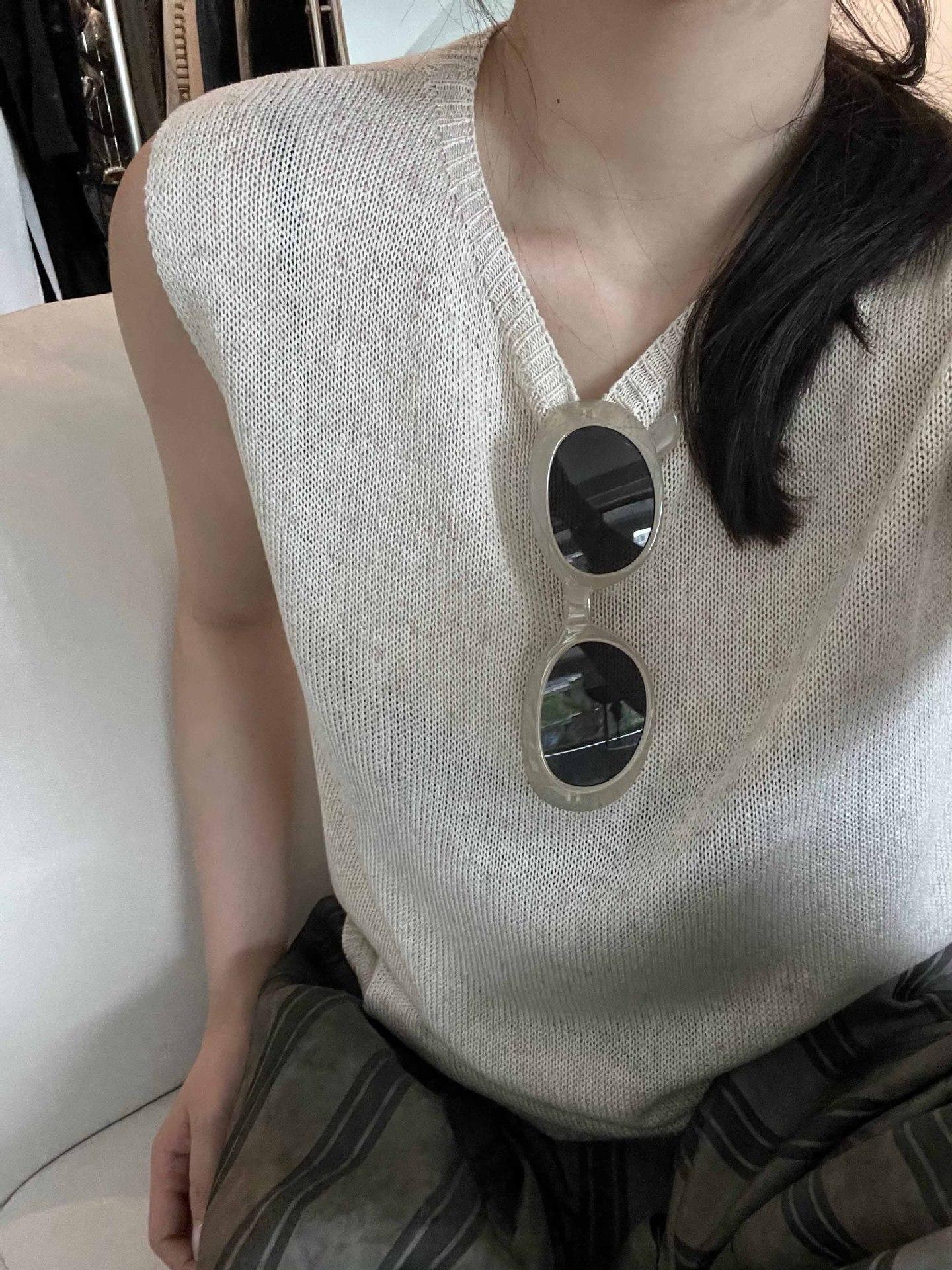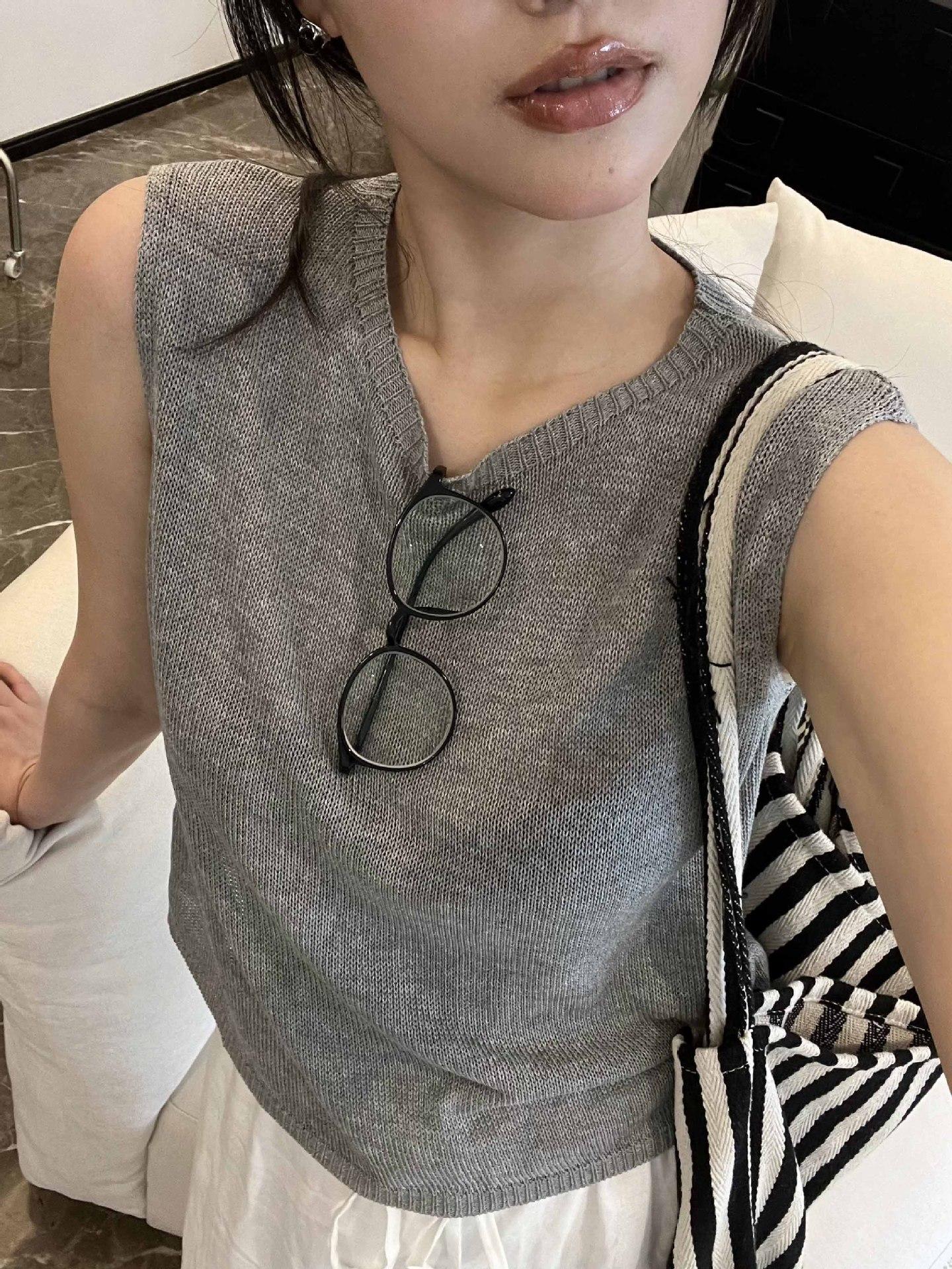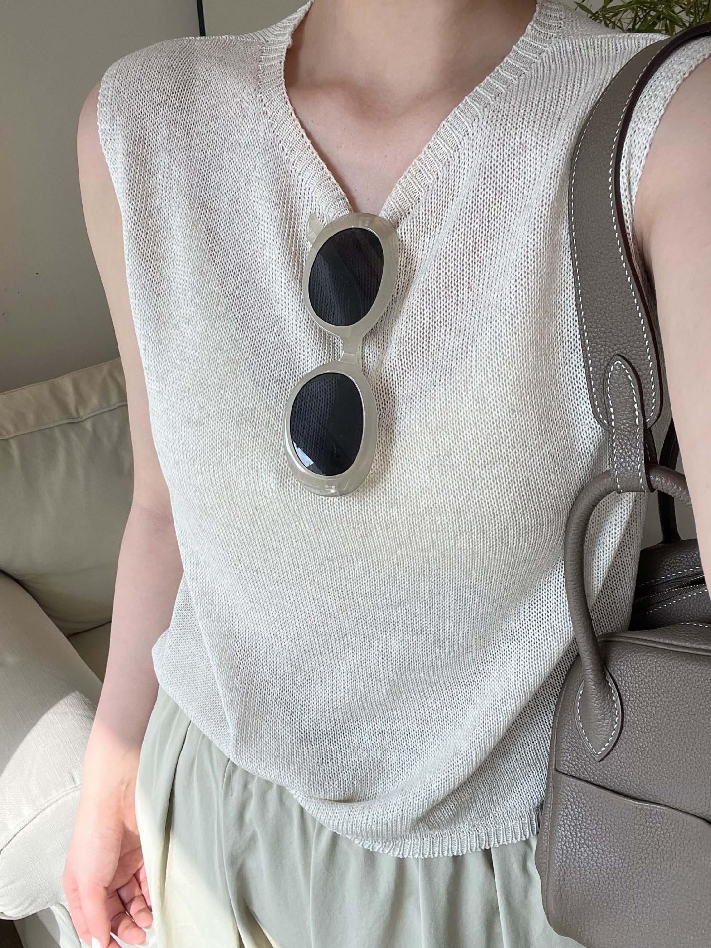 《Chaleco de Punto de Lino de Algodón de Temperamento Simple》
