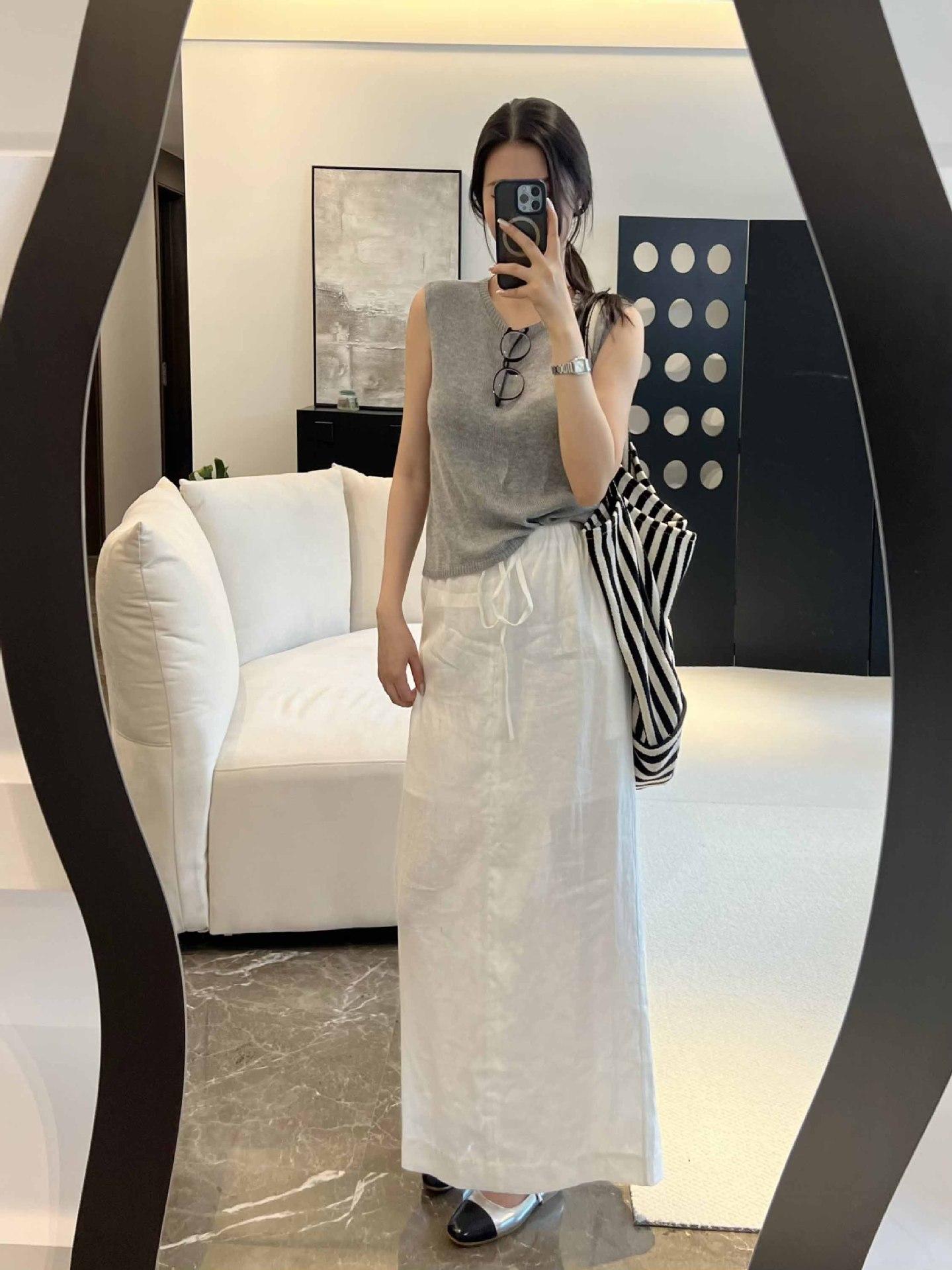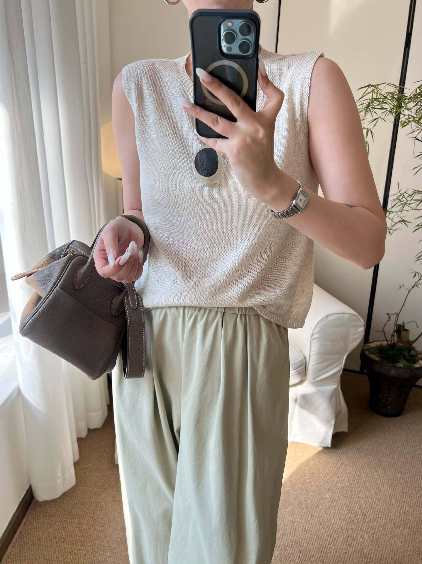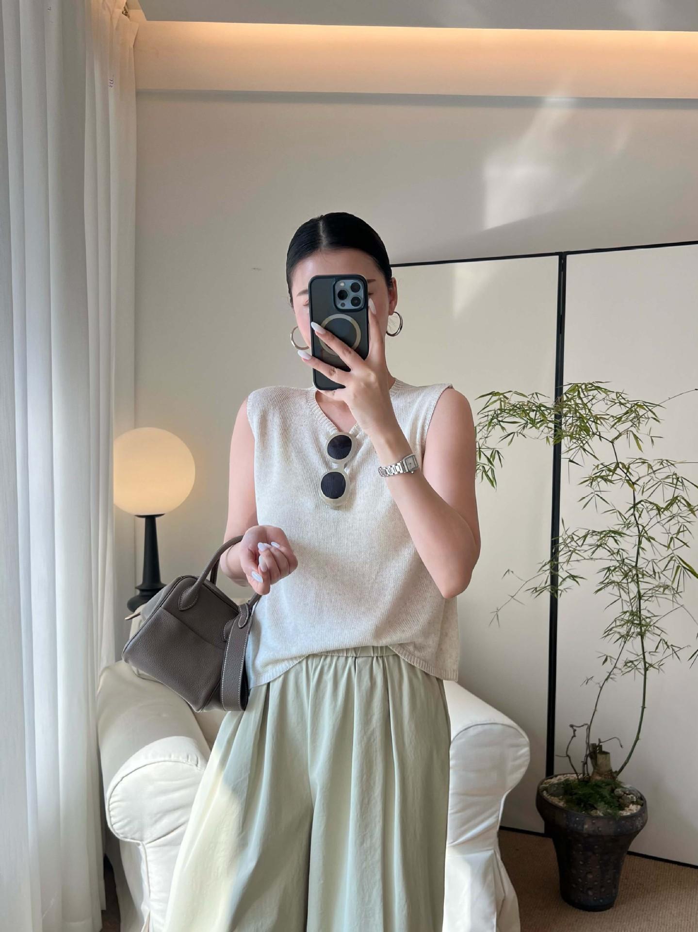 Un chaleco de algodón y lino muy minimalista, añade puntos a cualquier parte inferior y puede ser tanto salado como dulce.