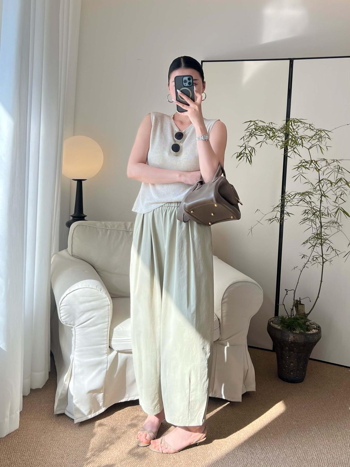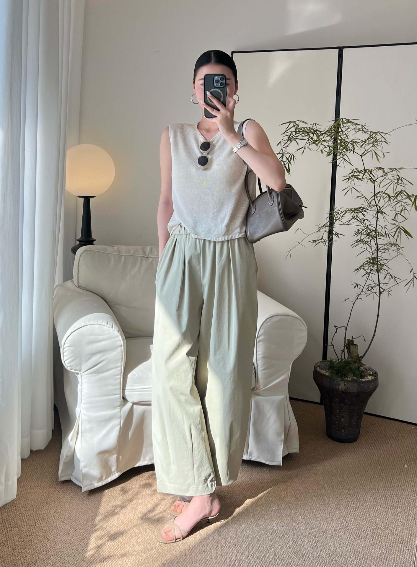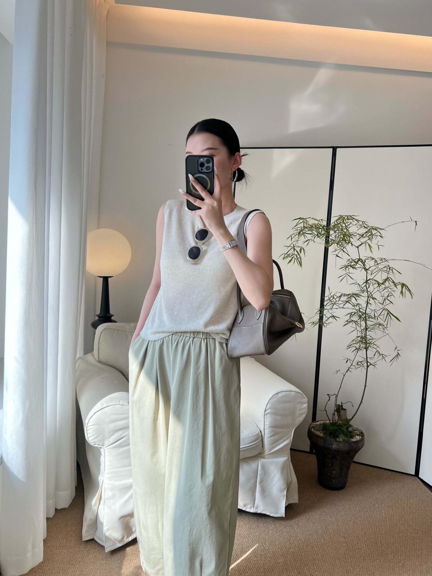 Un chaleco de algodón y lino muy minimalista, añade puntos a cualquier parte inferior y puede ser tanto salado como dulce.