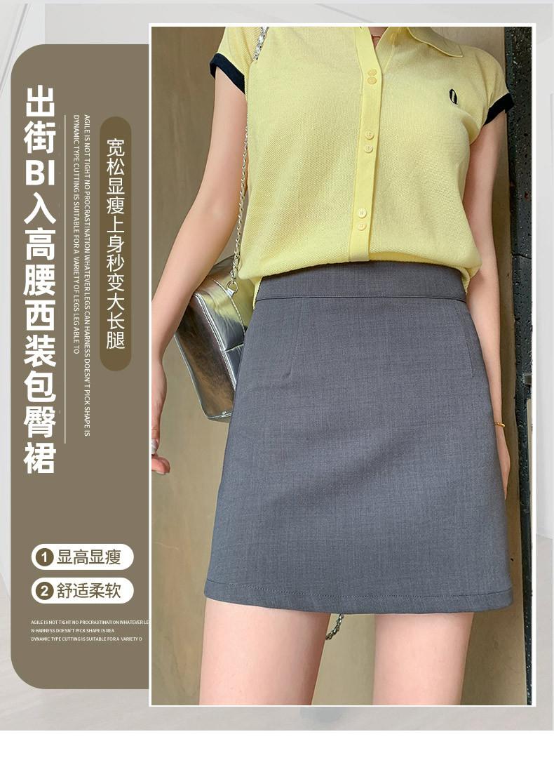 Traje Gris Falda de Cadera Mujer 2025 Primavera Nuevo Verano Cintura Alta Adelgazante Ajustada Falda Línea A de Gama Alta