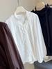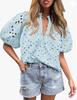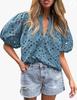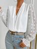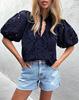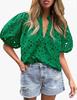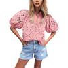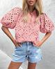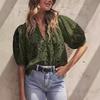 2025 Top de Verano para Mujer Transfronterizo Moda Casual Manga Linterna Cuello en V Botones Calado Encaje Bordado Camisa