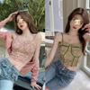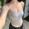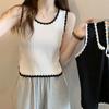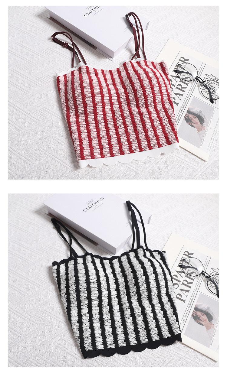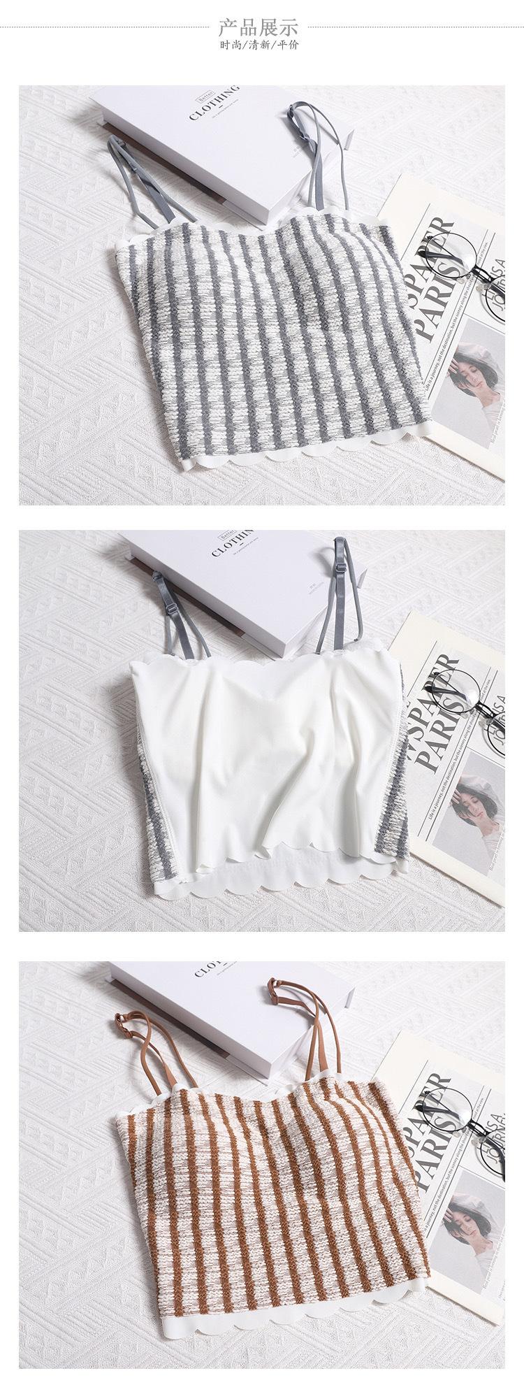 Camisola Dulce a Rayas para Mujer con Almohadilla para el Pecho Base Interior Verano Nuevo Ajustado Adelgazante Combinable Top Corto