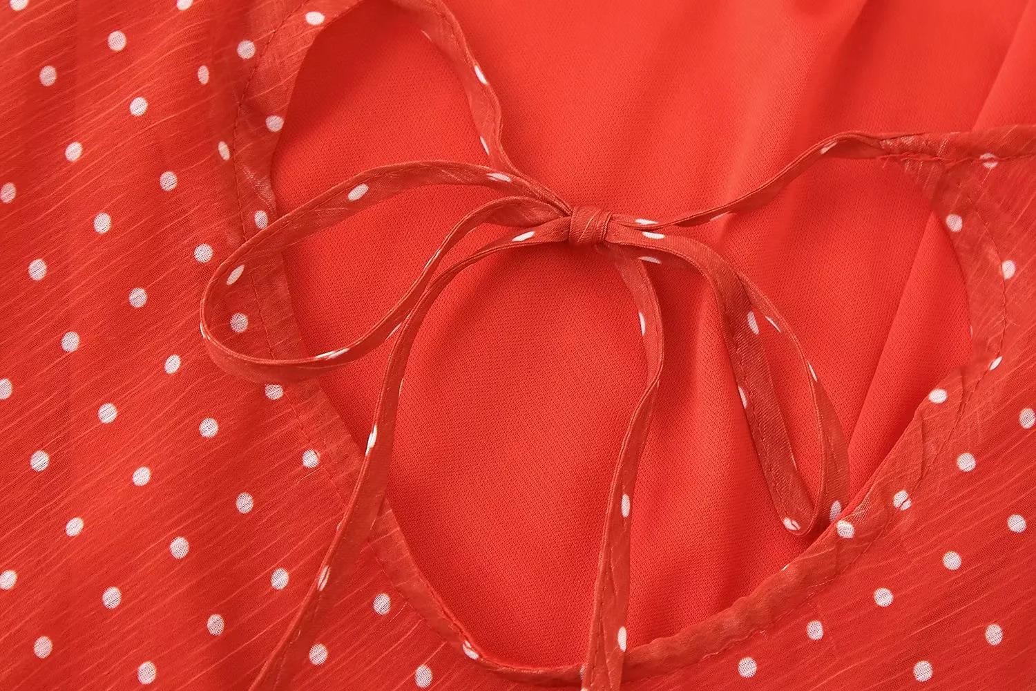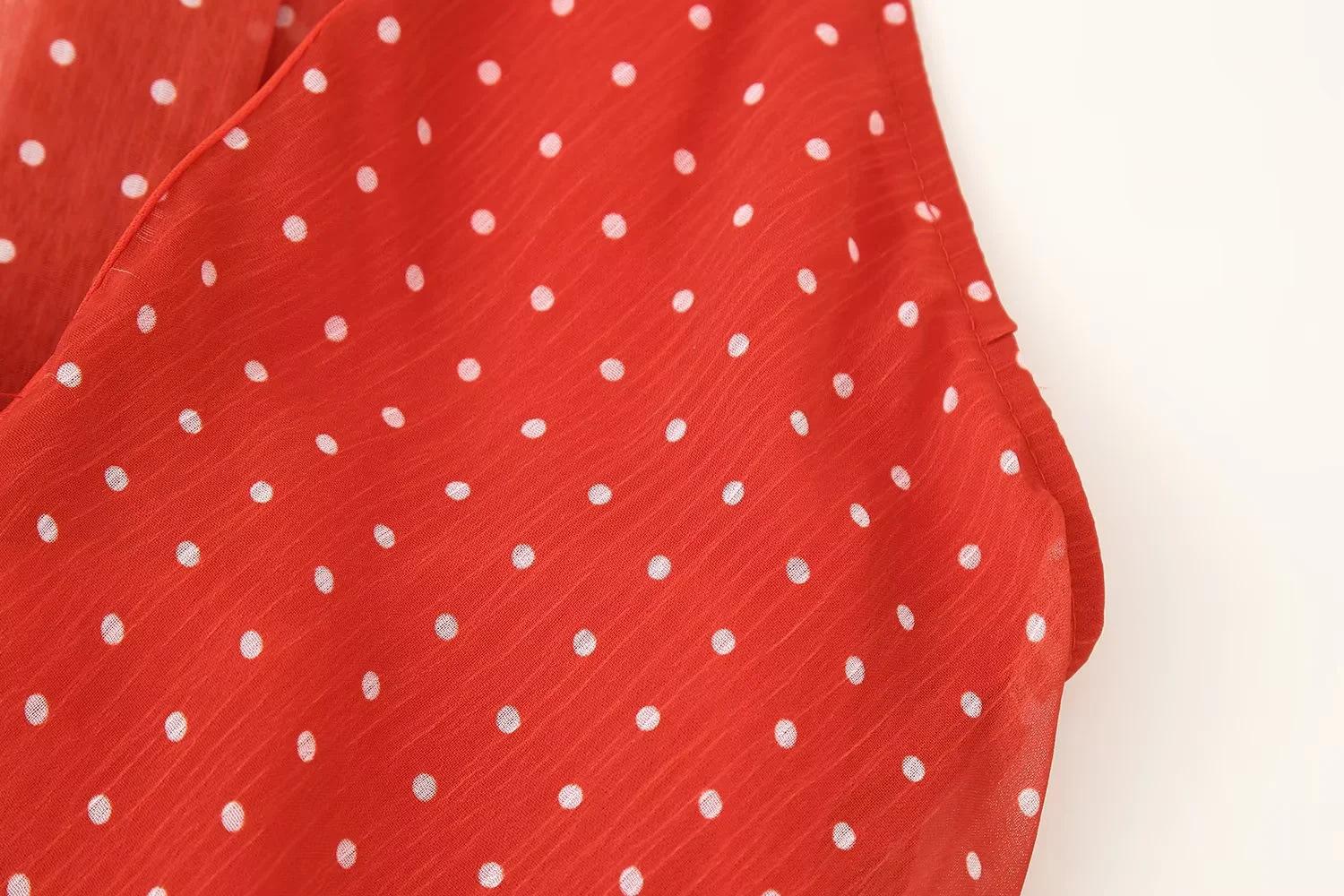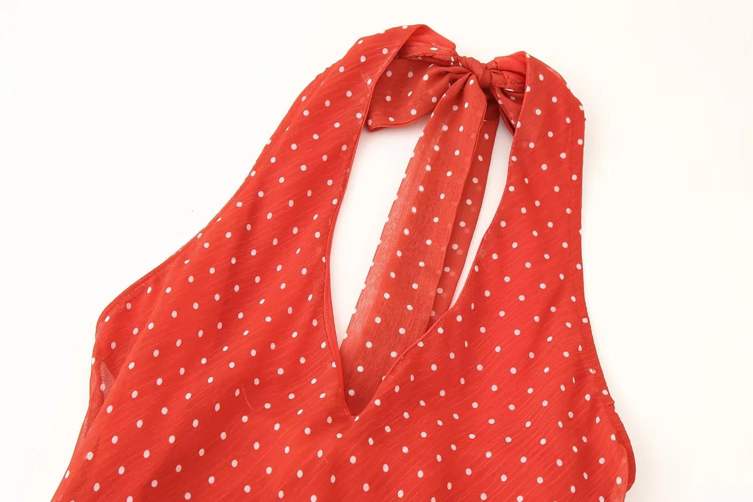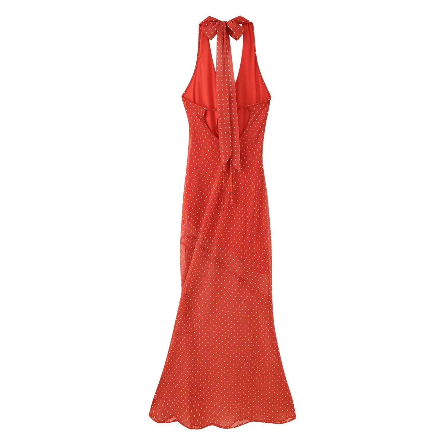 Estilo Europeo y Americano Moda Femenina Trendy Versátil Cuello V Halter Lazo Lunares Vestido Vacacional
