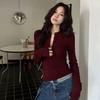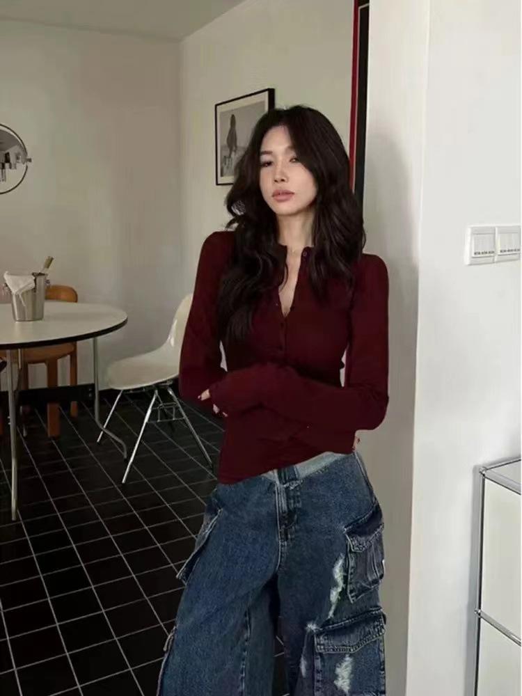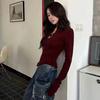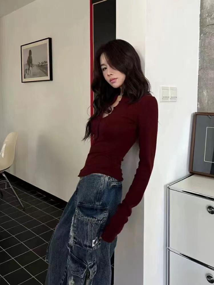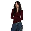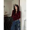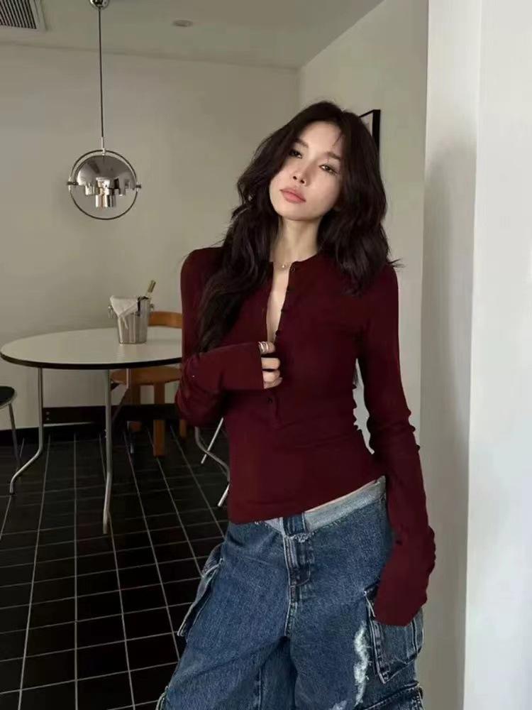 Camiseta de Manga Larga con Hombro Adelgazante Ajustada Estilo Americano para Chica Hot para Otoño e Invierno, Camiseta Básica con Diseño de Cintura Ceñida, Top Nicho con Sentido del Diseño, Ins