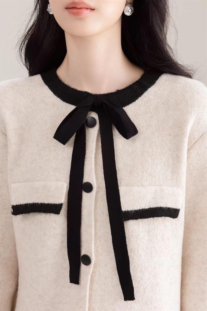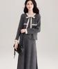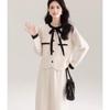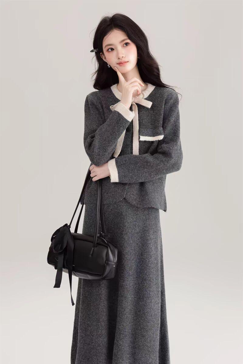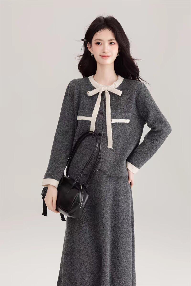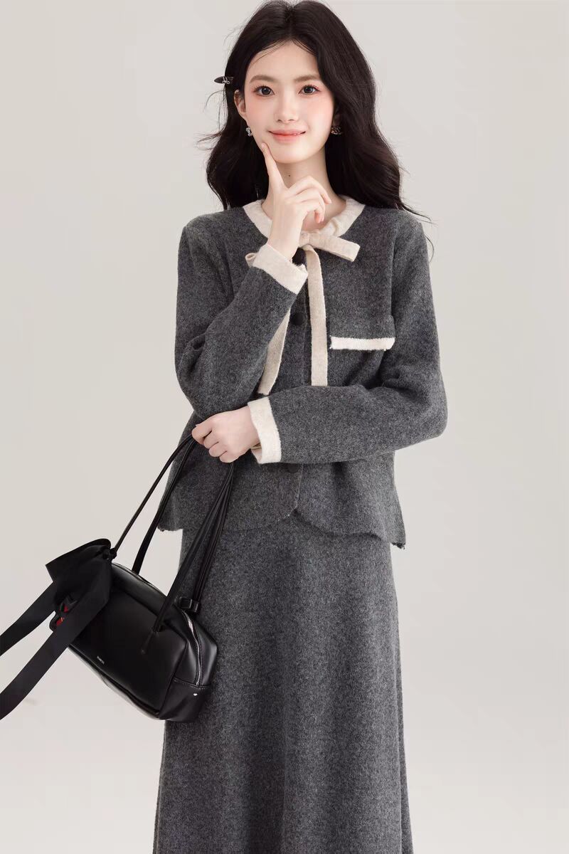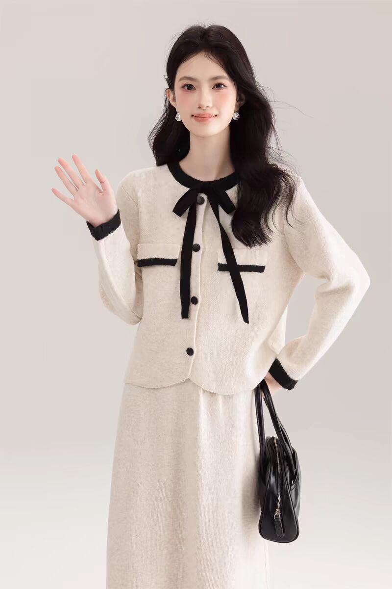 Traje Cárdigan de Punto Suave Estilo Francés para Mujer Nuevo de Principios de Primavera Falda de Cintura Alta Conjunto de Dos Piezas