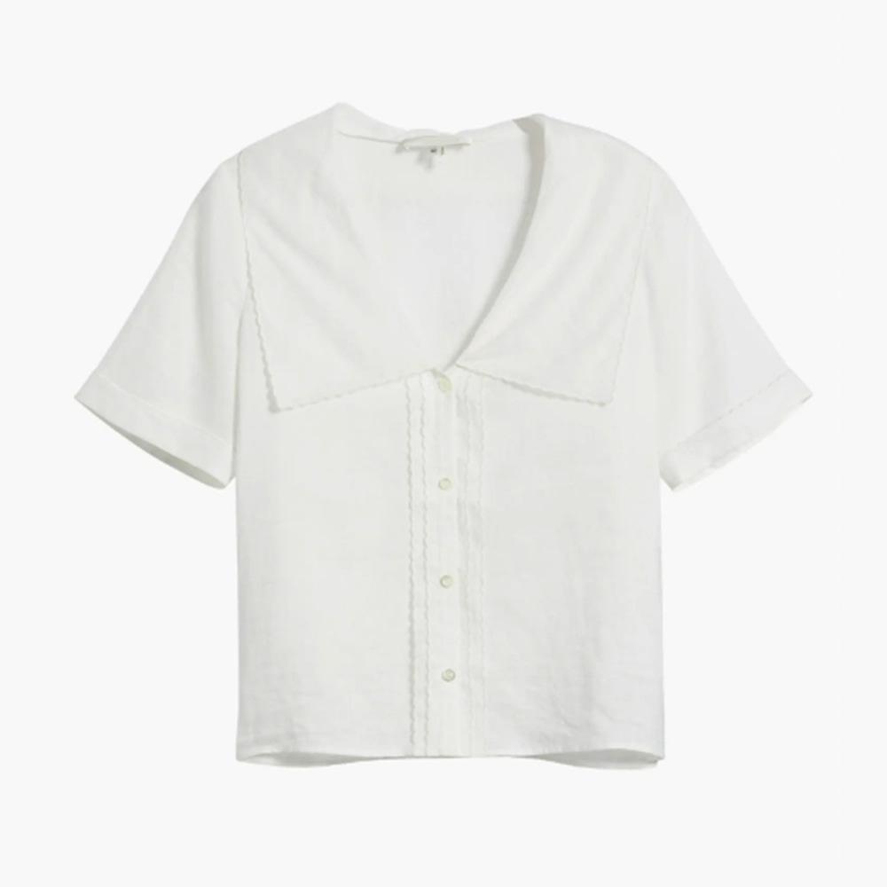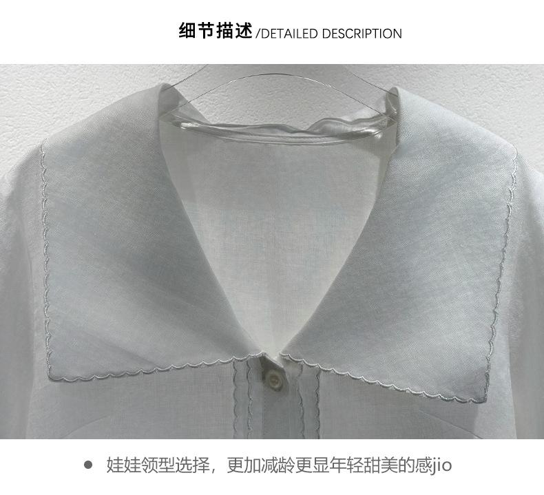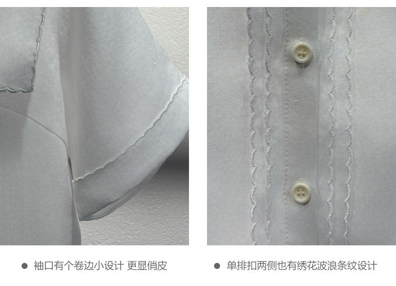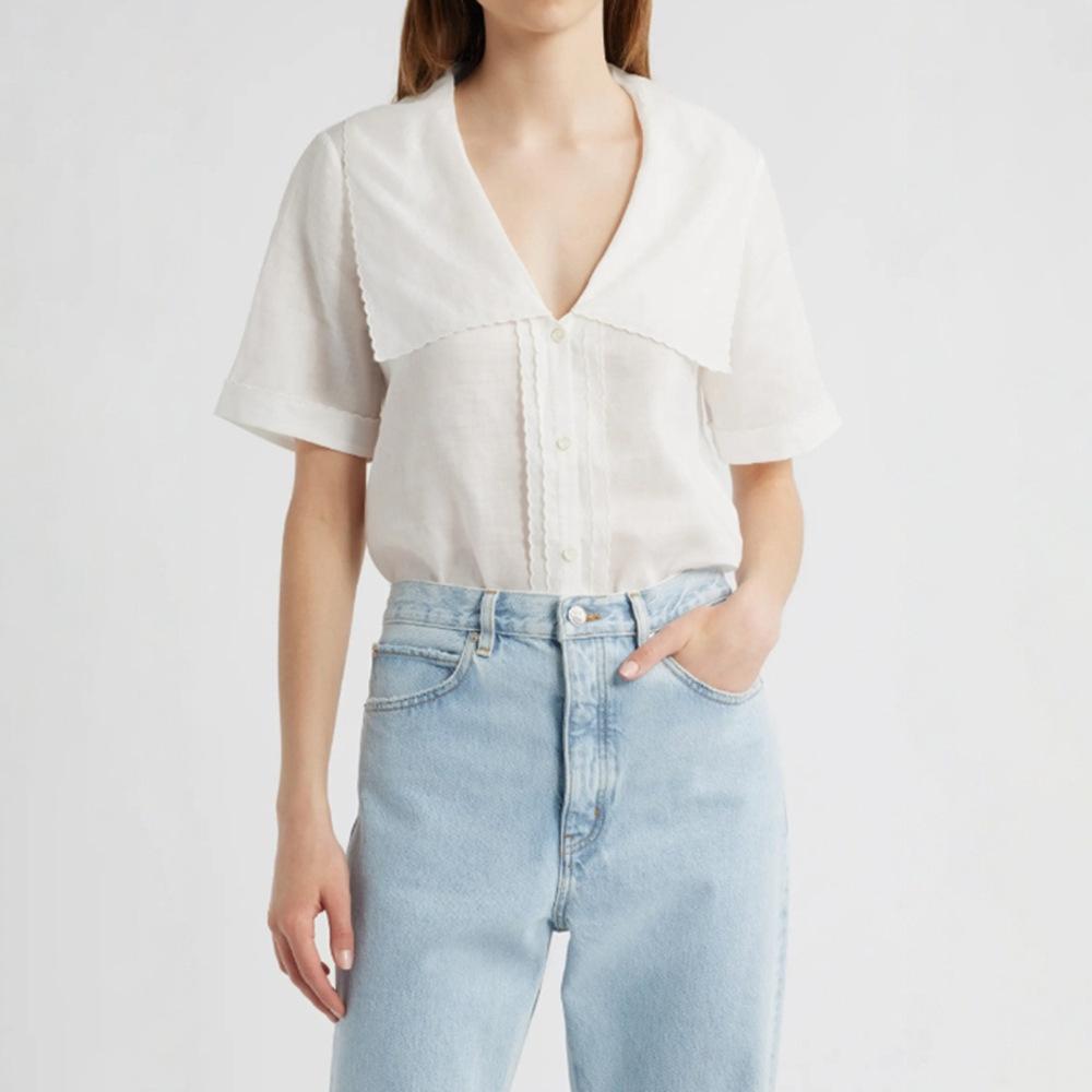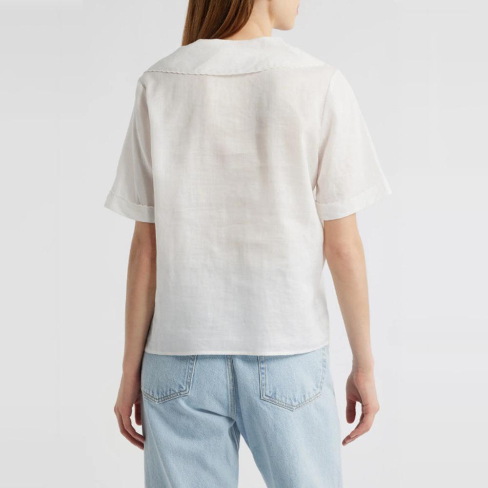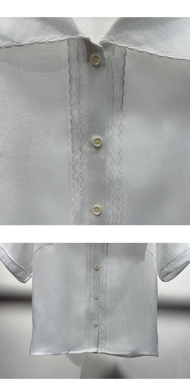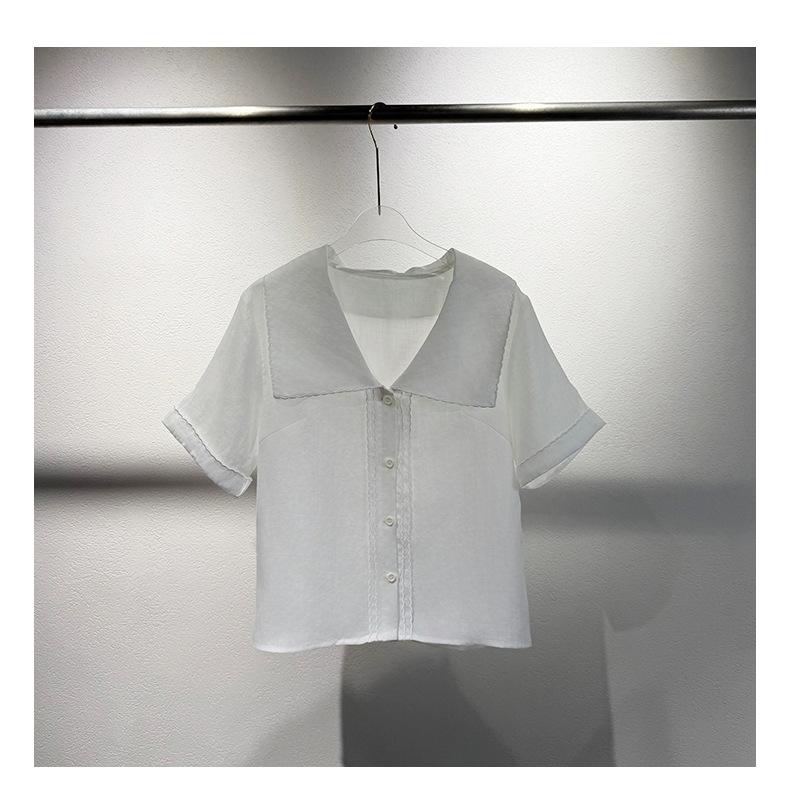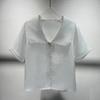 2025 Nuevo Estilo de Verano Blanco Solapa Grande Abotonada Camisa de Manga Corta Top Casual Suelto y Versátil para Mujer