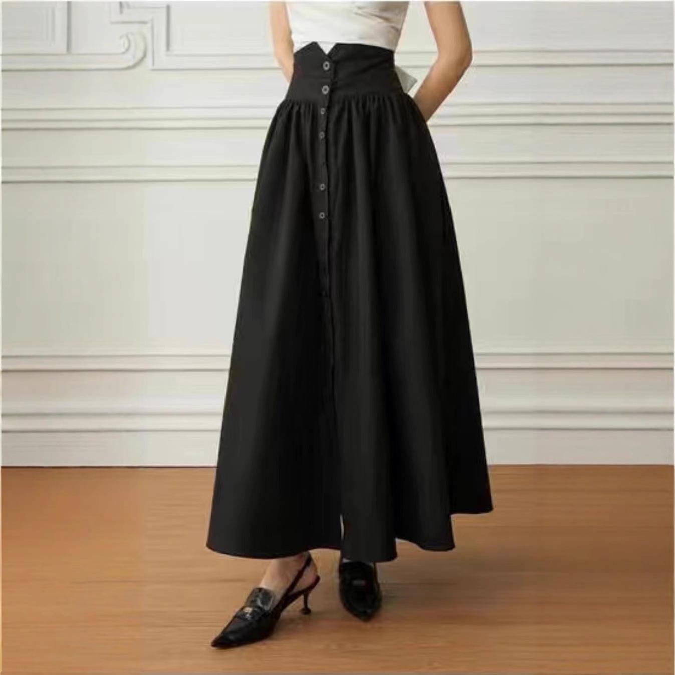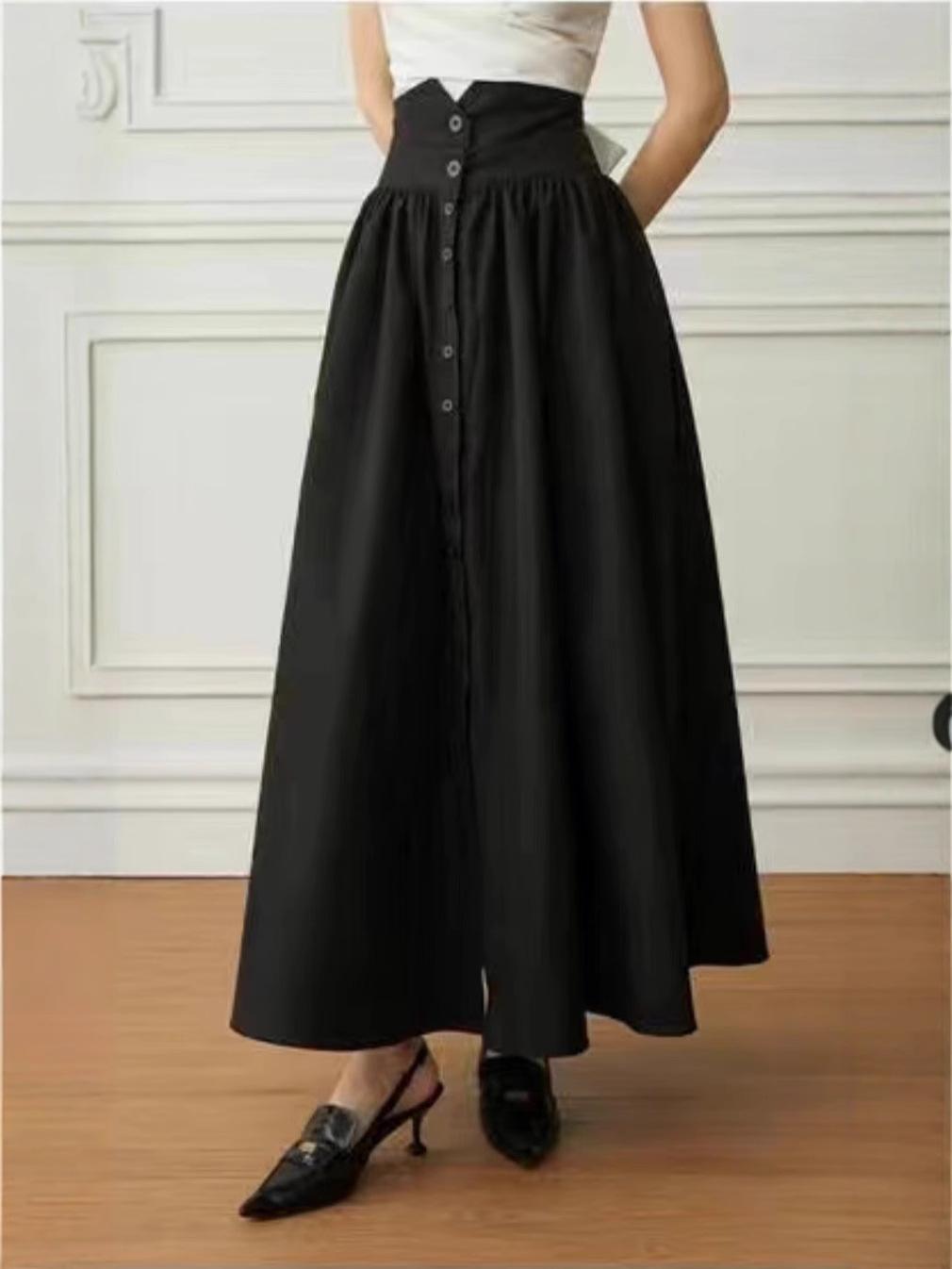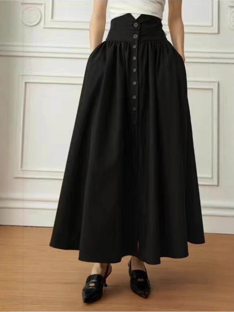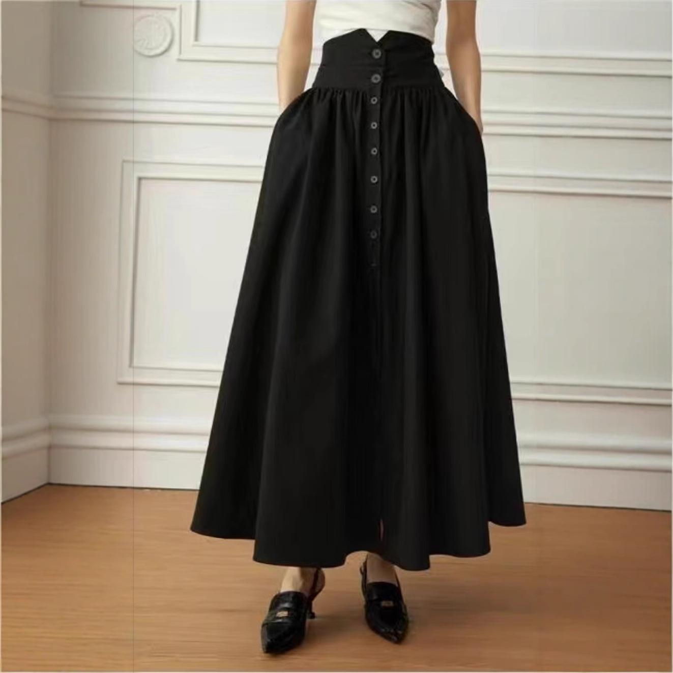 Falda Europea y Americana de Algodón Estilo Hepburn Cintura Alta 2025 Nueva Falda Negra para Mujer