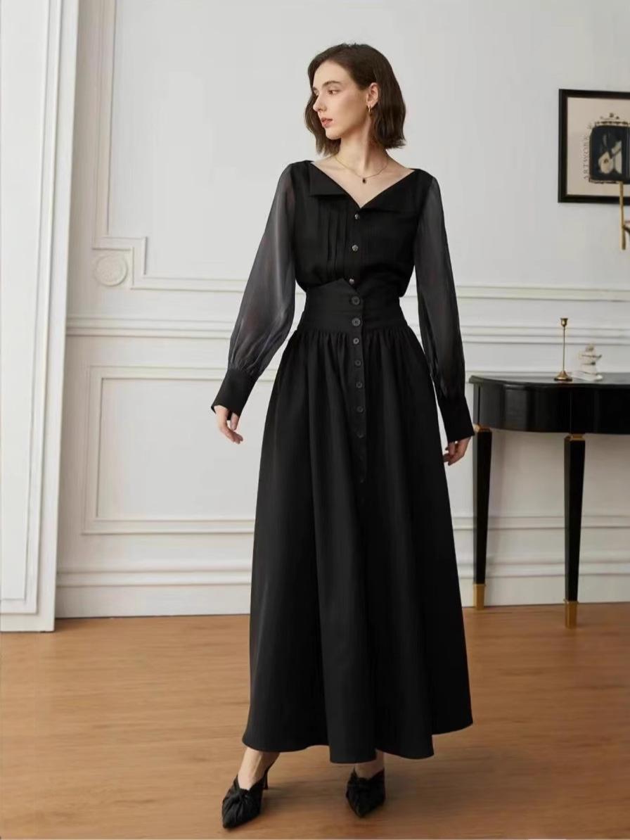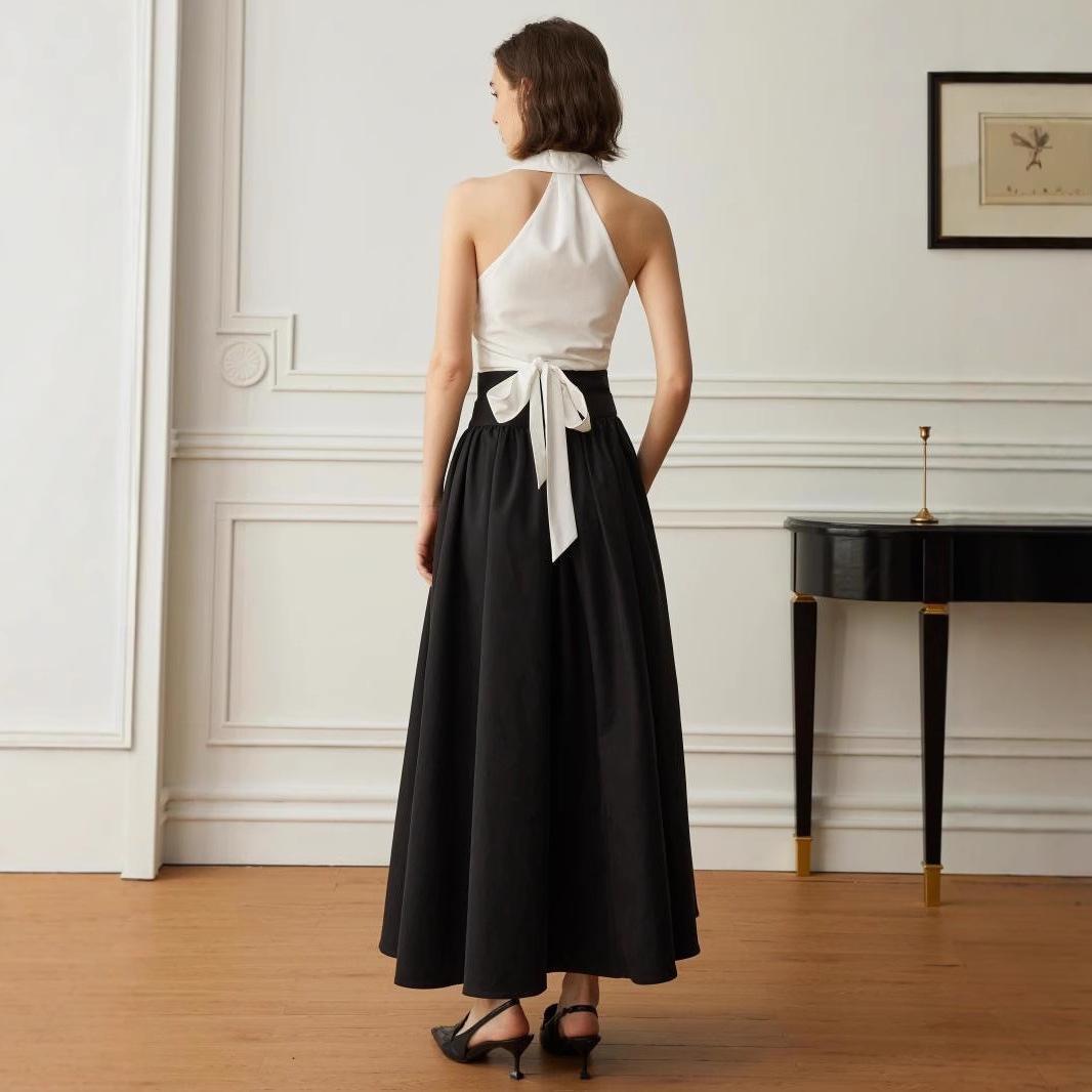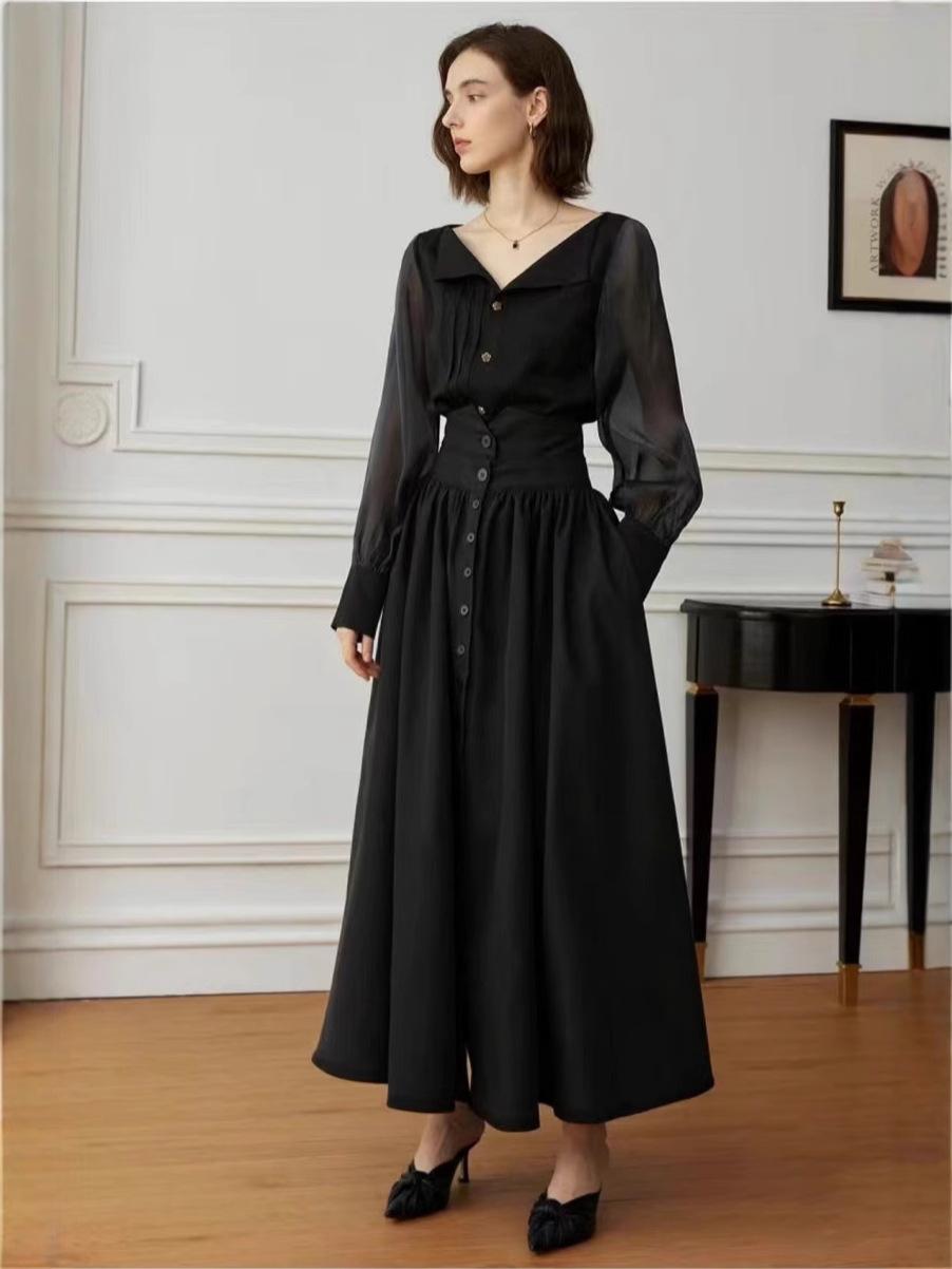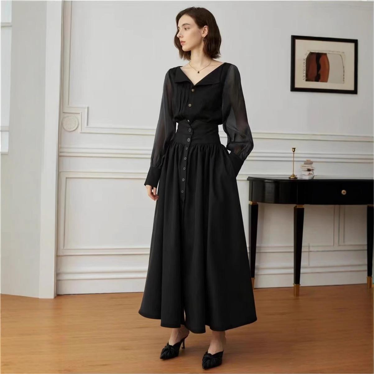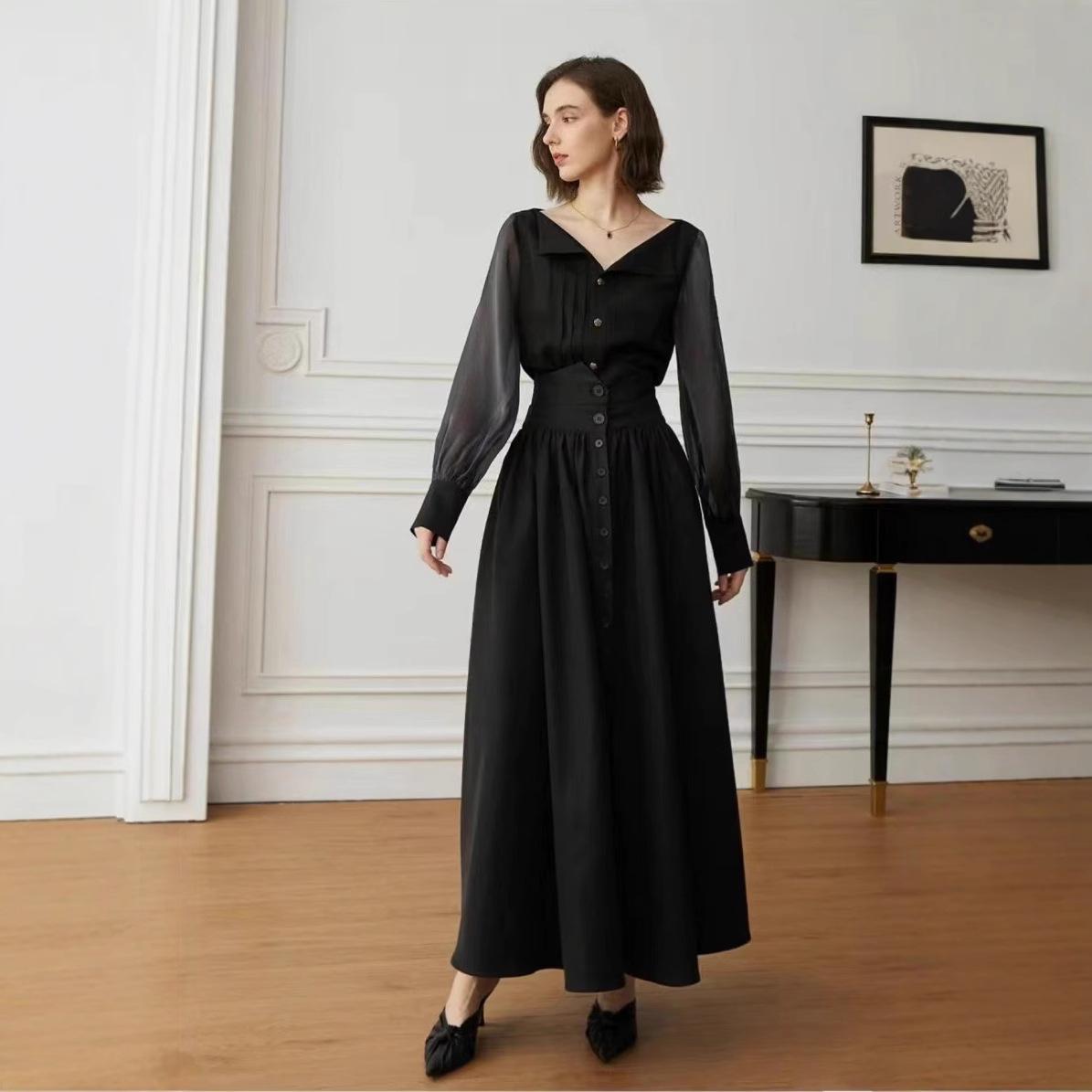 Falda Europea y Americana de Algodón Estilo Hepburn Cintura Alta 2025 Nueva Falda Negra para Mujer