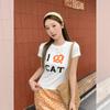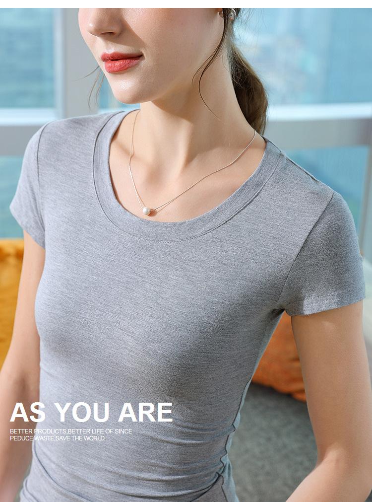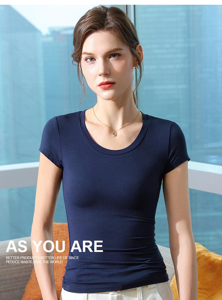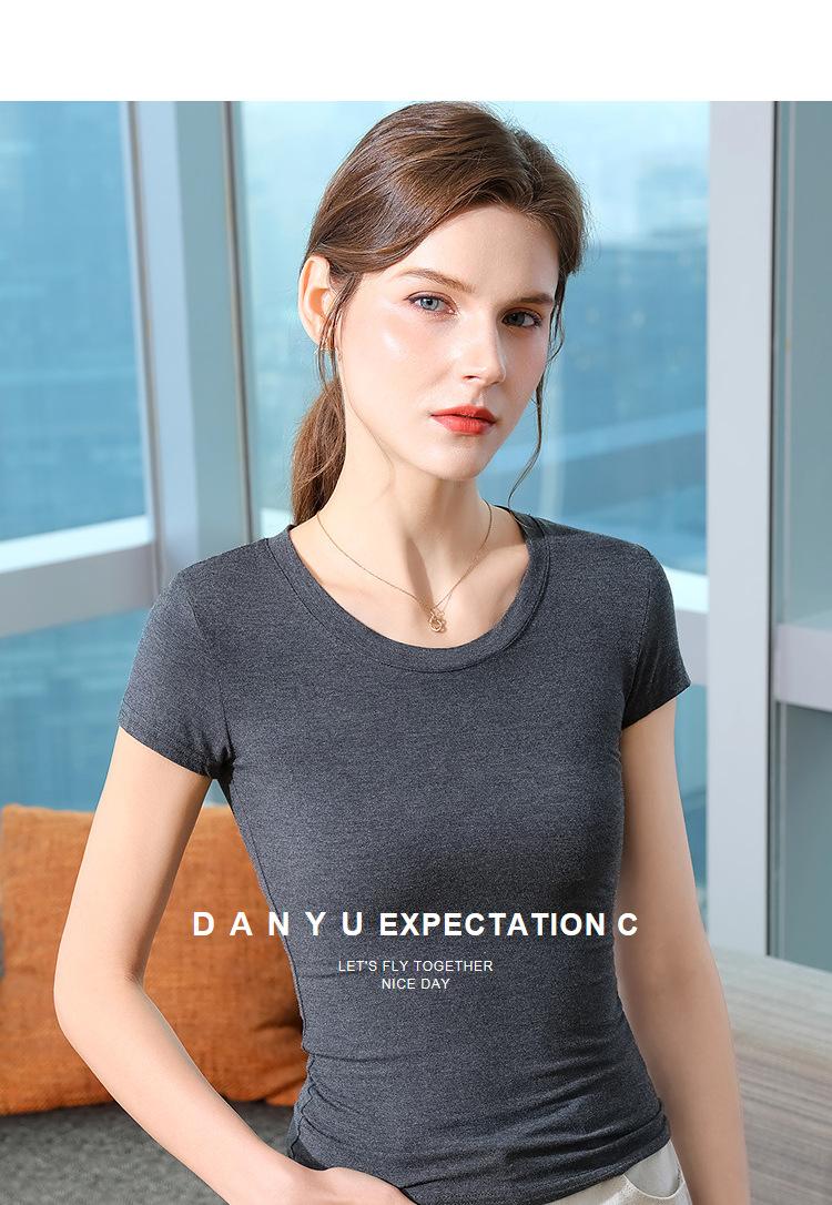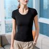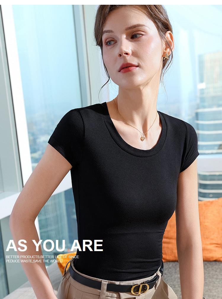 Playera de Manga Corta para Mujer Estilo Nuevo 2025 Hombro Derecho Cuello Redondo Pequeño Playera Americana Top Elegante de Cintura Elástica