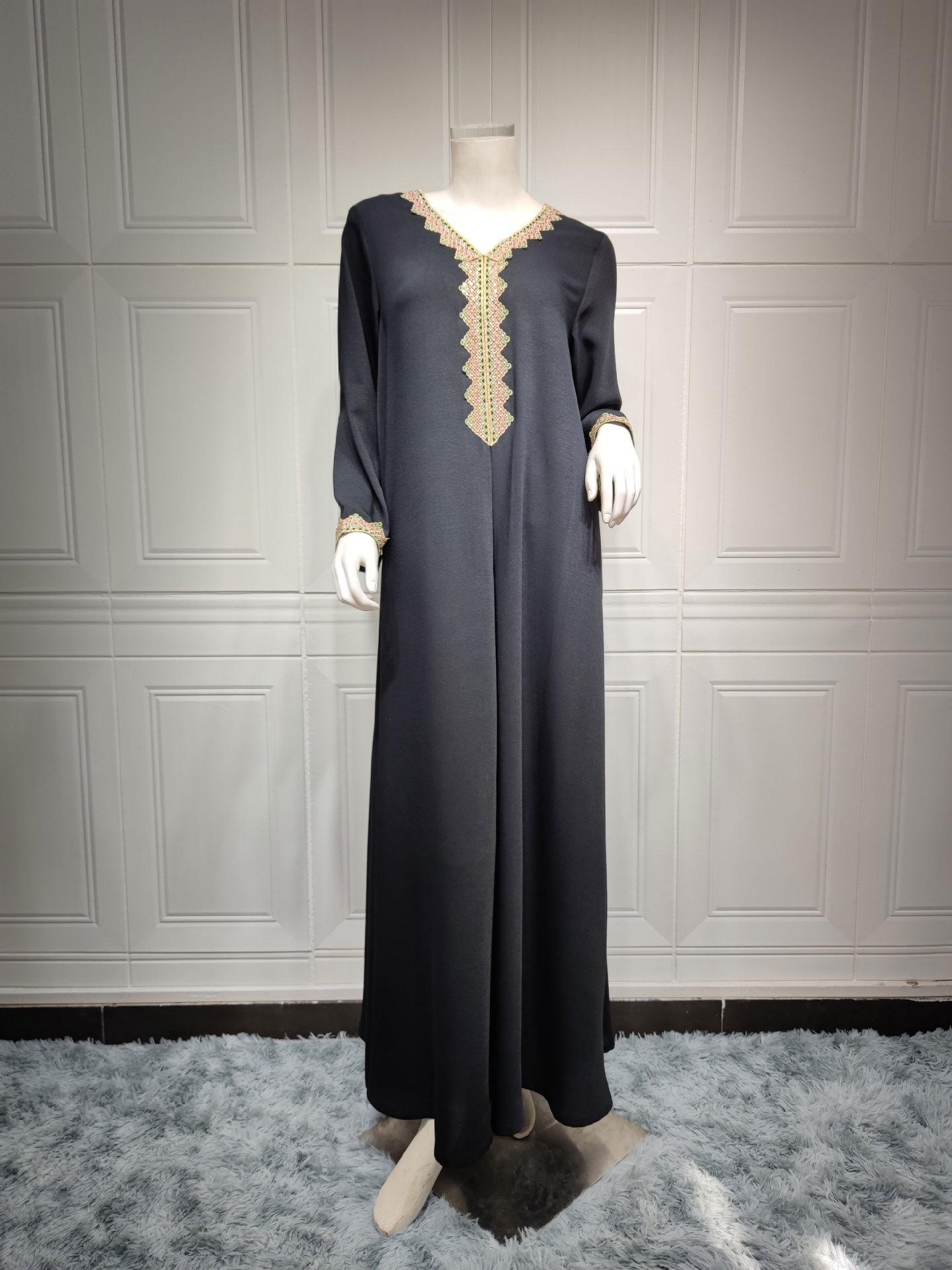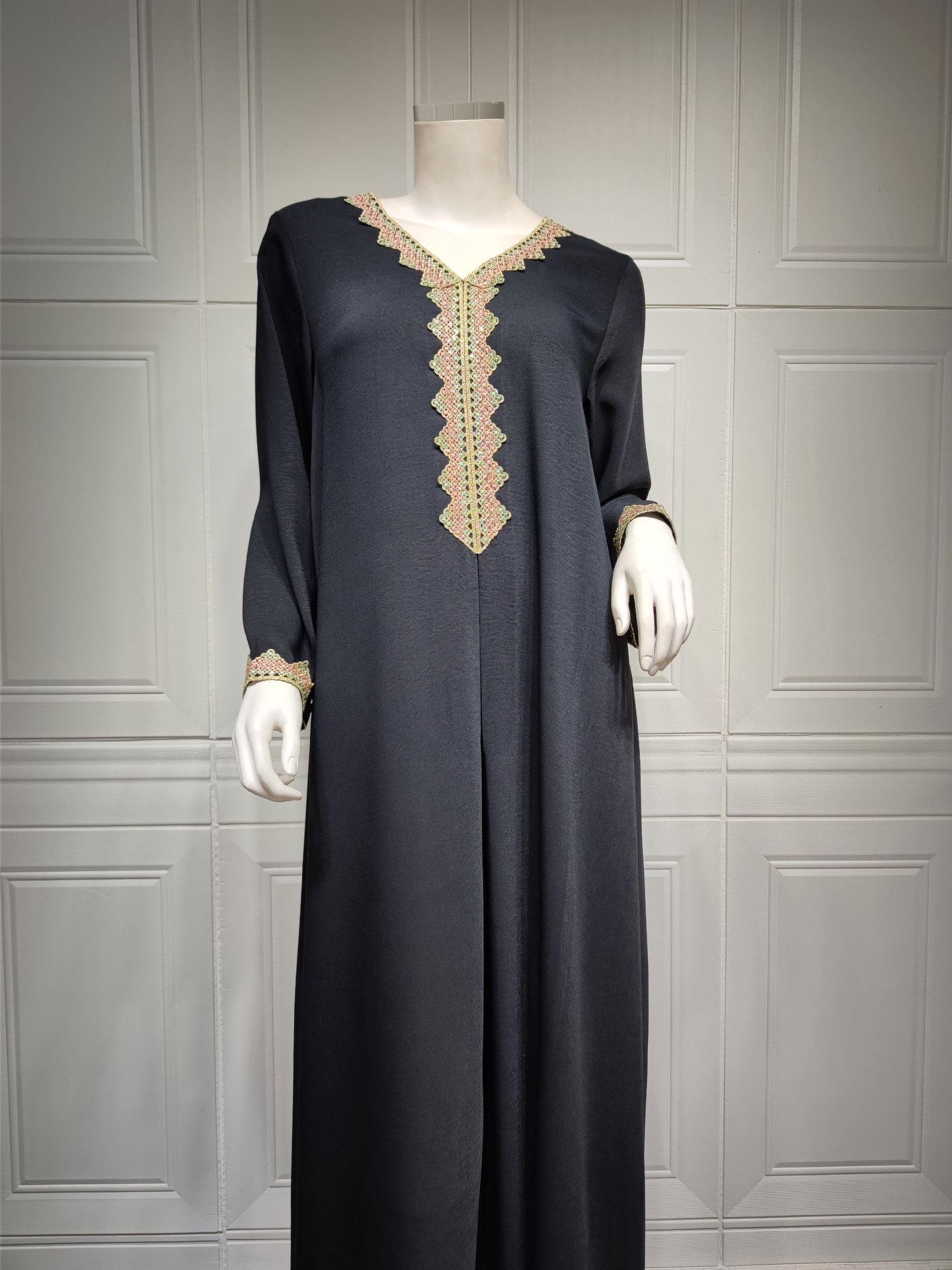 Moda musulmana de Oriente Medio de Primavera y Otoño 2025 Encaje Estilo Étnico Europeo y Americano Vestido de Amplio Vuelo para Mujer del Sudeste Asiático