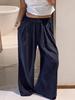 Pantalones de Pierna Ancha a Rayas con Bloque de Color de Moda Commuting Europea y Americana para Mujer Otoño 2025 Pantalones Casuales Holgados Diseño de Cintura Alta Pantalones de Mujer