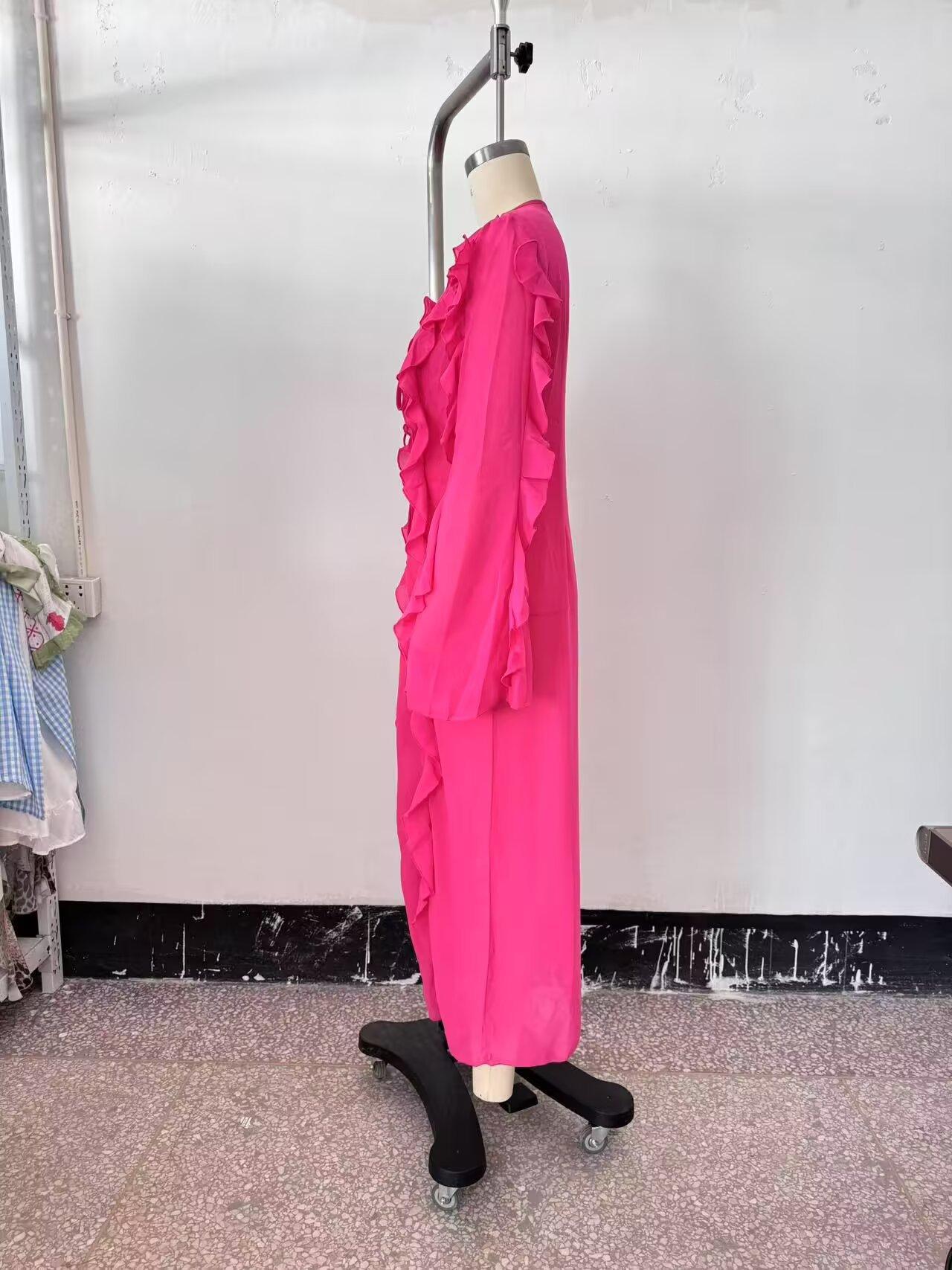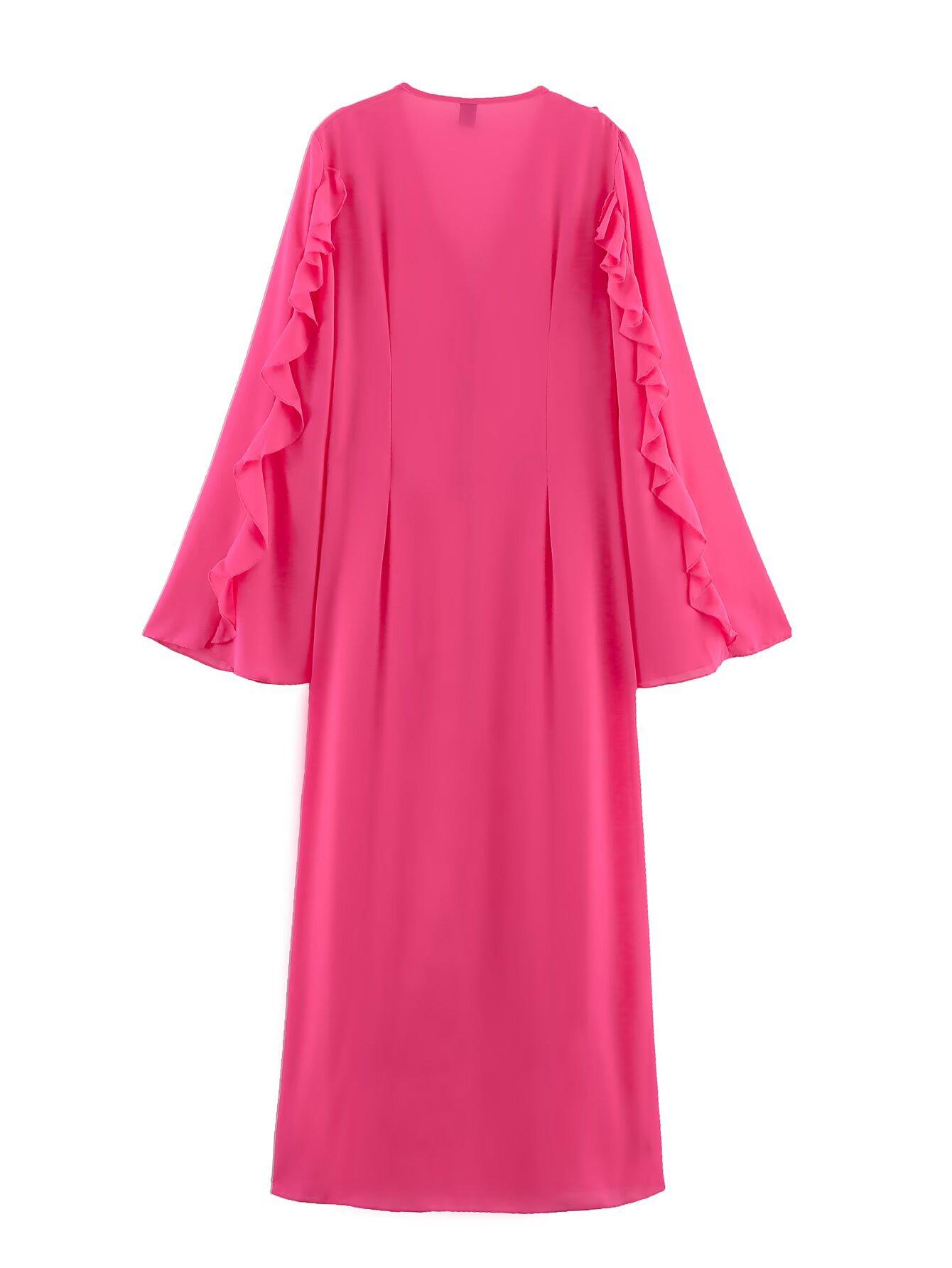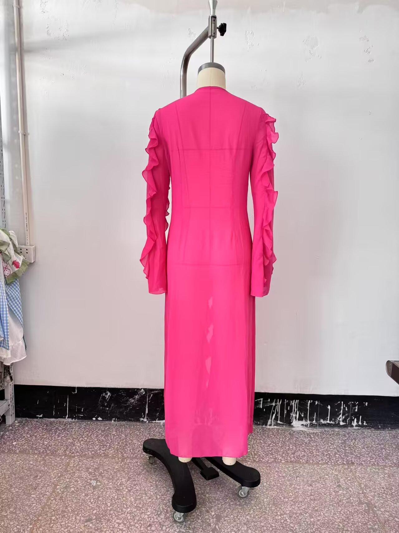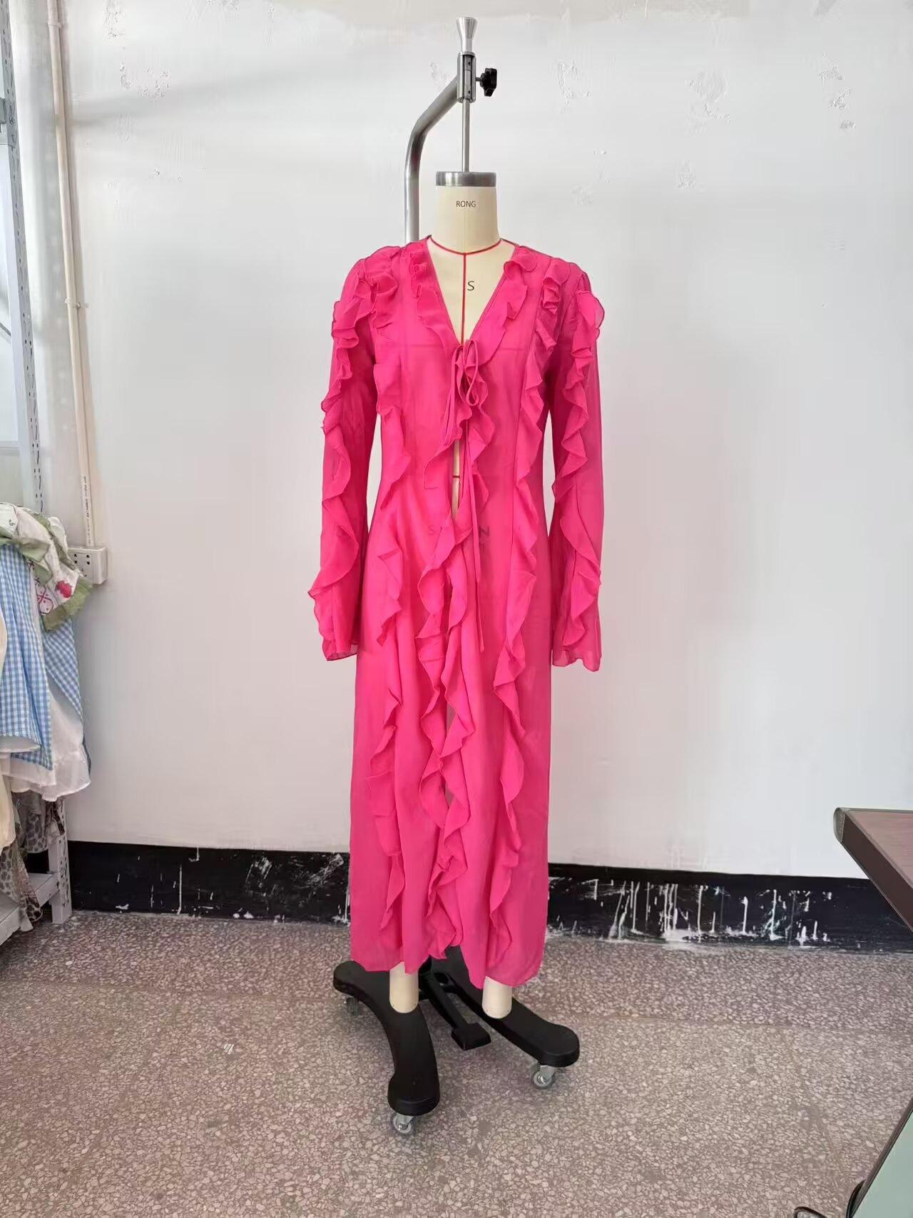 Ropa de Mujer de Exportación Transfronteriza 2025 Verano Estilo Europeo y Americano Cuello Redondo Manga Larga Volantes Multicapa Vestido Holgado C45309