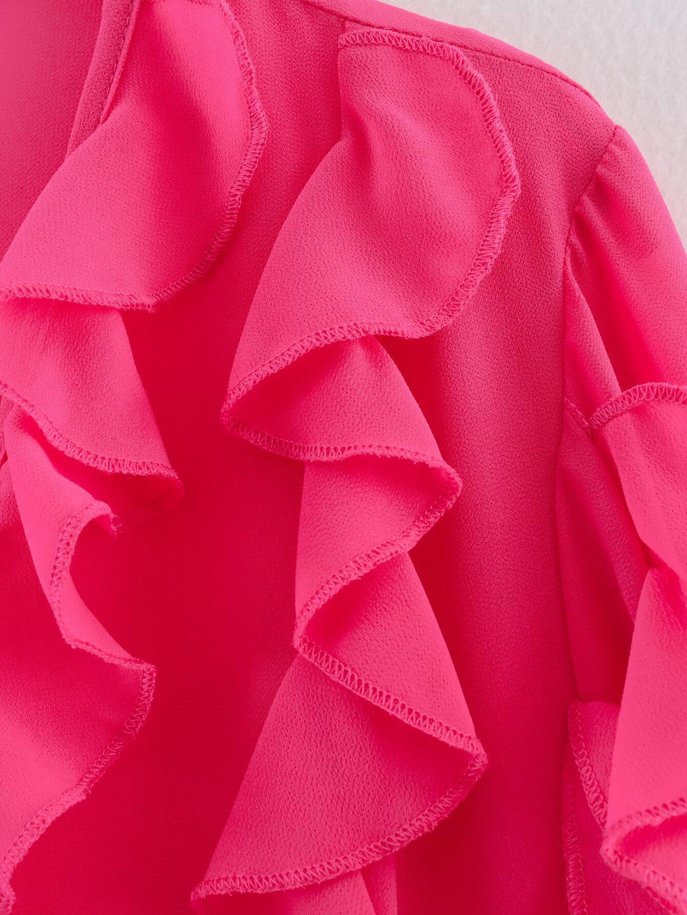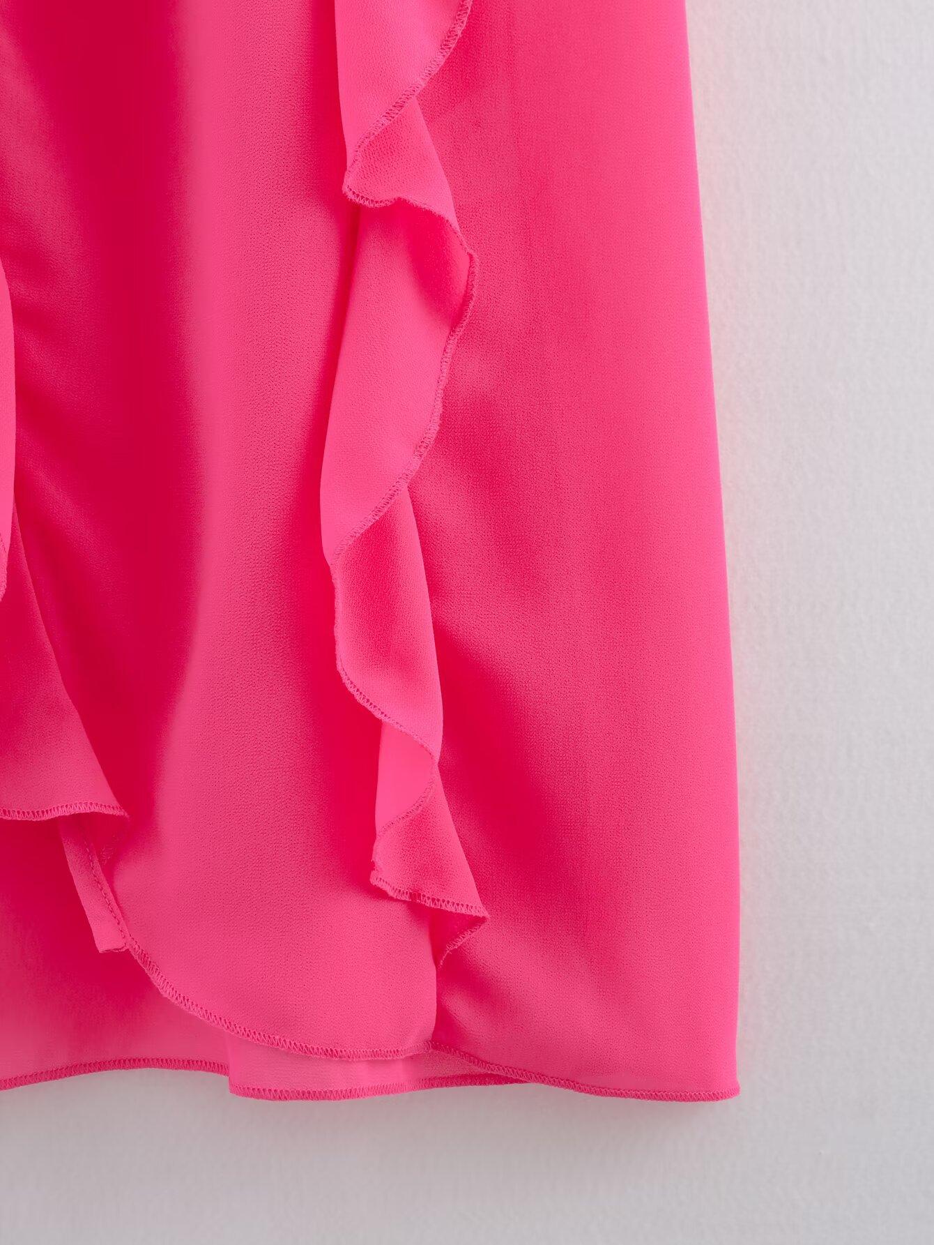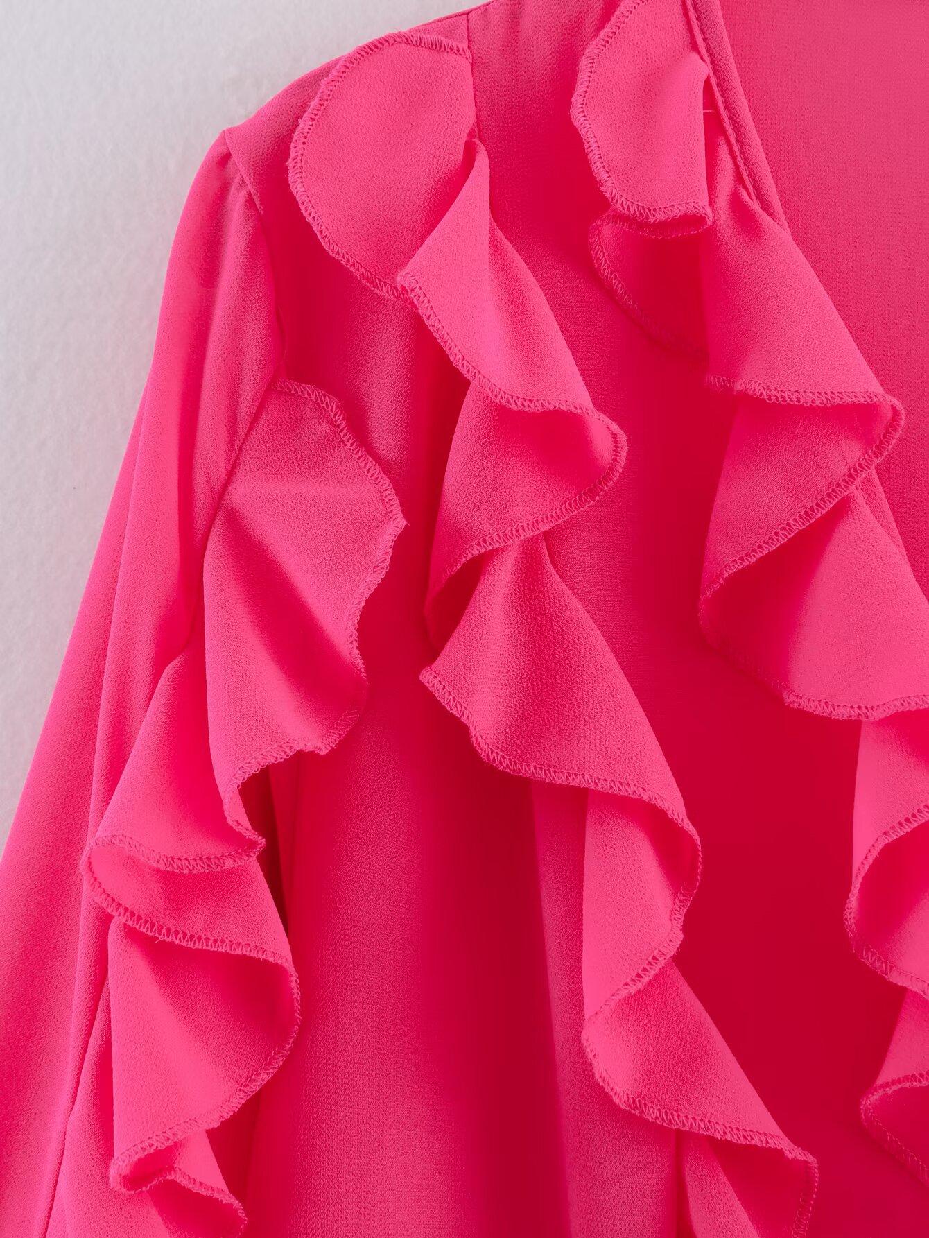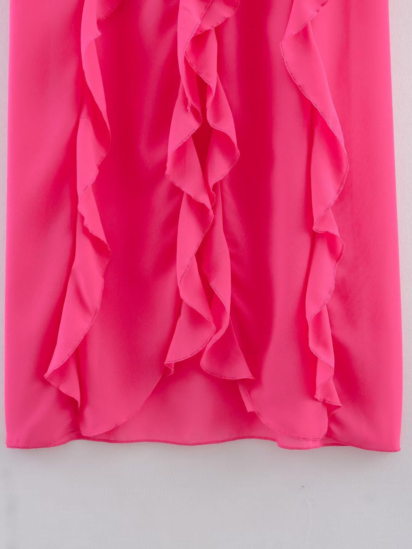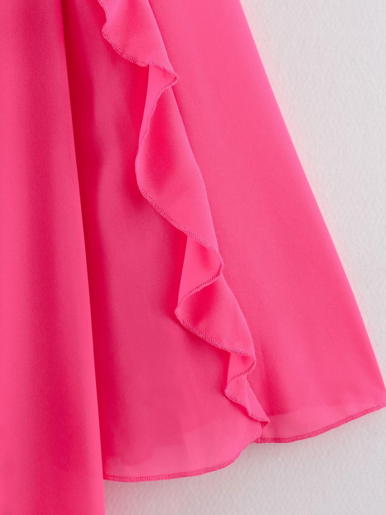 Ropa de Mujer de Exportación Transfronteriza 2025 Verano Estilo Europeo y Americano Cuello Redondo Manga Larga Volantes Multicapa Vestido Holgado C45309