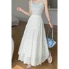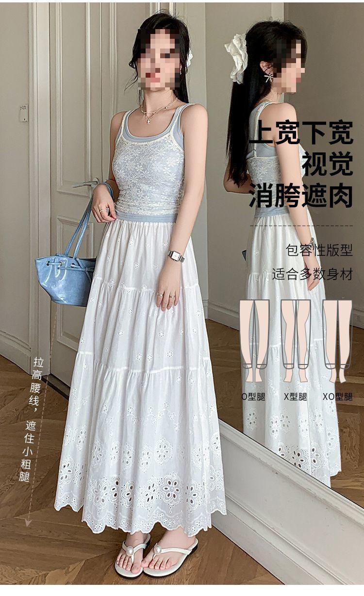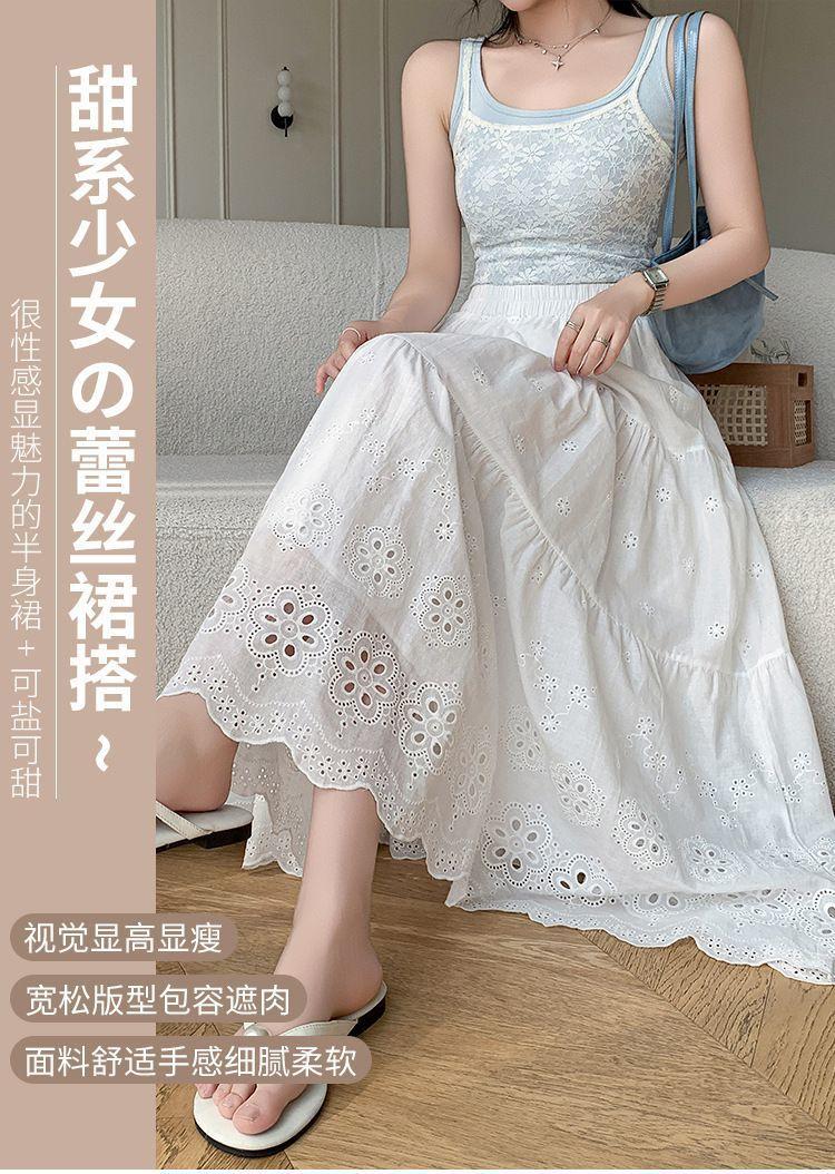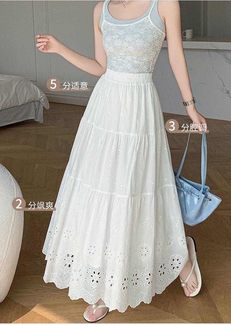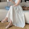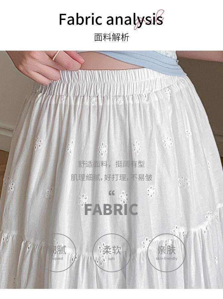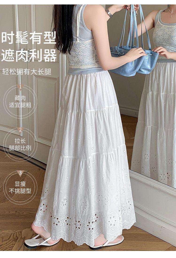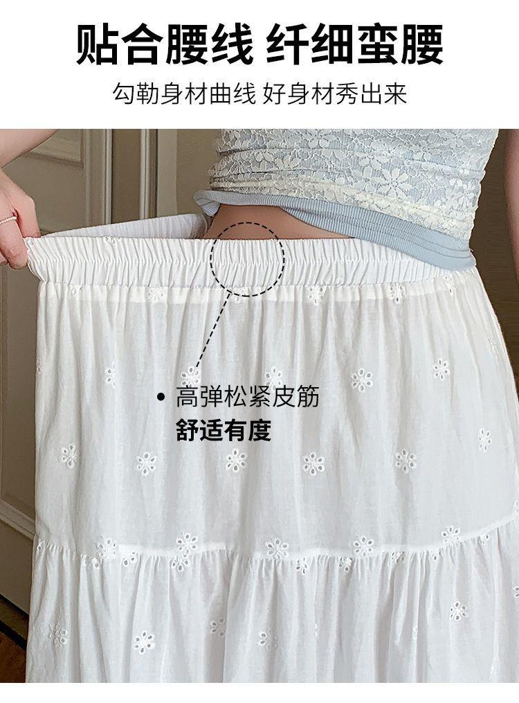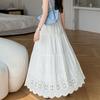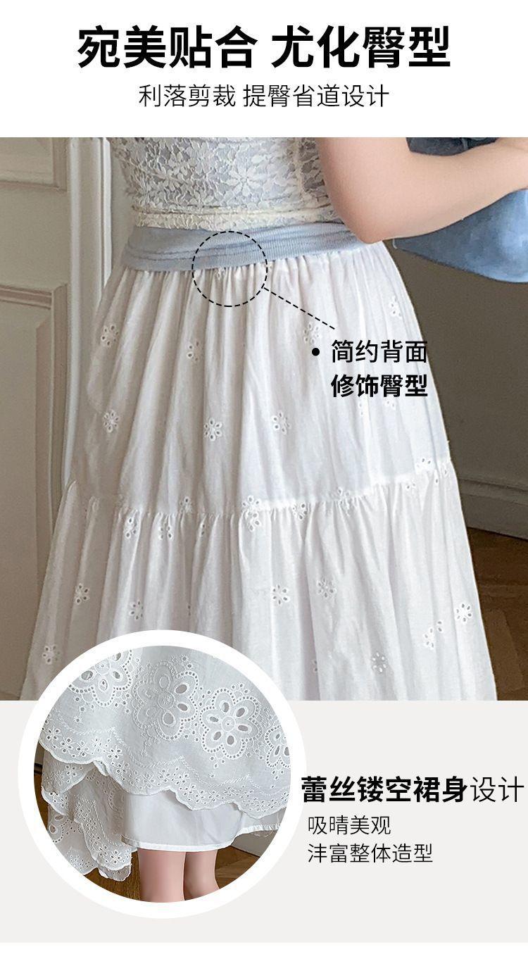 2025 Nueva Falda Blanca Calada Bordada Adelgazante Falda Larga Francesa de Verano Pastel Cintura Alta Falda de Moda