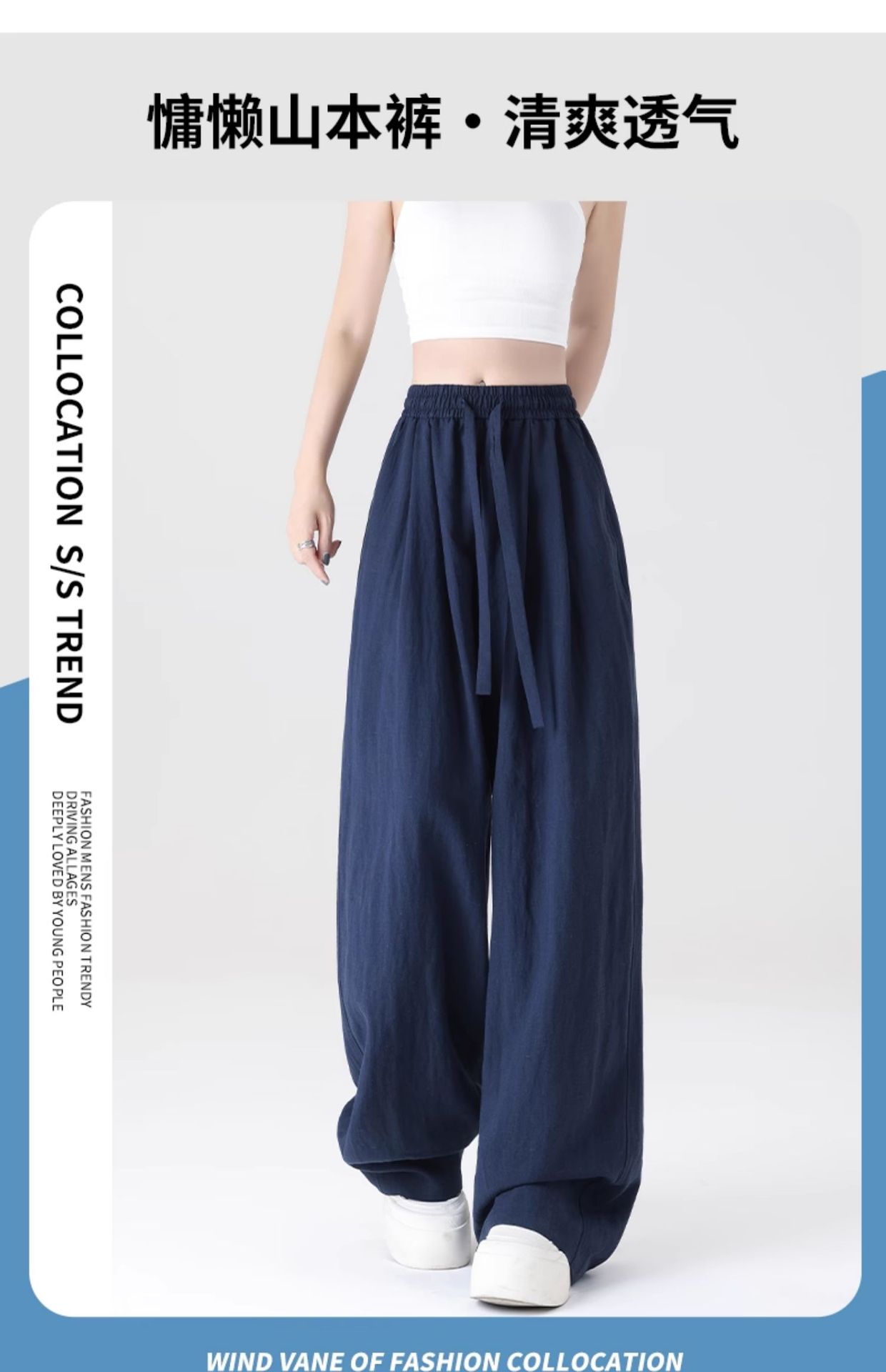 Pantalones de Lino Seda de Hielo Yamamoto para Mujer Verano Delgados Pequeños Drapeados Sueltos Casuales Pierna Ancha para Mujer 2025 Nuevo Estilo